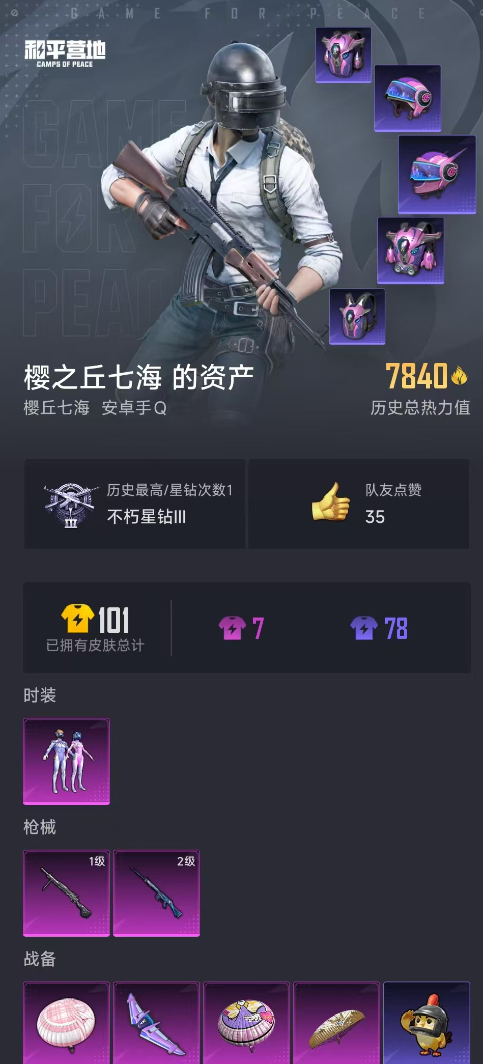 【和平精英】【lyhp18347】1粉装2特效呛 梦幻火箭全套 1粉装,2特效呛,0载具,历史最高段位:不朽星钻ⅲ 王牌印记-2次 热力值:7900,23套装,29呛械,24装备,13战备;套装:套装-梦幻火箭,套装-特训学院,套装-黄色运动,套装-深蓝色名流,套装-战地督导,套装-甜蜜告白,套装-魅力单车,套装-竞技达人朋克,套装-呆萌铁蟹,套装-北国孤狼,套装-白糯汤圆,套装-ss12特训,套装-牛气冲天,套装-ss13特训,套装-ss14特训,套装-福星高照,套装-玉兔迎春,套装-云魄琉璃,套装-元气之梦,套装-ss34特训,套装-ss35特训,套装-ss36特训,套装-雪国风尚;呛皮:akm-夜灯,akm-霓彩脉冲,scar-l-海盐豹豹,kar98k-梦幻火箭,kar98k-彩虹符号,awm-天降萌叽,sks-炫彩节奏,mini14-梦幻火箭,2级slr-暗夜玫瑰,mk12-乌木金纹,vect-彩虹符号,vect-香水柠檬,aks-74u-乌木金纹,ump45-夜灯,ump45-蓝色火焰,汤姆逊-天降萌叽,汤姆逊-乌木金纹,mp5k-怪笑疯兔,dbs-第五大道,dbs-圣堂之誓,s686-奇异狩猎者,s686-橘柚倾心,s1897-神秘黑猫,s1897-精灵梦叶罗丽,m249-无面战甲,m249-乌木金纹,1级dp-28-豹影疾电,dp-28-彩虹符号,平底锅-空岛之星;降落伞:梦幻火箭飞行器; 详情看图