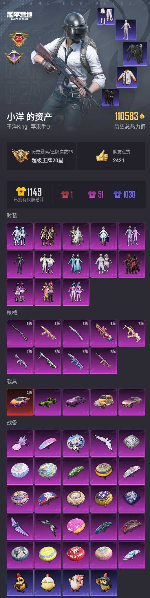 【和平精英】【lyhp18346】地铁满天赋 25印记11w热力值 13粉9特效呛5载1升级车 木乃伊 雪国幻梦 梦幻火箭 都市猎人 巡查衣 紫螳螂 洛天依 多满级呛型 满级m4心语 满级akm梦华 满级gouza焦糖 满级scar-l火箭 满级mg3天依 2级迈凯伦 合金龙骨 特喵橘座 紫宾利 粉玛莎 13粉装,9特效呛,5载具,历史最高段位:超级王牌20星 王牌印记25次 热力值:110583,240套装,288呛械,398装备,183战备;套装:套装-雪国幻梦,套装-梦幻火箭,套装-缤纷油彩,套装-极致幻想,套装-冰霜白皇,套装-炙焰红王,套装-彩虹鹿灵,角色-洛天依,角色-初号机款机体服,套装-蓝莓炮弹,套装-寒光使者,套装-创世·救赎,套装-幻彩电音,套装-特训学院,套装-猎鹰,套装-白色伏地魔,套装-黑色伏地魔,套装-骑行爱好者,套装-竞技名士,套装-湖蓝色名流,套装-黄色名流,套装-猛禽,套装-长空猛禽,套装-漫步者,套装-竞技勇士朋克,套装-黎明保卫者,套装-蓝色守护者,套装-灼焰舞者,套装-都市猎人,套装-浪漫天命,套装-战地菁英,套装-灰色格斗者,套装-甜蜜告白,套装-龙腾端午,套装-鹰眼刺客,套装-冰冻风暴,套装-人气偶像,套装-幻影武者,套装-街头潮人,套装-蓝彩潮人,套装-千禧之恋,套装-神秘领域,套装-魅力单车,套装-绮丽涂鸦,套装-坚韧舞者,套装-夜莺强袭者,套装-野性战心,套装-野性战魂,套装-狂沙舞者,套装-萌熊伴侣,套装-破晓战魂,套装-都市魅力,套装-热血青春,套装-沙漠兵团,套装-丛林猎人,套装-ss2特训,套装-派对绅士,套装-雪山精英,套装-酷潮明星,套装-传奇侦探,套装-极地朋克,套装-幻世战舞者,套装-甜蜜菠萝,套装-半糖蓝莓,套装-金耀舞者,套装-蓝调潮人,套装-暗影哥特,套装-弄潮海豚,套装-迅捷狂鲨,套装-呆萌铁蟹,套装-恒星战甲,套装-午夜朋克,套装-甜蜜熊情侣,套装-缤纷果语,套装-滨海厨神,套装-龙魂突击队,套装-冰川特警,套装-胖达圆圆,套装-极速红龙,套装-格斗先锋,套装-冷血极客,套装-海上生明月,套装-麻辣教官,套装-沙暴袭击者,套装-ss3特训,套装-冥河战士,套装-ss4特训,套装-粉红小猪,套装-破蛋小黄鸡,套装-疯狂小兔子,套装-ss5特训,套装-圣诞大吉,套装-好奇恐龙,套装-红酒骑士,套装-浪漫波比,套装-军械专家,套装-北国孤狼,套装-ss6特训,套装-ss7特训,套装-鹤鸣,套装-霓虹街区,套装-激萌罗小黑,套装-ss10特训,套装-潮萌小黄鸭,套装-ss8特训,套装-萌黄之夏,套装-击剑大师,套装-动感兔斯基人偶服,套装-ss9特训,套装-风华少年志,套装-白月香洋装,套装-探宝勇士,套装-牛气满满,套装-ss11特训,套装-青春冒险家,套装-潮流游乐家,套装-浪客战士,套装-静谧青瓷,套装-萌趣颜团子,套装-战术大师,套装-ss12特训,套装-牛气冲天,套装-ss18特训,套装-闪金天王,套装-镭射皇者,套装-银白舞王,套装-暗影爵士,套装-迅捷之星,套装-治愈之星,套装-科技之星,套装-飞行日记,套装-ss13特训,套装-星河入梦,套装-曼妙人鱼,套装-热情海星,套装-纯真浪花,套装-冰爽海盐,套装-ss14特训,套装-天籁歌者,套装-电音精灵,套装-吉莉礼服,角色-明日香款战斗服,角色-真嗣款战斗服,套装-星梦畅游,套装-ss15特训,套装-ss16特训,套装-暗夜魅影,套装-ss17特训,套装-智慧隐士,套装-醒狮腾龙,套装-瑞龙福将,套装-团圆交子,套装-炫光向阳,套装-福星高照,套装-虎虎生威吉莉,套装-异彩先驱,套装-霓虹极客,套装-浓情摩卡,套装-空投萌叽,套装-ss19特训,套装-兔兔白日梦,套装-飞驰魅影,套装-音速流光,套装-炫蓝之夏,套装-ss20特训,套装-甜心亚梦,套装-虚音幻奏,套装-ss21特训,套装-萌趣咩咩,套装-娇憨猪猪,套装-玉兔迎春,套装-ss22特训,套装-和煦暖阳,套装-田园牧歌,套装-轻风白浪,套装-光之冒险,套装-绯格组合,套装-ss23特训,套装-摩登艾咪,套装-莱茵河畔,套装-甜梦熊熊,套装-神气柴柴,套装-懵萌河马,套装-妙红点点,套装-幻彩翩翩,套装-王牌教练,套装-柠萌假日,套装-青玉碎影,套装-ss24特训,套装-龟仙人,套装-涂山之恋,套装-ss25特训,套装-惊鸿侠骨,套装-锦衣飞扬,套装-香桃花海,套装-龙的传人,套装-冰河战士,套装-ss26特训,套装-焰鹰斗篷,套装-幻羽潜行,套装-ss27特训,套装-恋语绒绒,套装-ss28特训,角色-湖雨初晴,玩偶服-卖崽青蛙,角色-听雨铃兰,角色-迎夏光舞,角色-情公主,套装-街头风暴,套装-海盐绵绵冰,套装-蝶变,套装-ss29特训,角色-无面战甲,套装-先驱飞行员,套装-异域银装,套装-星途旅人,套装-ss30特训,套装-青团波波,套装-糖糖葫芦,套装-ss31特训,套装-紫幽梦,套装-粉恋花,套装-ss33特训,套装-云朵鹅,套装-巳巳如意,套装-ss32特训,套装-蓝冰羽,套装-顶瓜瓜,套装-雪绒豹,套装-大橘大利,套装-极速光影,套装-霓虹热舞,套装-炫彩糖果,套装-元气之梦,套装-ss34特训,套装-薄荷星砂,套装-ss35特训,套装-粉黛兰香,套装-ss36特训,套装-萌鸡速递;呛皮:g36c-不夜海上花,g36c-青丘仙客,g36c-懵萌河马,g36c-乌木金纹,7级scar-l-梦幻火箭,scar-l-生命誓言,scar-l-彩虹符号,scar-l-玉兔迎春,scar-l-甜蜜旋律,scar-l-星途旅人,scar-l-海盐豹豹,7级akm-梦之光华,akm-生命誓言,akm-影袭,akm-冰凉西瓜,akm-霓虹街区,akm-夜灯,akm-涂鸦街区,akm-彩虹符号,akm-萌趣颜团子,akm-虎虎生威,akm-王牌投手,akm-龙的传人,akm-霓彩脉冲,akm-乌木金纹,m16a4-生命誓言,m16a4-红色方程式,m16a4-冥河战士,m16a4-夜灯,m16a4-甜心亚梦,m16a4-幻世战舞者,m16a4-冰河战士,7级groza-焦糖拿铁,groza-影袭,groza-生命誓言,groza-治愈之星,groza-彩虹符号,groza-异彩先驱,groza-田园