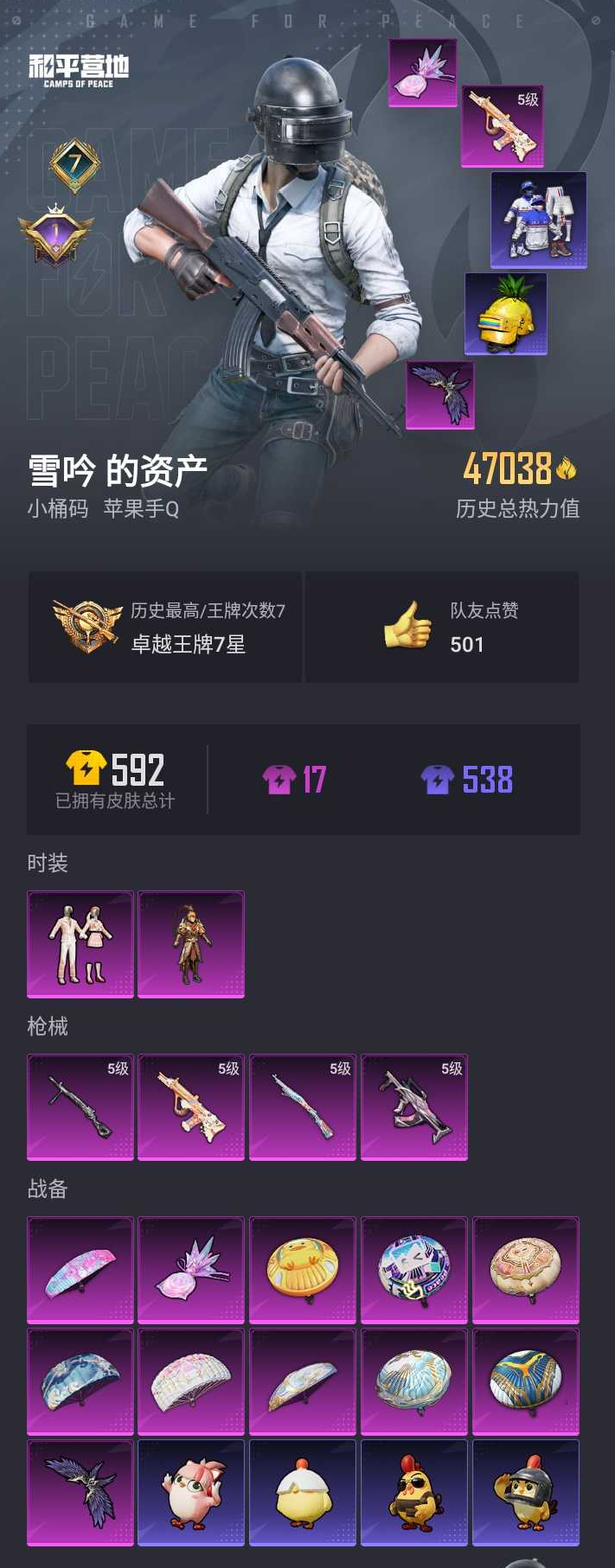 【和平精英】【lyhp18389】2粉装4特效呛 第五大道 浪漫天命 齐天大圣 菠萝头 满级aug 2粉装,4特效呛,0载具,历史最高段位:卓越王牌7星 王牌印记7次 热力值:47038,127套装,168呛械,178装备,96战备;套装:套装-齐天大圣,套装-第五大道,套装-特训学院,套装-猎鹰,套装-青年教官,套装-橘黑制服,套装-红色运动,套装-黄色运动,套装-蓝色运动,套装-黄色伏地魔,套装-白色伏地魔,套装-黑色伏地魔,套装-竞技名士,套装-深蓝色名流,套装-酒红色名流,套装-湖蓝色名流,套装-黄色名流,套装-猛禽,套装-长空猛禽,套装-蓝色守护者,套装-海岛探路者,套装-六六大吉,套装-冷焰舞者,套装-灼焰舞者,套装-浪漫天命,套装-特战装甲,套装-战地督导,套装-春日漫步,套装-沙漠毒蛇,套装-完美偶像,套装-人气偶像,套装-幻影武者,套装-蓝彩潮人,套装-魅力单车,套装-绮丽涂鸦,套装-耀眼新星,套装-竞技达人朋克,套装-超能勇士,套装-破晓战魂,套装-森林游猎者,套装-都市魅力,套装-热血青春,套装-传奇侦探,套装-极地朋克,套装-幻世战舞者,套装-缤纷果语,套装-滨海厨神,套装-龙魂突击队,套装-风暴特警,套装-冰川特警,套装-元素星魂,套装-格斗先锋,套装-麻辣教官,套装-破蛋小黄鸡,套装-疯狂小兔子,套装-鹤鸣,套装-白熊同盟,套装-夏日音浪,套装-风华少年志,套装-探宝勇士,套装-牛气满满,套装-白糯汤圆,套装-战术大师,套装-牛气冲天,套装-ss18特训,套装-飞行日记,套装-ss17特训,套装-福星高照,套装-虎虎生威吉莉,套装-空投萌叽,套装-ss19特训,套装-浓情蜜辣,套装-极速竞梦,套装-飞驰魅影,套装-音速流光,套装-炫蓝之夏,套装-ss20特训,套装-猎梦纪元,套装-甜心亚梦,套装-虚音幻奏,套装-ss21特训,套装-萌趣咩咩,套装-娇憨猪猪,套装-荷畔雨呱,套装-玉兔迎春,套装-ss22特训,套装-光之冒险,套装-ss23特训,套装-香榭午后,套装-王牌教练,套装-ss24特训,套装-龟仙人,套装-ss25特训,套装-冰河战士,套装-空岛之星,套装-云魄琉璃,套装-恋语绒绒,套装-街头风暴,套装-蝶变,套装-ss29特训,角色-摩登魅猫,套装-星途旅人,套装-ss30特训,套装-青团波波,套装-糖糖葫芦,套装-ss31特训,套装-鱼渊荷华,套装-石蕴玉辉,套装-燕燕于飞,套装-智谋强哥,套装-紫幽梦,套装-ss33特训,角色-猎影月神,套装-巳巳如意,套装-ss32特训,套装-蓝冰羽,套装-顶瓜瓜,套装-大橘大利,套装-炫彩糖果,套装-星影赞美诗,套装-ss34特训,套装-朱霞炽焰,套装-凌霄紫焰,套装-薄荷星砂,套装-ss35特训,套装-ss36特训,套装-萌鸡速递;呛皮:g36c-青丘仙客,g36c-炙焰牛王,g36c-乌木金纹,akm-灼热熔岩,akm-奇异狩猎者,akm-破晓战魂,akm-霓虹街区,akm-彩虹符号,akm-虎虎生威,akm-霓彩脉冲,蜜獾-娇憨猪猪,蜜獾-天降萌叽,蜜獾-糖糖葫芦,蜜獾-鸡智如我,蜜獾-绿洲时空,蜜獾-乌木金纹,ac-val-甜心亚梦,ac-val-乌木金纹,ac-val-天降萌叽,m16a4-蓝色火焰,m16a4-红色方程式,m16a4-甜心亚梦,m16a4-幻世战舞者,m16a4-冰河战士,m16a4-千金淑猫,5级groza-镜光银凌,groza-彩虹符号,groza-恐龙拽拽,groza-海盐豹豹,scar-l-红色方程式,scar-l-夜灯,scar-l-炫彩节奏,scar-l-暗夜玫瑰,scar-l-青丘仙客,scar-l-玉兔迎春,scar-l-星途旅人,scar-l-小狗蛇点点,m416-蓝色火焰,m416-红色方程式,m416-黄金狮王,m416-糯团青竹,5级aug-暖羊咩咩,aug-耀粉歌者,aug-异域银装,aug-紫晶流影,famas-霓彩脉冲,famas-乌木金纹,m762-彩虹符号,m762-天降萌叽,arx-凌霄紫焰,mk47-乌木金纹,q-飞驰魅影,5级kar98k-巳巳如意,kar98k-红色方程式,kar98k-梦幻火箭,kar98k-炫彩节奏,kar98k-飞驰魅影,m24-影袭,m24-炫彩节奏,m24-乌木金纹,m200-乌木金纹,win94-乌木金纹,awm-垂柳戏鸭,莫辛纳甘-乌木金纹,mk14-乌木金纹,mk14-冰河战士,mk14-紫幽梦,mk14-薄荷星砂,slr-娇憨猪猪,slr-金丰海韵,slr-霓彩脉冲,mk20-h-星途旅人,mk20-h-糖糖葫芦,mk20-h-乌木金纹,mini14-耀粉歌者,mini14-香桃花海,vss-彩虹符号,vss-香桃花海,m417-玩趣呆呆,sks-炫彩节奏,sks-天之羽翼,vect-生命誓言,vect-彩虹符号,vect-燕燕于飞,uzi-红色方程式,uzi-炫彩节奏,uzi-娇憨猪猪,uzi-天降萌叽,uzi-冰河战士,uzi-炫彩糖果,uzi-绿洲时空,ump45-夜灯,ump45-蓝色火焰,ump45-生命誓言,ump45-炫光之旅,ump45-海盐豹豹,ump45-糖糖葫芦,ump45-圣穹绘梦,p90-飞驰魅影,p90-巳巳如意,p90-乌木金纹,汤姆逊-耀粉歌者,汤姆逊-炫彩节奏,汤姆逊-天降萌叽,js9-凌霄紫焰,aks-74u-乌木金纹,野牛-燕燕于飞,野牛-乌木金纹,s1897-炫彩节奏,s1897-飞驰魅影,s1897-紫幽梦,s1897-糯团青竹,s12k-破晓战魂,s12k-夜灯,s12k-暖熊萌萌,s12k-娇憨猪猪,s12k-幻世战舞者,s12k-玩趣呆呆,s12k-霓彩脉冲,spas-12-燕燕于飞,spas-12-狂鲨锋刃,spas-12-乌木金纹,dbs-甜心亚梦,dbs-彩虹符号,dbs-乌木金纹,s686-红色方程式,s686-王牌投手,s686-千金淑猫,s686-巳巳如意,mg3-幻世战舞者,mg3-乌木金纹,mg3-霓彩脉冲,pkm-啾咪啾咪,pkm-紫幽梦,5级dp-28-豹影疾电,dp-28-彩虹符号,dp-28-甜心亚梦,dp-28-旋转彩虹,mg-36-凌霄紫焰,m249-破晓战魂,蝎式手呛-燕燕于飞,短管霰弹-星穹咏叹调,p92-紫幽梦,p92-凌霄紫焰,r1895-镭金极速,信号呛-异瞳寒姬,p18c-糖糖葫芦,平底锅-飞驰魅影,平底锅-青春物语,平底锅-甜心亚梦,平底锅-娇憨猪猪,平底锅-光之冒险,平底锅-空岛之星,平底锅-糖糖葫芦,平底锅-紫幽梦,平底锅-凌霄紫焰,撬棍-环太平洋,撬棍-幻世战舞者,大砍刀-黑金刀,破片手留单-呆爆全场,破片手留单-星途旅人,破片手留单-海盐豹豹,破片手留单-拽到爆炸,破片手留单-巳巳如意,盐雾蛋-冰氧夏日,铝热弹-炫彩糖
