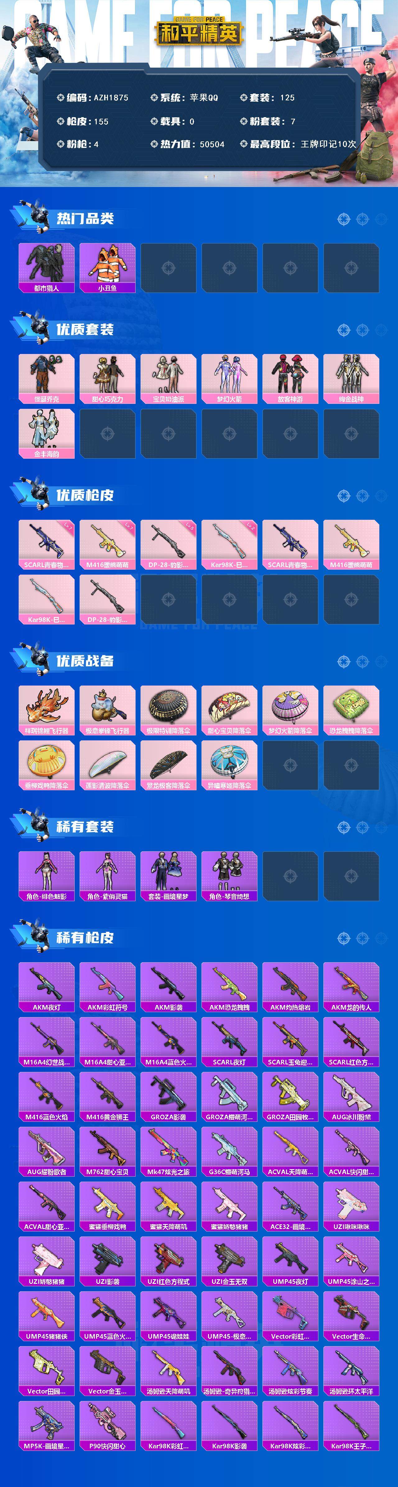 我要买 热门游戏 和平精英 和平精英-苹果QQ账号编码1442794出售