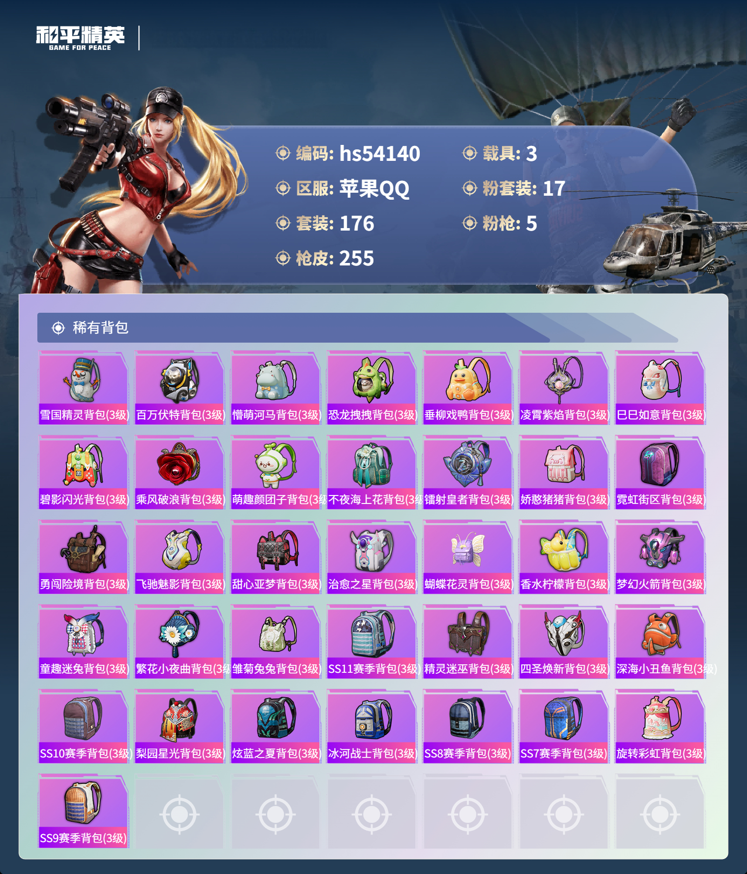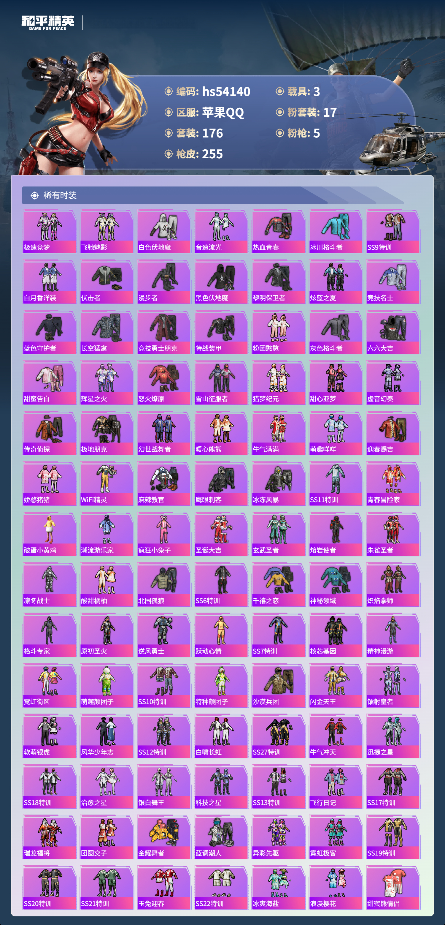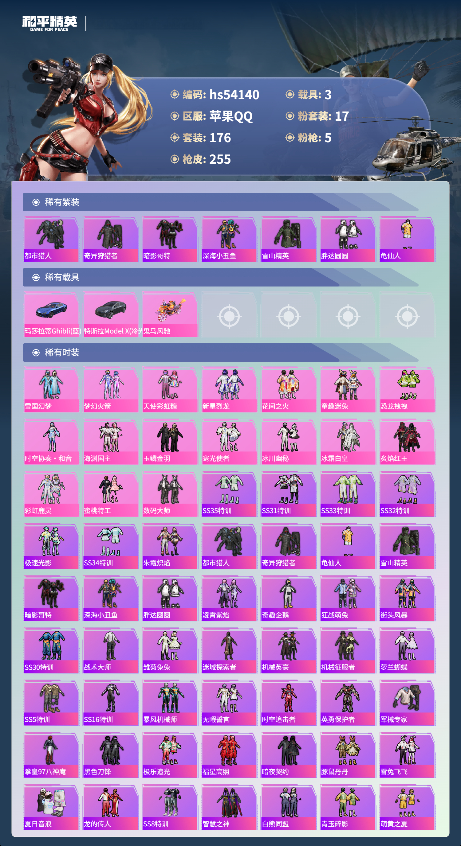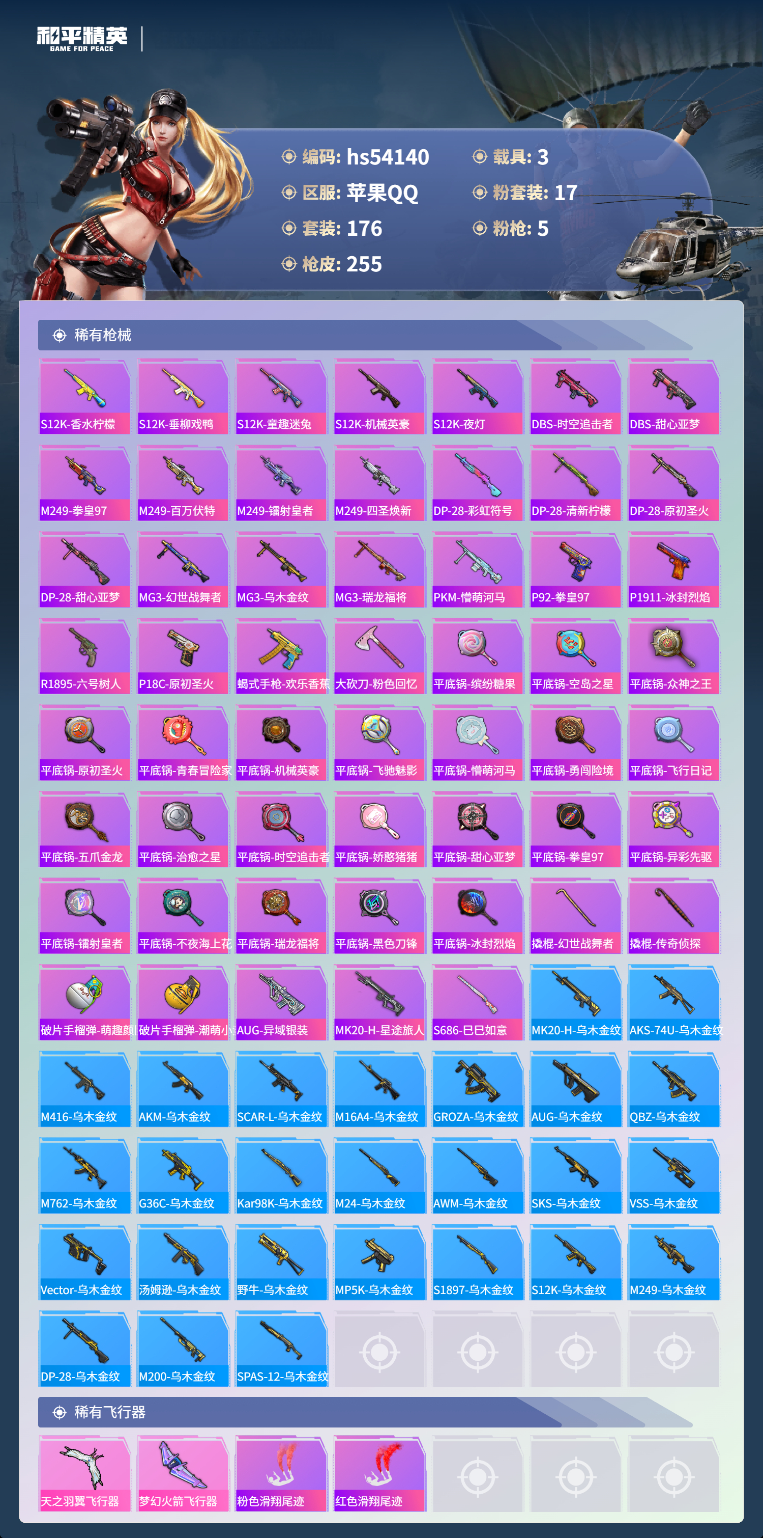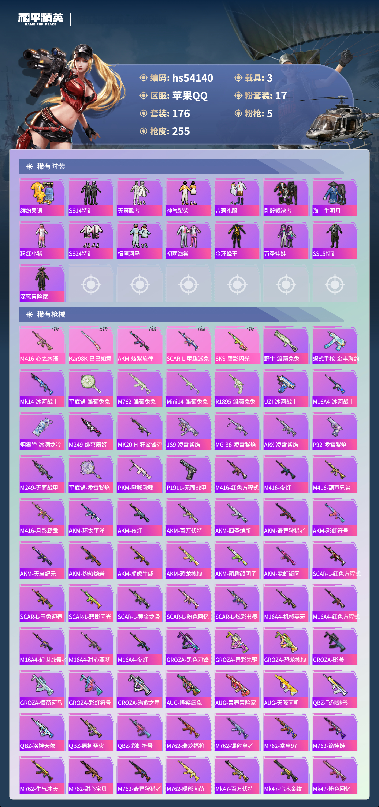 hs54140 苹果手q-23王牌印记-17粉装-5特效呛-3载具-86392热力值-176套装-255呛皮【17粉装】套装-冰川幽秘套装-童趣迷兔套装-炙焰红王时空协奏·和音套装-梦幻火箭套装-玉鳞金羽套装-新星烈龙套装-雪国幻梦套装-海渊国主套装-天使彩虹糖套装-冰霜白皇套装-恐龙拽拽套装-花间之火套装-蜜桃特工套装-寒光使者套装-彩虹鹿灵套装-数码大师【5