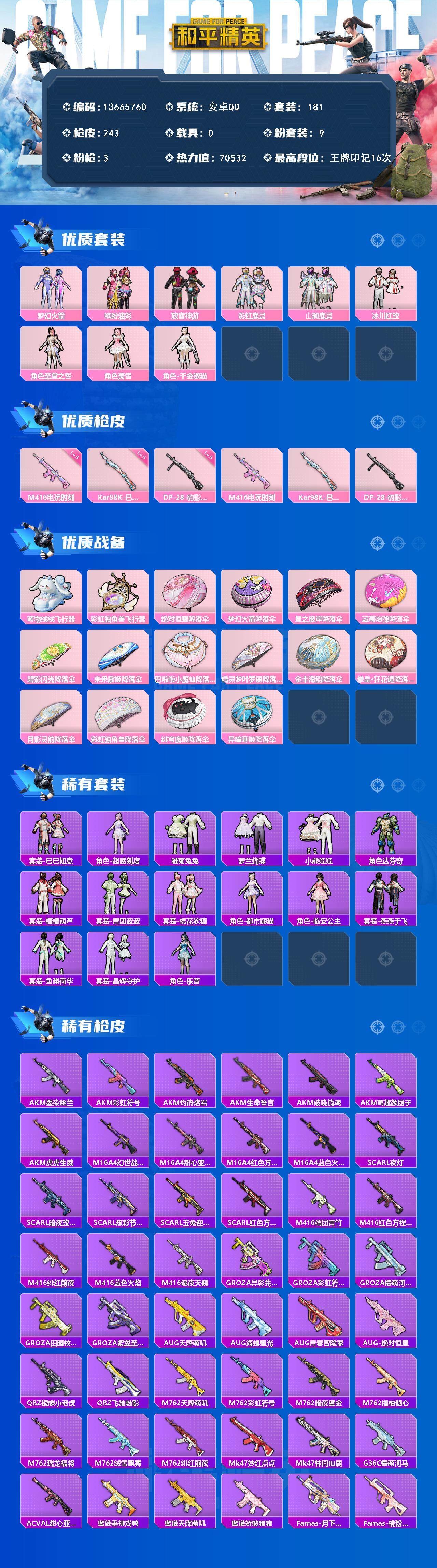 6172-9粉装-3特效呛-0载具-3粉色飞行器-70532热力值-16王牌印记-181套装-243呛皮 【热门品类】:粉装-梦幻火箭,粉装-缤纷油彩,套装-浪漫天命,套装-粉红小猪 【粉色套装】:粉装-梦幻火箭,粉装-缤纷油彩,粉装-放客神游,粉装-彩虹鹿灵,粉装-山涧鹿灵,粉装-冰川红玫,角