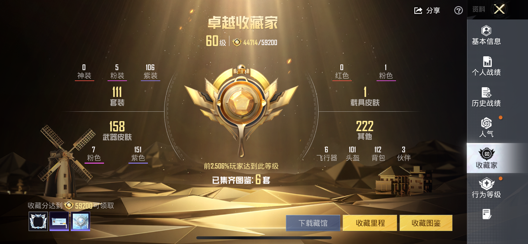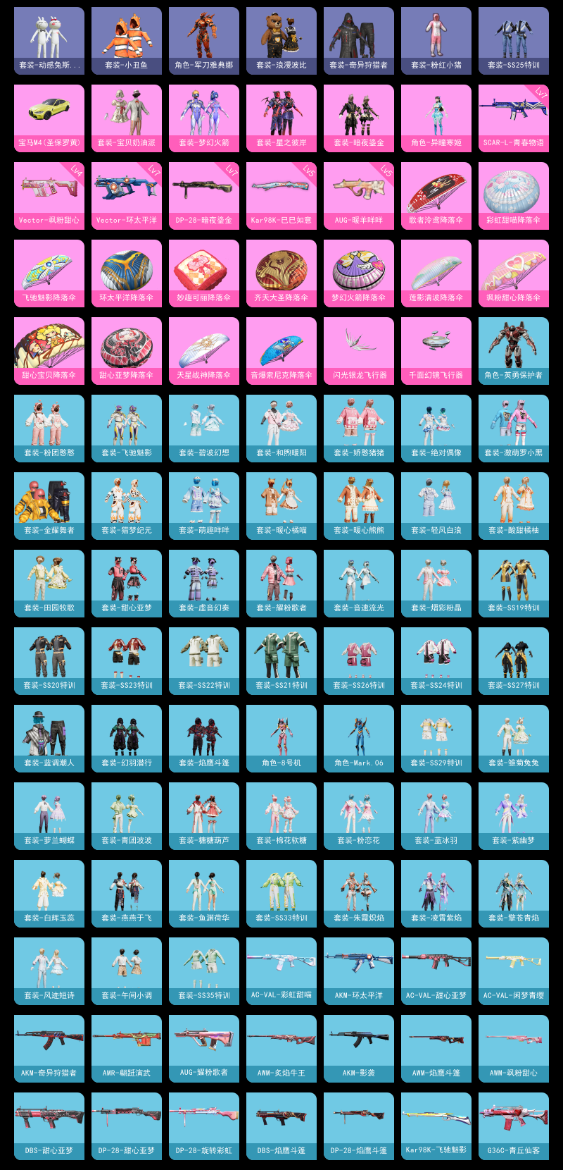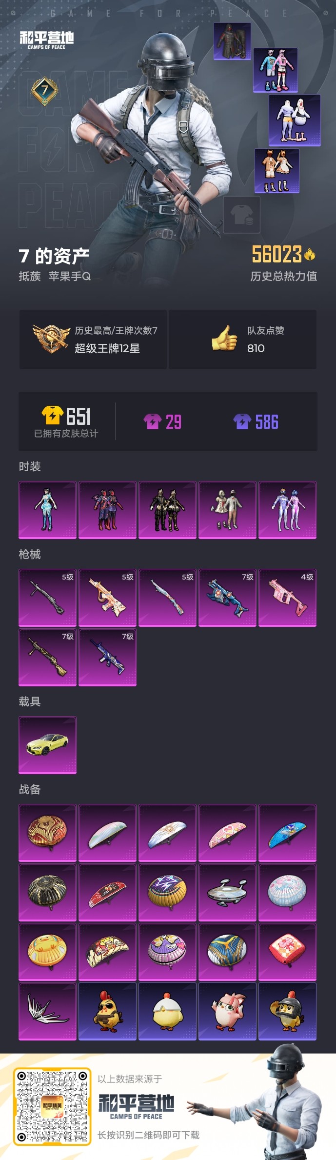【和平精英】【txhp5083】5粉装,7特效呛,1载具,历史最高段位:超级王牌12星 王牌印记7次 热力值:56023,111套装,172呛械,241装备,103战备;套装:套装-宝贝奶油派,套装-梦幻火箭,套装-星之彼岸,套装-暗夜鎏金,角色-异瞳寒姬,套装-黑色伏地魔,套装-竞技名士,套装-湖蓝色名流,套装-黄色名流,套装-长空猛禽,套装-海岛探路者,套装-超能勇士,套装-幻世战舞者,套装-奇异狩猎者,套装-金耀舞者,套装-蓝调潮人,套装-甜蜜熊情侣,套装-缤纷果语,套装-龙魂突击队,套装-麻辣教官,套装-小丑鱼,套装-粉红小猪,套装-浪漫波比,套装-鹤鸣,套装-激萌罗小黑,套装-白熊同盟,套装-动感兔斯基人偶服,套装-夏日音浪,套装-探宝勇士,套装-牛气满满,套装-战术大师,套装-牛气冲天,套装-耀粉歌者,套装-飞行日记,角色-英勇保护者,角色-军刀雅典娜,套装-ss19特训,套装-飞驰魅影,套装-音速流光,套装-ss20特训,套装-粉团憨憨,套装-猎梦纪元,套装-甜心亚梦,套装-虚音幻奏,套装-ss21特训,套装-暖心熊熊,套装-萌趣咩咩,套装-娇憨猪猪,套装-暖心橘喵,套装-酸甜橘柚,套装-玉兔迎春,套装-ss22特训,套装-和煦暖阳,套装-田园牧歌,套装-轻风白浪,套装-碧波幻想,套装-熠彩粉晶,套装-光之冒险,套装-绯格组合,套装-ss23特训,套装-柠萌假日,套装-ss24特训,套装-龟仙人,套装-ss25特训,套装-绝对偶像,套装-香桃花海,套装-冰河战士,套装-ss26特训,套装-空岛之星,套装-焰鹰斗篷,套装-幻羽潜行,套装-ss27特训,套装-恋语绒绒,套装-老实芭蕉,套装-白辉玉蕊,角色-8号机,角色-mark.06,套装-海盐绵绵冰,套装-蝶变,套装-ss29特训,套装-雏菊兔兔,套装-萝兰蝴蝶,套装-异域银装,角色-临安公主,套装-ss30特训,套装-青团波波,套装-棉花软糖,套装-糖糖葫芦,套装-小鸟芋圆,套装-ss31特训,套装-鱼渊荷华,套装-燕燕于飞,套装-智谋强哥,套装-紫幽梦,套装-粉恋花,套装-ss33特训,套装-巳巳如意,套装-ss32特训,套装-蓝冰羽,套装-顶瓜瓜,套装-大橘大利,套装-元气之梦,套装-ss34特训,套装-擎苍青焰,套装-朱霞炽焰,套装-凌霄紫焰,套装-薄荷星砂,套装-ss35特训,套装-午间小调,套装-风迹短诗,套装-萌鸡速递;呛皮:蜜獾-娇憨猪猪,蜜獾-天降萌叽,蜜獾-糖糖葫芦,蜜獾-风迹短诗,蜜獾-乌木金纹,7级scar-l-青春物语,scar-l-红色方程式,scar-l-夜灯,scar-l-炫彩节奏,scar-l-彩虹符号,scar-l-玉兔迎春,scar-l-海盐豹豹,5级aug-暖羊咩咩,aug-耀粉歌者,aug-异域银装,aug-紫晶流影,akm-灼热熔岩,akm-影袭,akm-奇异狩猎者,akm-涂鸦街区,akm-彩虹符号,akm-环太平洋,akm-霓彩脉冲,akm-绿洲时空,g36c-青丘仙客,g36c-桃粉嫣然,g36c-星穹咏叹调,ac-val-甜心亚梦,ac-val-乌木金纹,ac-val-彩虹甜喵,ac-val-天降萌叽,ac-val-闲梦青缨,mk47-百万伏特,mk47-乌木金纹,mk47-风迹短诗,m16a4-甜心亚梦,m16a4-幻世战舞者,groza-彩虹符号,groza-异彩先驱,groza-田园牧歌,groza-荧海星豚,famas-霓彩脉冲,famas-乌木金纹,arx-凌霄紫焰,m416-蓝色火焰,m416-糯团青竹,q-飞驰魅影,m762-暖熊萌萌,m762-雏菊兔兔,5级kar98k-巳巳如意,kar98k-梦幻火箭,kar98k-彩虹符号,kar98k-飞驰魅影,svd-霓彩脉冲,amr-翩跹演武,amr-鸡智如我,amr-乌木金纹,莫辛纳甘-乌木金纹,莫辛纳甘-风迹短诗,awm-炙焰牛王,awm-飒粉甜心,awm-焰鹰斗篷,win94-乌木金纹,m24-奇异狩猎者,m24-炫彩节奏,m24-乌木金纹,m200-乌木金纹,mini14-梦幻火箭,mini14-香桃花海,mini14-雏菊兔兔,mini14-鸡智如我,mk14-乌木金纹,mk14-冰河战士,mk14-紫幽梦,mk14-紫晶流影,mk20-h-墨染幽兰,mk20-h-糖糖葫芦,mk20-h-狂鲨锋刃,mk20-h-乌木金纹,slr-娇憨猪猪,slr-彩虹符号,slr-霓彩脉冲,sks-迅猛狂鲨,vss-田园牧歌,vss-彩虹符号,m417-玩趣呆呆,mk12-风迹短诗,7级vect-环太平洋,4级vect-飒粉甜心,vect-生命誓言,vect-田园牧歌,vect-焰鹰斗篷,vect-燕燕于飞,ump45-夜灯,ump45-生命誓言,ump45-海盐豹豹,ump45-糖糖葫芦,汤姆逊-奇异狩猎者,汤姆逊-环太平洋,汤姆逊-暗夜鎏金,p90-飞驰魅影,p90-闪光银龙,p90-玩趣呆呆,p90-巳巳如意,p90-乌木金纹,uzi-娇憨猪猪,uzi-墨染幽兰,uzi-天降萌叽,uzi-冰河战士,uzi-啾咪啾咪,野牛-雏菊兔兔,野牛-燕燕于飞,aks-74u-乌木金纹,js9-凌霄紫焰,mp5k-乌木金纹,s1897-百万伏特,s1897-炫彩节奏,s1897-飞驰魅影,s1897-暗夜鎏金,s1897-紫幽梦,s1897-糯团青竹,s12k-破晓战魂,s12k-夜灯,s12k-暖熊萌萌,s12k-娇憨猪猪,s12k-幻世战舞者,s12k-霓彩脉冲,dbs-甜心亚梦,dbs-焰鹰斗篷,dbs-创世·救赎,dbs-风迹短诗,dbs-乌木金纹,spas-12-太空嘟嘟,spas-12-田园牧歌,spas-12-燕燕于飞,spas-12-乌木金纹,s686-奇异狩猎者,pkm-啾咪啾咪,pkm-紫幽梦,mg-36-凌霄紫焰,7级dp-28-暗夜鎏金,5级dp-28-豹影疾电,dp-28-彩虹符号,dp-28-甜心亚梦,dp-28-旋转彩虹,dp-28-焰鹰斗篷,mg3-幻世战舞者,mg3-乌木金纹,蝎式手呛-燕燕于飞,r1895-雏菊兔兔,p18c-百万伏特,p18c-糖糖葫芦,p92-紫幽梦,p92-凌霄紫焰,平底锅-飞驰魅影,平底锅-青春物语,平底锅-甜心亚梦,平底锅-娇憨猪猪,平底锅-田园牧歌,平底锅-焰鹰斗篷,平底锅-雏菊兔兔,平底锅-糖糖葫芦,平底锅-紫幽梦,平底锅-凌霄紫焰,撬棍-环太平洋,撬棍-幻世战舞者,破片手留单-星途旅人,破片手留单-海盐豹豹,破片手留单-拽到爆炸,破片手留单-巳巳如意,十子怒-燕燕于飞,十子怒-异域银装;载具:宝马m4圣保罗黄;降落伞:闪光银龙飞行器,千面幻镜飞行器,粉色滑翔尾迹,光之冒险尾迹,异域银装飞行器,鸡智如我飞行器; 详情看图7王牌印记 5.6w热力值 5粉(新101 小鸟芋圆 奇异狩猎者 罗小黑 橘喵)7特(满级暗夜鎏金 满级环太平洋 