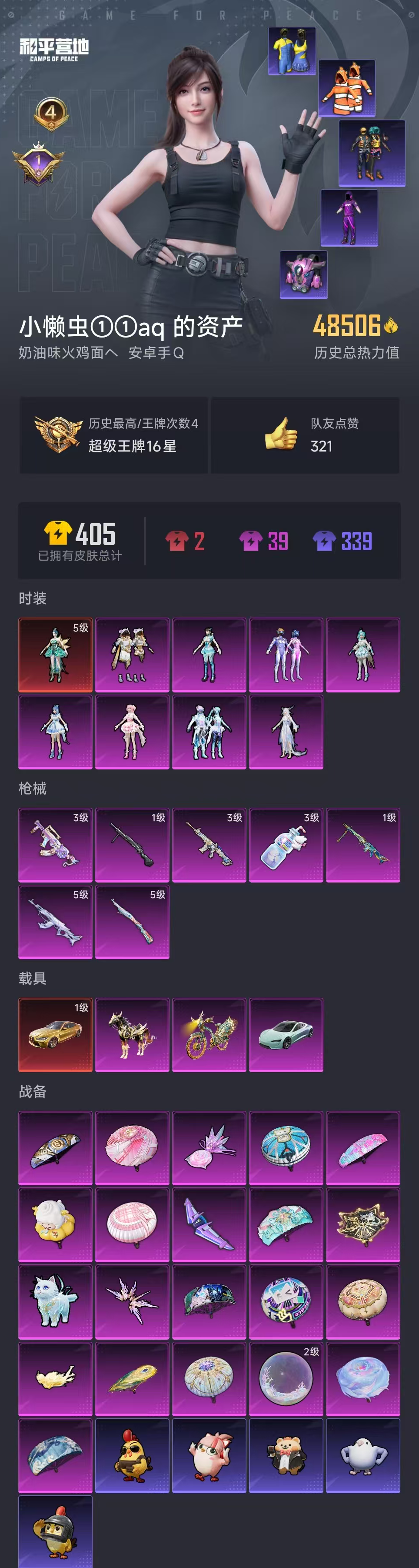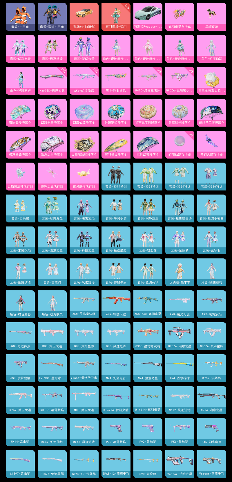 【和平精英】【lyhp18207】4.8w热力值 1红装 8粉装 7特效呛 4载具 5级初翎 梦幻火箭 深海小丑鱼 战队服 巴啦啦小魔仙狗砸 灵猫魔法师m4 3级盐雾蛋 初翎mg3 5级幻海仙踪akm 1级宝马m4 黑曜夜骑 特斯拉 8粉装,7特效呛,4载具,历史最高段位:超级王牌16星 王牌印记4次 热力值:48506,72套装,108呛械,140装备,64战备;套装:辉羽雀灵-初翊,套装-梦幻火箭,角色-异瞳寒姬,套装-幻彩电音,角色-幻海仙踪,角色-奇迹舞步 美雪,角色-奇迹舞步 美琪,角色-奇迹舞步 雅雅,套装-极意拳锋,套装-蓝色运动,套装-竞技名士,套装-野性山猫,套装-长空猛禽,套装-西部风情,套装-特殊使命,套装-青春校园,套装-迎春赐吉,套装-潮流先锋,套装-龙腾端午,套装-燃烧卡路里,套装-怒火燎原,套装-魅力单车,套装-耀眼新星,套装-野性战心,套装-风行保卫者,套装-深海小丑鱼,套装-夏日倾情,套装-缤纷果语,套装-小丑鱼,套装-破蛋小黄鸡,套装-萌黄之夏,套装-nv战队服,套装-娴静芝兰,套装-治愈之星,套装-科技之星,套装-冰爽海盐,套装-ss14特训,套装-香榭午后,套装-柠萌假日,套装-青玉碎影,套装-街头风暴,角色-绯色魅影,套装-异域银装,套装-ss31特训,套装-鱼渊荷华,套装-紫幽梦,套装-粉恋花,套装-ss33特训,套装-云朵鹅,套装-ss32特训,套装-蓝冰羽,套装-顶瓜瓜,套装-雪绒豹,套装-大橘大利,角色-幽澜祭司,角色-鲛海歌灵,套装-星渊小夜曲,套装-蜜露汐语,套装-炫彩糖果,套装-星影赞美诗,玩偶服-懒羊羊,套装-元气之梦,套装-ss34特训,套装-朱霞炽焰,套装-凌霄紫焰,套装-薄荷星砂,套装-ss35特训,套装-午间小调,套装-秘语星愿,套装-风迹短诗,套装-ss36特训,套装-萌鸡速递;呛皮:3级m416-灵猫魔法师,m416-蓝色火焰,5级akm-幻海仙踪,akm-夜灯,akm-锦绣火鲤,akm-灵猫魔法师,akm-霓彩脉冲,m762-第五大道,m762-云朵鹅,famas-霓彩脉冲,famas-乌木金纹,m16a4-最终圣卫者,3级groza-巴啦啦小魔仙,groza-治愈之星,groza-荧海星豚,蜜獾-风迹短诗,蜜獾-乌木金纹,aug-异域银装,aug-冰晶雪宝,mk47-幻海仙踪,mk47-风迹短诗,scar-l-玉兔迎春,scar-l-海盐豹豹,ac-val-天降萌叽,arx-凌霄紫焰,g36c-星穹咏叹调,win94-乌木金纹,5级kar98k-巳巳如意,kar98k-彩虹符号,kar98k-星穹咏叹调,amr-镜光幻境,m24-治愈之星,m24-香水柠檬,m24-幻彩电音,svd-云朵鹅,awm-奇迹舞步,awm-乌木金纹,m200-乌木金纹,莫辛纳甘-风迹短诗,mini14-梦幻火箭,mini14-辉羽雀灵,mk14-治愈之星,mk14-紫幽梦,mk14-薄荷星砂,slr-霓彩脉冲,mk12-风迹短诗,mk12-乌木金纹,m417-玩趣呆呆,汤姆逊-奇异狩猎者,汤姆逊-智耀战神,汤姆逊-灵猫魔法师,ump45-生命誓言,ump45-海盐豹豹,vect-彩虹符号,vect-治愈之星,vect-燕燕于飞,uzi-天降萌叽,uzi-炫彩糖果,野牛-燕燕于飞,野牛-最终圣卫者,js9-凌霄紫焰,aks-74u-辉羽雀灵,aks-74u-乌木金纹,spas-12-燕燕于飞,spas-12-狂鲨锋刃,spas-12-云朵鹅,s1897-紫幽梦,s1897-糯团青竹,s1897-荧海星豚,dbs-第五大道,dbs-彩虹符号,dbs-荧海星豚,dbs-风迹短诗,s12k-霓彩脉冲,mg-36-凌霄紫焰,1级dp-28-豹影疾电,1级mg3-辉羽雀灵,mg3-幻世战舞者,mg3-第五大道,mg3-霓彩脉冲,m249-糯团青竹,m249-乌木金纹,pkm-紫幽梦,短管霰弹-星穹咏叹调,信号呛-异瞳寒姬,信号呛-奇迹舞步,p92-紫幽梦,p92-凌霄紫焰,沙墨之鹦-云朵鹅,蝎式手呛-燕燕于飞,r45-幻彩电音,平底锅-治愈之星,平底锅-紫幽梦,平底锅-属我最6,平底锅-辉羽雀灵,平底锅-凌霄紫焰,大砍刀-云朵鹅,撬棍-灵猫魔法师,3级盐雾蛋-甜梦果泡,盐雾蛋-冰氧夏日,突击盾牌-绝对恒星,燃点复合弓-幻海仙踪,十子怒-异瞳寒姬,十子怒-燕燕于飞,十子怒-异域银装,破片手留单-海盐豹豹,破片手留单-拽到爆炸,铝热弹-炫彩糖果;载具:黑曜夜骑,1级宝马m4灿阳金,特斯拉roadster水滴蓝,辉羽雀灵自行车;降落伞:梦幻火箭飞行器,雀灵庇佑飞行器,终晖之翼飞行器,灵猫魔法师飞行器,炫彩糖果飞行器,幻海仙踪飞行器,异域银装飞行器,狂鲨锋刃飞行器,破刃行动尾迹,鸡智如我飞行器; 详情看图