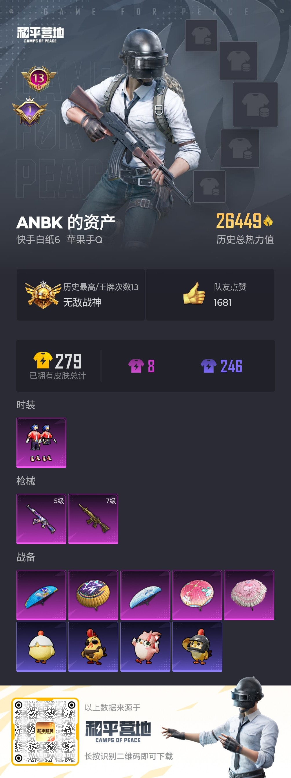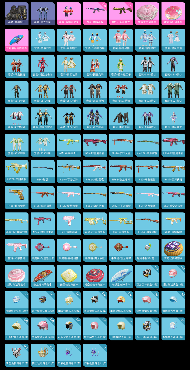 【和平精英】【txhp5082】1粉装,2特效呛,0载具,历史最高段位:无敌战神 王牌印记13次 热力值:26449,67套装,81呛械,68装备,48战备;套装:套装-音爆索尼克,套装-蓝色运动,套装-白色伏地魔,套装-竞技名士,套装-猛禽,套装-长空猛禽,套装-黎明保卫者,套装-冷焰舞者,套装-青羽突袭者,套装-水银刺客,套装-龙腾端午,套装-完美偶像,套装-幻影武者,套装-魅力单车,套装-绮丽涂鸦,套装-金羽特工,套装-幻世战舞者,套装-缤纷果语,套装-风暴特警,套装-格斗先锋,套装-冷血极客,套装-麻辣教官,套装-萌黄之夏,套装-牛气满满,套装-特种颜团子,套装-牛气冲天,套装-ss18特训,套装-飞行日记,套装-吉莉礼服,套装-ss15特训,套装-ss16特训,套装-暴风机械师,套装-时空追击者,套装-ss17特训,套装-瑞龙福将,套装-团圆交子,套装-福星高照,套装-虎虎生威吉莉,套装-空投萌叽,套装-ss19特训,套装-ss20特训,套装-ss21特训,套装-萌趣咩咩,套装-娇憨猪猪,套装-玉兔迎春,套装-ss22特训,套装-和煦暖阳,套装-田园牧歌,套装-轻风白浪,套装-碧波幻想,套装-光之冒险,套装-绯格组合,套装-ss23特训,套装-飞狐塔尔斯,套装-柠萌假日,套装-ss24特训,套装-龟仙人,套装-ss25特训,套装-ss27特训,套装-ss28特训,套装-ss31特训,套装-ss33特训,套装-ss32特训,套装-顶瓜瓜,角色-时希公主,套装-ss34特训,套装-ss35特训;呛皮:mk47-百万伏特,mk47-乌木金纹,famas-乌木金纹,scar-l-玉兔迎春,5级akm-星际浪客,akm-破晓战魂,akm-彩虹符号,akm-萌趣颜团子,akm-虎虎生威,akm-霓彩脉冲,g36c-时空追击者,g36c-乌木金纹,蜜獾-娇憨猪猪,蜜獾-垂柳戏鸭,蜜獾-天降萌叽,q-彩虹符号,aug-天降萌叽,7级m416-五爪金龙,m416-红色方程式,m416-糯团青竹,ac-val-乌木金纹,ac-val-天降萌叽,m762-绯红前夜,m762-瑞龙福将,m762-天降萌叽,groza-彩虹符号,groza-田园牧歌,win94-瑞龙福将,kar98k-王子的夏天,kar98k-欢乐麻酱,kar98k-乌木金纹,莫辛纳甘-乌木金纹,m24-影袭,m24-乌木金纹,amr-乌木金纹,slr-娇憨猪猪,sks-心之恋语,sks-炫彩节奏,sks-时空追击者,vss-田园牧歌,mk14-乌木金纹,野牛-夜灯,野牛-乌木金纹,p90-乌木金纹,mp5k-乌木金纹,ump45-时空追击者,vect-田园牧歌,uzi-炫彩节奏,uzi-娇憨猪猪,汤姆逊-炫彩节奏,s12k-瑞龙福将,s12k-娇憨猪猪,s12k-幻世战舞者,s12k-玩趣呆呆,s12k-霓彩脉冲,s1897-百万伏特,s1897-炫彩节奏,s1897-乌木金纹,spas-12-田园牧歌,dbs-时空追击者,dbs-乌木金纹,s686-葫芦兄弟,s686-彩虹符号,dp-28-彩虹符号,dp-28-齐天大圣,m249-百万伏特,m249-彩虹符号,m249-糯团青竹,mg3-瑞龙福将,mg3-幻世战舞者,mg3-乌木金纹,p18c-百万伏特,平底锅-时空追击者,平底锅-瑞龙福将,平底锅-娇憨猪猪,平底锅-田园牧歌,平底锅-光之冒险,平底锅-空岛之星,撬棍-幻世战舞者,破片手留单-萌趣颜团子,破片手留单-呆爆全场;降落伞:火焰蝠人飞行服,红色滑翔尾迹; 详情看图【战神框】13王牌印记/2.6w热力值/1粉/2特/满级五爪金龙