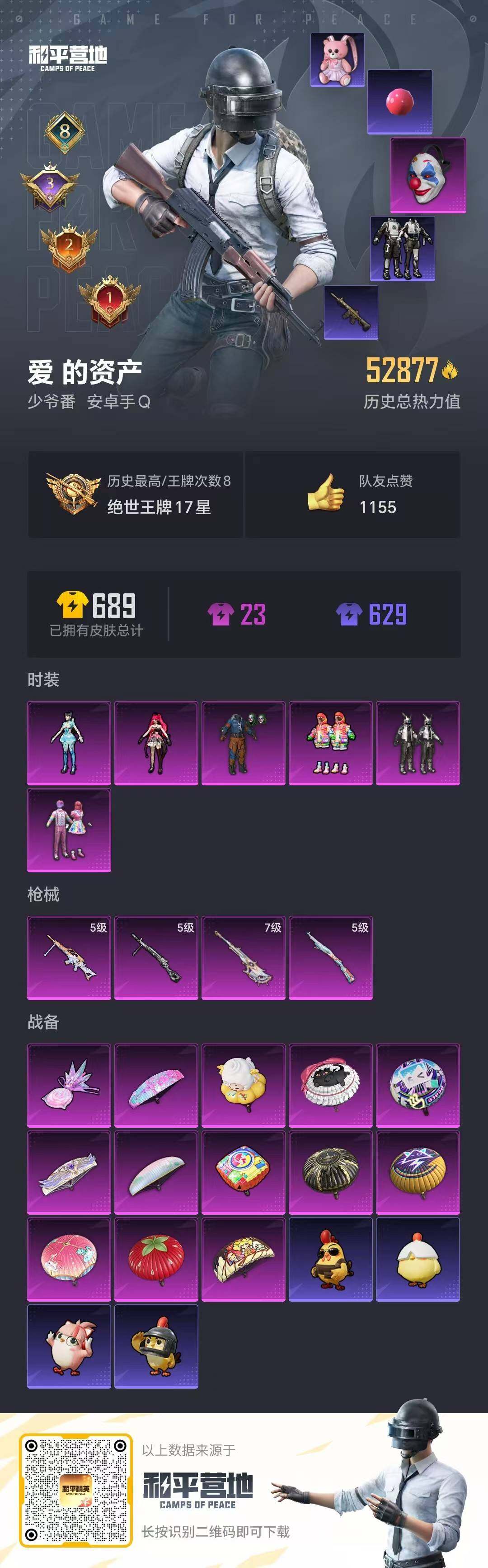 yzj12685-可二次-安卓q-2稀有6粉装4特效呛16热门【身法素材号 浙江rsg粉丝logo 小丑[怪诞] rsg追光战队服 浅蓝色牛仔外套 小丑鱼 动感兔斯基 双马尾 鲨鱼裤 红眼罩 狂沙 天命 粉熊背包 百万伏特头盔】142套装182呛皮 52877热力值 8印记 历史绝世王牌17星 【2稀有】 akm-缤纷海域 浪漫天命 【6粉装】 绯穹魔姬 天使彩虹糖 异瞳寒姬 炫光之旅 怪诞乔