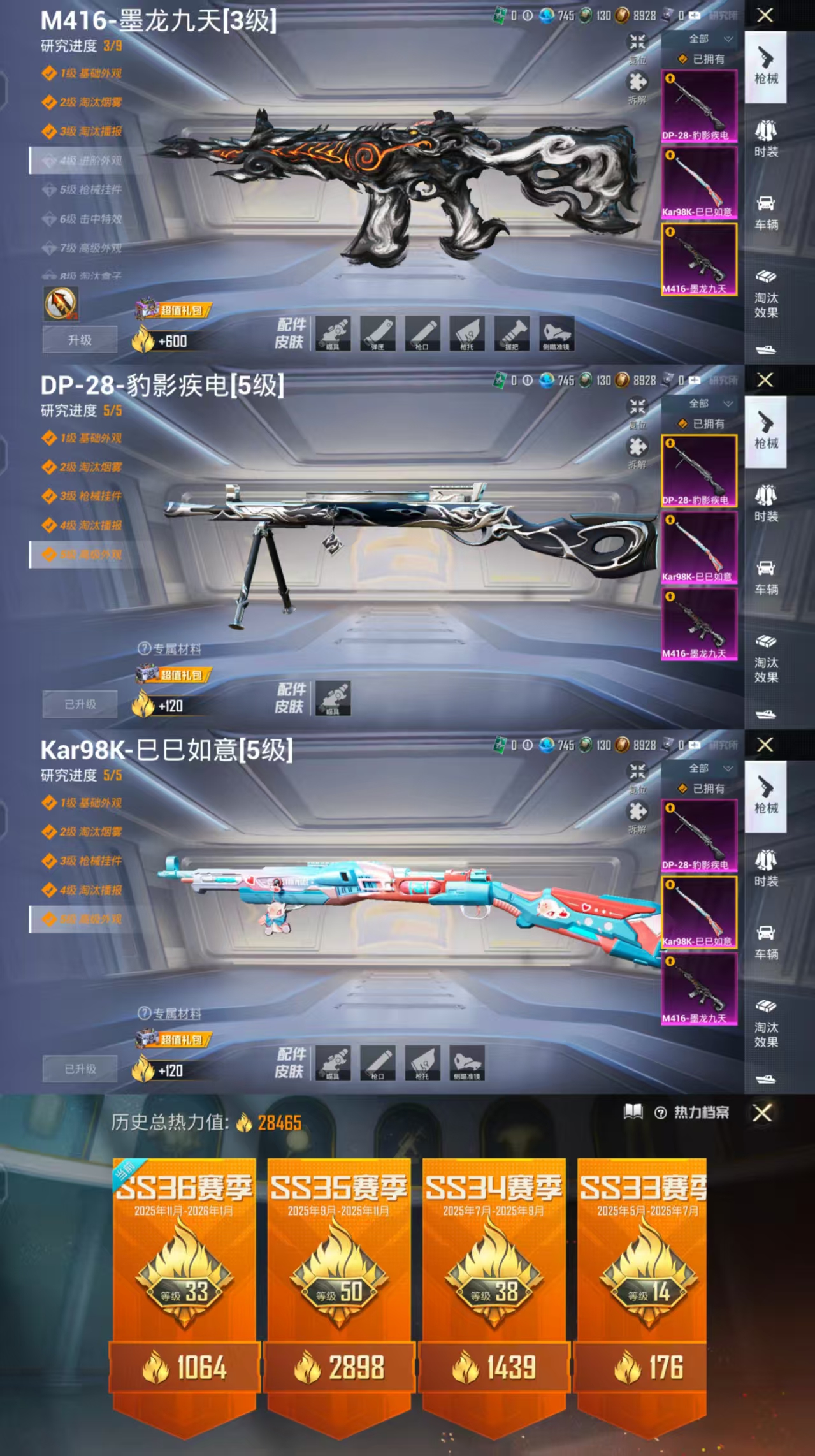 [14839837]h12211安卓q区-1粉装-3特效呛-28465热力值-2王牌印记-65套装-88呛皮【优质套装】: 星之彼岸【优质载具皮肤】 帕加尼imola光影红【特效呛等级】:m416-墨龙九天三级m416-墨龙九天kar98k-巳巳如意五级kar98k-巳巳如意【优质武器皮肤】: m416-墨龙九天 kar98k-巳巳如意【稀有武器皮肤】: m416-墨龙九天 amr-墨龙九天 slr-墨龙九天 kar98k-巳巳如意 tmp-9-雪月幻音 pkm-啾咪啾咪 m416-红色方程式 m416-糯团青竹 akm-生命誓言 akm-破晓战魂 akm-龙的传人 akm-虎虎生威 akm-萌趣颜团子 scar-l-红色方程式 scar-l-炫彩节奏 q-彩虹符号 m762-瑞龙福将 g36c-乌木金纹 ac-val-天降萌叽 ac-val-快闪甜心 kar98k-乌木金纹 kar98k-彩虹符号 m24-乌木金纹 win94-瑞龙福将 amr-乌木金纹 m200-惊鸿侠骨 sks-炫彩节奏 mini14-龙宫之主 m417-惊鸿侠骨 mk20-h-快闪甜心 uzi-炫彩节奏 uzi-天降萌叽 ump45-蓝色火焰 ump45-生命誓言 汤姆逊-天降萌叽 野牛-乌木金纹 野牛-夜灯 p90-乌木金纹 p90-快闪甜心 s1897-乌木金纹 s12k-幻世战舞者 s12k-瑞龙福将 dbs-圣堂之誓 mg3-惊鸿侠骨 mg3-幻世战舞者 mg3-镜域双华 mg3-瑞龙福将 蝎式手呛-闲梦青缨 沙墨之鹦-快闪甜心 大砍刀-2p战斗服款 平底锅-惊鸿侠骨