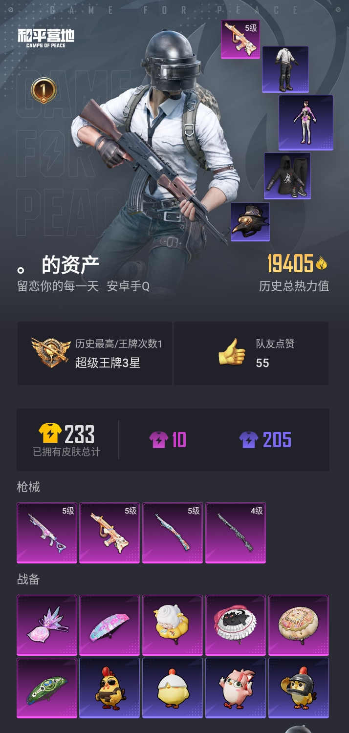 【和平精英】【lyhp18454】1w9热力值精品小号 4满级特效呛 满级aug 满级狗砸 0粉装,4特效呛,0载具,历史最高段位:超级王牌3星 王牌印记1次 热力值:19405,30套装,73呛械,80装备,40战备;套装:套装-黑色伏地魔,套装-海岛探路者,套装-缤纷果语,套装-战术大师,套装-恋语绒绒,套装-街头风暴,套装-海盐绵绵冰,角色-紫俏灵猫,套装-异域银装,套装-ss30特训,套装-青团波波,套装-糖糖葫芦,套装-ss31特训,套装-鱼渊荷华,套装-燕燕于飞,套装-紫幽梦,套装-ss33特训,套装-巳巳如意,套装-ss32特训,套装-蓝冰羽,套装-顶瓜瓜,套装-大橘大利,套装-极速光影,套装-星渊小夜曲,套装-霓虹热舞,套装-炫彩糖果,套装-ss34特训,套装-ss35特训,套装-ss36特训,套装-萌鸡速递;呛皮:m762-彩虹符号,m762-登顶巅峰,5级aug-暖羊咩咩,aug-异域银装,aug-冰晶雪宝,scar-l-炫彩节奏,scar-l-星途旅人,scar-l-海盐豹豹,蜜獾-天降萌叽,蜜獾-糖糖葫芦,蜜獾-鸡智如我,蜜獾-乌木金纹,m16a4-冰河战士,famas-乌木金纹,awm-天降萌叽,win94-乌木金纹,4级莫辛纳甘-未来领航者,m200-乌木金纹,5级kar98k-巳巳如意,mk20-h-星途旅人,mk20-h-糖糖葫芦,5级mk14-甜梦熊击,mk14-冰河战士,mk14-紫幽梦,mk12-乌木金纹,mini14-香桃花海,mini14-绯穹魔姬,m417-玩趣呆呆,m417-蓝晶绮麟,vss-香桃花海,p90-巳巳如意,uzi-天降萌叽,uzi-冰河战士,uzi-啾咪啾咪,uzi-炫彩糖果,vect-燕燕于飞,野牛-燕燕于飞,ump45-糖糖葫芦,ump45-绒宝小鹅,ump45-极意拳锋,aks-74u-鸡智如我,mp5k-乌木金纹,spas-12-燕燕于飞,spas-12-乌木金纹,s1897-紫幽梦,s1897-糯团青竹,dbs-乌木金纹,s686-巳巳如意,mg3-幻世战舞者,mg3-霓彩脉冲,pkm-紫幽梦,m249-糯团青竹,dp-28-彩虹符号,蝎式手呛-千金淑猫,蝎式手呛-燕燕于飞,p92-紫幽梦,p18c-糖糖葫芦,短管霰弹-星穹咏叹调,平底锅-精灵梦叶罗丽,平底锅-时空协奏,平底锅-糖糖葫芦,平底锅-紫幽梦,破片手留单-星途旅人,破片手留单-海盐豹豹,破片手留单-拽到爆炸,破片手留单-巳巳如意,破片手留单-爆破雪人,盐雾蛋-鸢尾晶梦,盐雾蛋-冰氧夏日,十子怒-异瞳寒姬,十子怒-燕燕于飞,十子怒-异域银装,铝热弹-炫彩糖果;降落伞:炫彩糖果飞行器,异域银装飞行器,顶峰精英尾迹; 详情看图