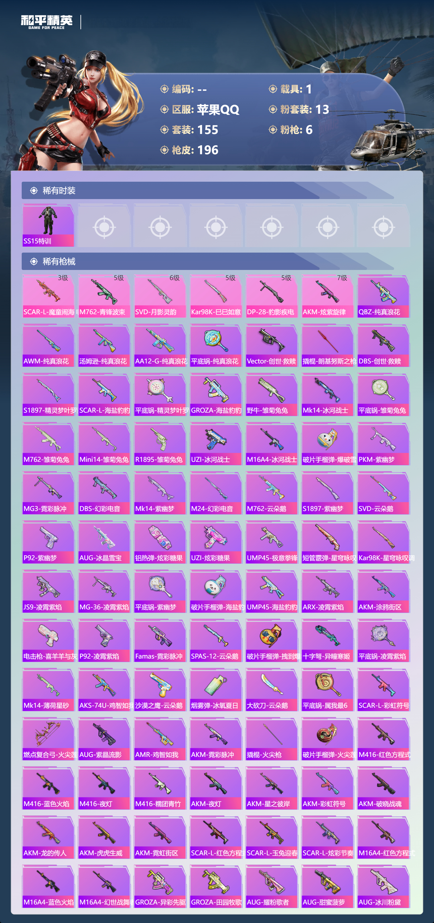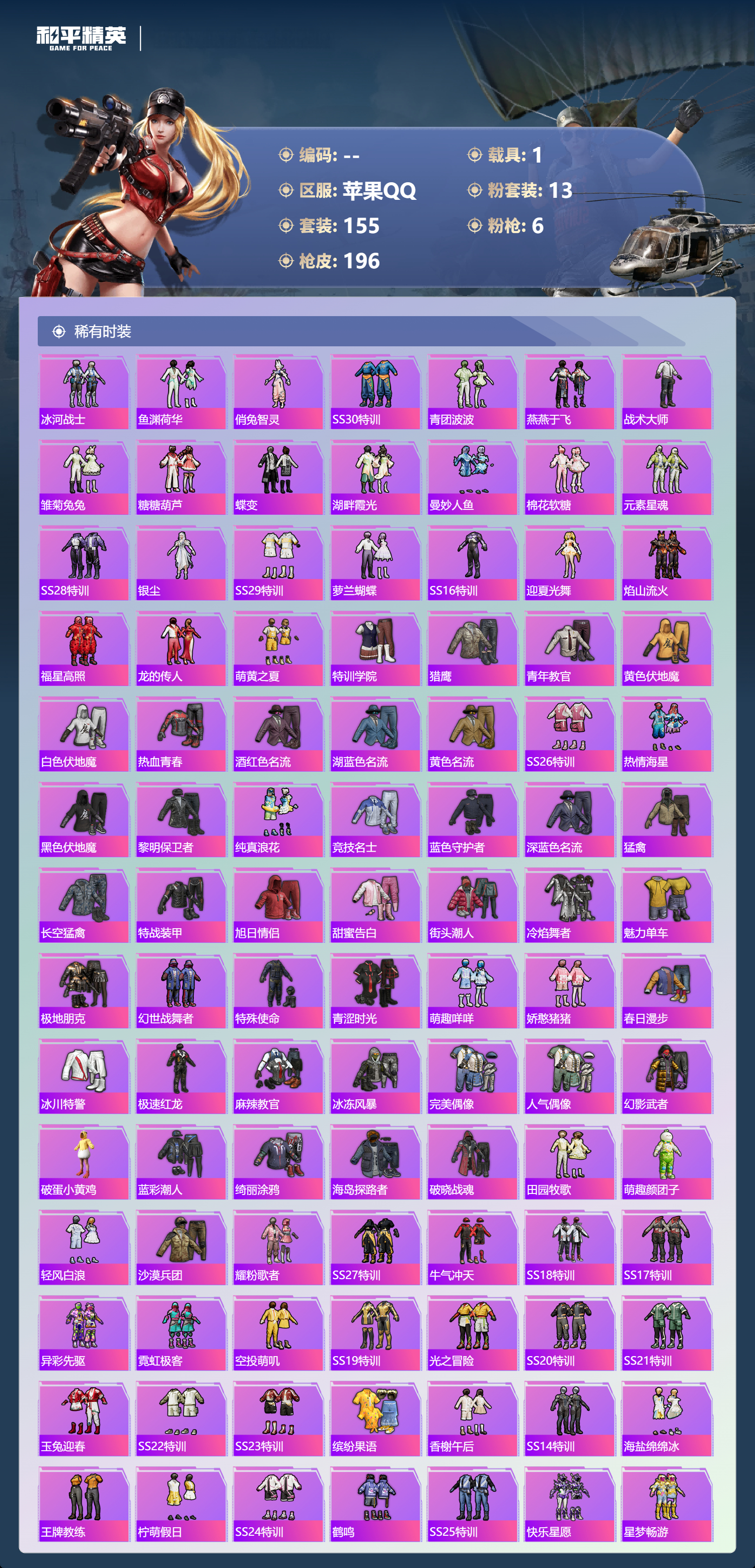 1载具-155套装-196呛皮-【哪吒赵灵儿】】苹果手q-13王牌印记-1红装-13粉装-6特效呛-1载具-67800热力值-155套装-196呛皮-5卓越印记-2传奇印记【1红装】魔童闹海-哪吒/2级【13粉装】套装-放客神游套装-冰川红玫套装-宝贝奶油派套装-星之彼岸套装-星穹咏叹调套装-天使彩虹糖套装-绒雪飘舞套装-冰川幽秘套装-绚金战神女娲后裔-赵灵儿角色-千金淑猫