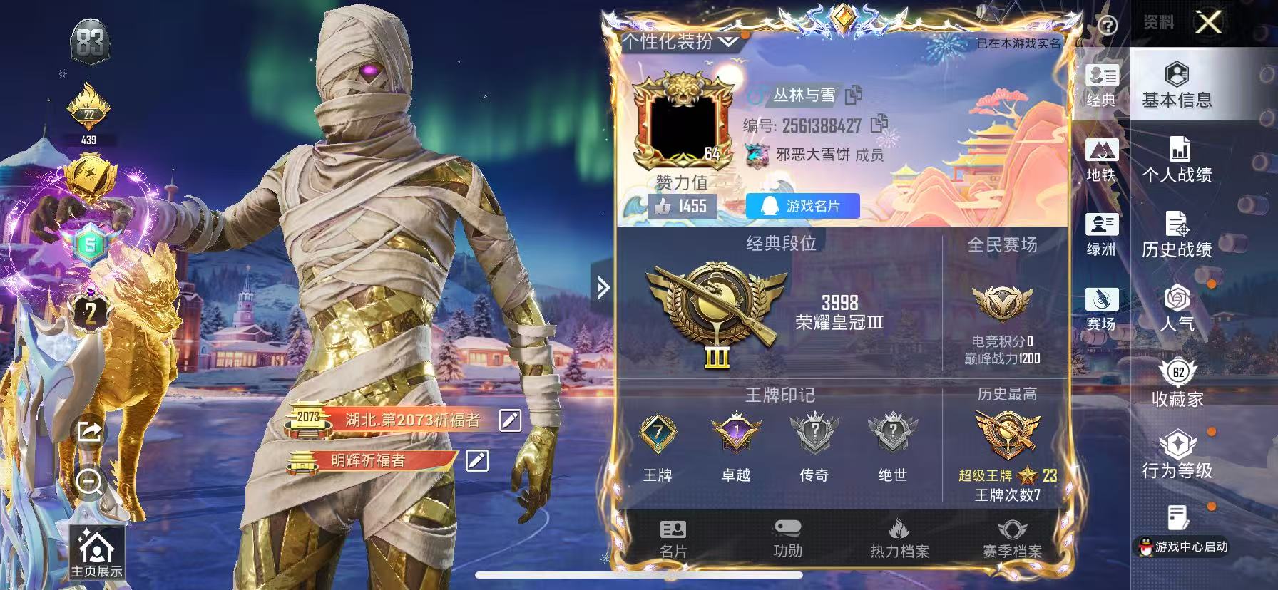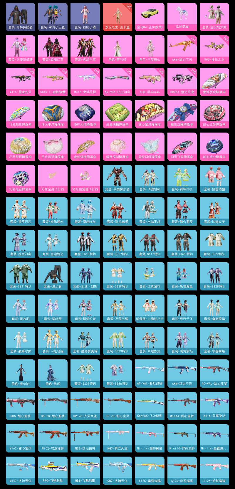 【和平精英】【txhp5148】6粉装,10特效呛,3载具,历史最高段位:超级王牌23星 王牌印记7次 热力值:54638,96套装,149呛械,193装备,90战备;套装:沙丘之主-图卡盟,套装-宝贝奶油派,套装-天使彩虹糖,套装-炙焰红王,套装-炙焰牛王,角色-萨利娅,角色-羊梦糖心,套装-白色伏地魔,套装-竞技名士,套装-长空猛禽,套装-漫步者,套装-海岛探路者,套装-旭日情侣,套装-特战装甲,套装-特殊使命,套装-绮丽涂鸦,套装-都市漫游者,套装-极地朋克,套装-幻世战舞者,套装-奇异狩猎者,套装-深海小丑鱼,套装-缤纷果语,套装-冰川特警,套装-麻辣教官,套装-粉红小猪,套装-破蛋小黄鸡,套装-军械专家,套装-白熊同盟,套装-探宝勇士,套装-tianba战队服,套装-牛气满满,套装-战术大师,套装-牛气冲天,套装-ss18特训,套装-热情海星,套装-纯真浪花,角色-英勇保护者,套装-ss17特训,套装-水晶王族,套装-瑞龙福将,套装-团圆交子,套装-极乐追光,套装-虎虎生威吉莉,套装-ss19特训,套装-飞驰魅影,套装-音速流光,套装-ss20特训,套装-猎梦纪元,套装-甜心亚梦,套装-虚音幻奏,套装-ss21特训,套装-萌趣咩咩,套装-娇憨猪猪,套装-荷畔雨呱,套装-玉兔迎春,套装-ss22特训,套装-光之冒险,套装-王牌教练,套装-漫游都市,套装-恋语绒绒,套装-ss28特训,套装-海盐绵绵冰,套装-创世·幻影,套装-ss29特训,套装-异域银装,套装-闪电轻猫,套装-ss31特训,套装-鱼渊荷华,套装-石蕴玉辉,套装-燕燕于飞,套装-智谋强哥,角色-风玲,套装-紫幽梦,套装-晶辉守护,套装-ss33特训,玩偶服-小狗蛇点点,套装-巳巳如意,套装-ss32特训,套装-樱梦幻音,套装-蓝冰羽,套装-顶瓜瓜,套装-大橘大利,套装-炫彩糖果,套装-星影赞美诗,套装-元气之梦,套装-ss34特训,套装-擎苍青焰,套装-朱霞炽焰,角色-申公豹,套装-游乐,套装-凌霄紫焰,角色-敖闰,套装-薄荷星砂,套装-ss35特训,套装-ss36特训,套装-萌鸡速递;呛皮:蜜獾-娇憨猪猪,蜜獾-垂柳戏鸭,蜜獾-天降萌叽,蜜獾-乌木金纹,ac-val-甜心亚梦,ac-val-彩虹甜喵,ac-val-天降萌叽,q-彩虹符号,q-洛神天依,q-飞驰魅影,q-纯真浪花,3级scar-l-金蛇镇世,scar-l-夜灯,scar-l-炫彩节奏,scar-l-彩虹符号,scar-l-玉兔迎春,scar-l-海盐豹豹,scar-l-净心行者,scar-l-小狗蛇点点,5级groza-镜光银凌,5级aug-暖羊咩咩,aug-异域银装,aug-金蛇镇世,aug-紫晶流影,m762-甜心宝贝,m762-瑞龙福将,m762-天降萌叽,mk47-洛神天依,mk47-乌木金纹,7级akm-甜心宝贝,akm-涂鸦街区,akm-虎虎生威,akm-环太平洋,akm-霓彩脉冲,g36c-乌木金纹,m16a4-甜心亚梦,m16a4-幻世战舞者,3级m416-墨龙九天,3级m416-女娲灵识,m416-红色方程式,m416-紫翼圣骑,arx-凌霄紫焰,famas-霓彩脉冲,famas-乌木金纹,5级kar98k-巳巳如意,kar98k-飞驰魅影,kar98k-星穹咏叹调,win94-瑞龙福将,win94-晶梦幻蝶,win94-乌木金纹,m24-乌木金纹,awm-纯真浪花,awm-盛世惊鸿,amr-鸡智如我,m200-乌木金纹,莫辛纳甘-炙焰牛王,sks-迅猛狂鲨,sks-炫彩节奏,mk14-乌木金纹,mk14-紫幽梦,mk14-薄荷星砂,mini14-穿刺龙虾,mini14-星夜魔法师,mini14-旋转彩虹,slr-娇憨猪猪,mk12-金蛇镇世,mk12-乌木金纹,m417-幻影飞狐,mk20-h-乌木金纹,汤姆逊-环太平洋,汤姆逊-天降萌叽,汤姆逊-纯真浪花,uzi-娇憨猪猪,uzi-啾咪啾咪,uzi-幻影飞狐,uzi-炫彩糖果,vect-生命誓言,vect-燕燕于飞,aks-74u-鬼刀,aks-74u-鸡智如我,aks-74u-乌木金纹,3级p90-沙丘之主,p90-飞驰魅影,p90-巳巳如意,p90-金蛇镇世,野牛-燕燕于飞,js9-凌霄紫焰,ump45-海盐豹豹,ump45-圣穹绘梦,s1897-炫彩节奏,s1897-飞驰魅影,s1897-暗夜鎏金,s1897-精灵梦叶罗丽,s1897-紫幽梦,s12k-夜灯,s12k-瑞龙福将,s12k-娇憨猪猪,s12k-垂柳戏鸭,s12k-幻世战舞者,s12k-音爆索尼克,s12k-霓彩脉冲,s686-奇异狩猎者,s686-生命誓言,s686-巳巳如意,aa12-g-纯真浪花,spas-12-燕燕于飞,dbs-甜心亚梦,dbs-乌木金纹,mg3-瑞龙福将,mg3-幻世战舞者,mg3-第五大道,mg3-霓彩脉冲,m249-糯团青竹,mg-36-凌霄紫焰,pkm-啾咪啾咪,pkm-紫幽梦,pkm-小狗蛇点点,5级dp-28-豹影疾电,dp-28-甜心宝贝,dp-28-彩虹符号,dp-28-齐天大圣,dp-28-甜心亚梦,f57-魔童闹海 敖闰,p92-紫幽梦,p92-凌霄紫焰,蝎式手呛-燕燕于飞,沙墨之鹦-王牌投手,沙墨之鹦-圣穹绘梦,p1911-小狗蛇点点,平底锅-甜心宝贝,平底锅-瑞龙福将,平底锅-飞驰魅影,平底锅-甜心亚梦,平底锅-娇憨猪猪,平底锅-纯真浪花,平底锅-紫幽梦,平底锅-属我最6,平底锅-凌霄紫焰,大砍刀-鬼刀,撬棍-甜心宝贝,撬棍-幻世战舞者,6级镰刀-幽影之判,铝热弹-炫彩糖果,破片手留单-海盐豹豹,破片手留单-拽到爆炸,破片手留单-巳巳如意,十子怒-燕燕于飞,十子怒-异域银装,盐雾蛋-冰氧夏日;载具:护世瑞兽,晶梦灵驹,宝马m4圣保罗黄;降落伞:酣梦熊熊飞行器,凤舞九天飞行器,祥瑞起舞飞行器,彩虹独角兽飞行器,万象金身飞行器,炫彩糖果飞行器,异域银装飞行器,破刃行动尾迹,鸡智如我飞行器; 详情看图7王牌印记 5.4w热力值 2级图卡盟 6粉(天使彩虹糖 宝贝奶油派 深海小丑鱼 奇异狩猎者 小狗蛇点点)10特(沙丘之主 金蛇 墨龙 女娲灵识) 1金马 1马 1车