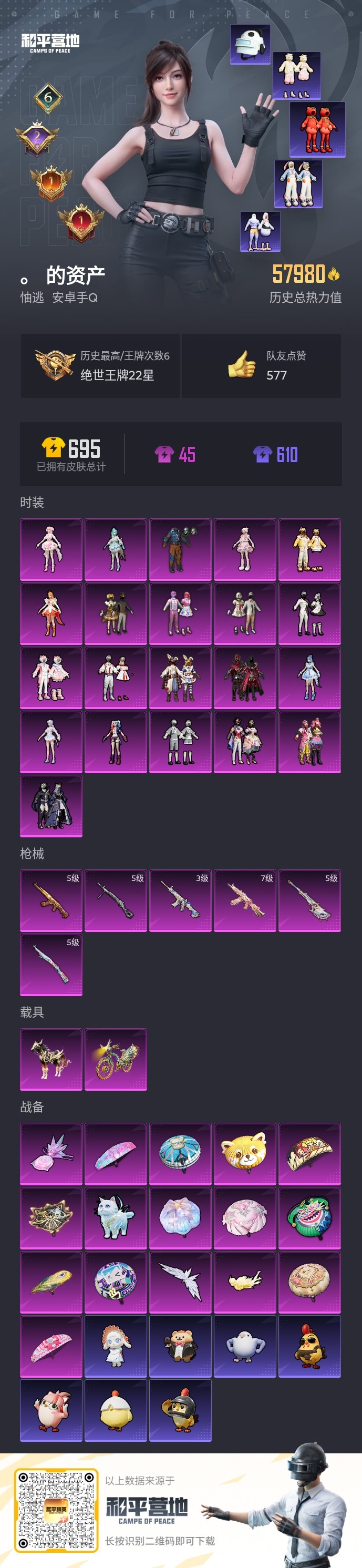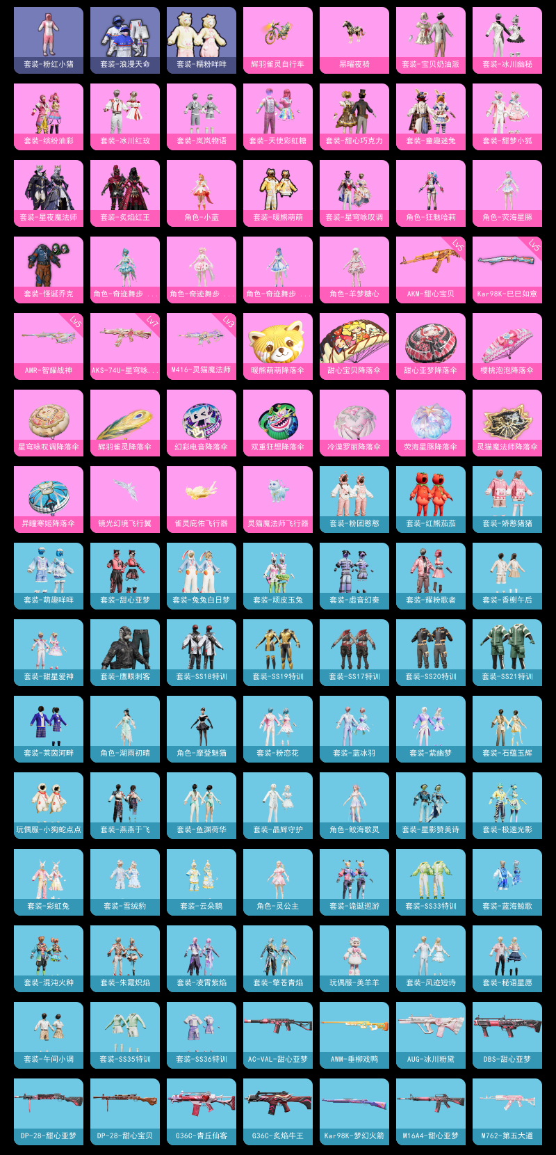 【和平精英】【txhp5145】21粉装,6特效呛,2载具,历史最高段位:绝世王牌22星 王牌印记6次 热力值:57980,145套装,160呛械,242装备,118战备;套装:套装-怪诞乔克,套装-甜心巧克力,套装-宝贝奶油派,套装-天使彩虹糖,套装-缤纷油彩,套装-童趣迷兔,套装-炙焰红王,套装-星夜魔法师,套装-岚岚物语,套装-暖熊萌萌,套装-甜梦小狐,套装-冰川幽秘,套装-冰川红玫,角色-小蓝,角色-狂魅哈莉,套装-星穹咏叹调,角色-羊梦糖心,角色-荧海星豚,角色-奇迹舞步 美雪,角色-奇迹舞步 美琪,角色-奇迹舞步 雅雅,套装-特训学院,套装-猎鹰,套装-青年教官,套装-红色运动,套装-黄色运动,套装-蓝色运动,套装-黄色伏地魔,套装-白色伏地魔,套装-黑色伏地魔,套装-竞技名士,套装-深蓝色名流,套装-黄色名流,套装-猛禽,套装-长空猛禽,套装-海岛探路者,套装-旭日情侣,套装-浪漫天命,套装-甜蜜告白,套装-春日漫步,套装-滨海假日,套装-鹰眼刺客,套装-完美偶像,套装-人气偶像,套装-街头潮人,套装-魅力单车,套装-绮丽涂鸦,套装-竞技达人朋克,套装-幻世战舞者,套装-夏日倾情,套装-缤纷果语,套装-滨海厨神,套装-元素星魂,套装-麻辣教官,套装-粉红小猪,套装-破蛋小黄鸡,套装-鹤鸣,套装-霓虹街区,套装-白熊同盟,套装-顽皮玉兔,套装-探宝勇士,套装-牛气满满,套装-白糯汤圆,套装-战术大师,套装-牛气冲天,套装-ss18特训,套装-耀粉歌者,套装-飞行日记,套装-吉莉礼服,套装-ss17特训,套装-虎虎生威吉莉,套装-空投萌叽,套装-ss19特训,套装-甜星爱神,套装-兔兔白日梦,套装-ss20特训,套装-粉团憨憨,套装-甜心亚梦,套装-虚音幻奏,套装-ss21特训,套装-萌趣咩咩,套装-娇憨猪猪,套装-红熊茄茄,套装-玉兔迎春,套装-光之冒险,套装-莱茵河畔,套装-香榭午后,套装-糯粉咩咩,套装-王牌教练,套装-柠萌假日,套装-涂山之恋,套装-漫游都市,套装-恋语绒绒,角色-湖雨初晴,套装-街头风暴,套装-航行童话,套装-异域银装,角色-摩登魅猫,套装-小鸟芋圆,套装-诡诞巡游,套装-绒宝小鹅,套装-ss31特训,套装-鱼渊荷华,套装-石蕴玉辉,套装-燕燕于飞,套装-暗械蛇影,套装-智谋强哥,套装-紫幽梦,套装-粉恋花,套装-晶辉守护,套装-ss33特训,套装-云朵鹅,玩偶服-小狗蛇点点,套装-巳巳如意,套装-ss32特训,套装-彩虹兔,套装-蓝冰羽,套装-顶瓜瓜,套装-暖暖向日葵,套装-雪绒豹,套装-乐游熊熊,套装-混沌火种,套装-大橘大利,套装-极速光影,角色-灵公主,角色-鲛海歌灵,套装-炫彩糖果,套装-星影赞美诗,套装-蓝海鲸歌,玩偶服-美羊羊,套装-元气之梦,套装-ss34特训,套装-擎苍青焰,套装-朱霞炽焰,套装-凌霄紫焰,套装-薄荷星砂,套装-ss35特训,套装-午间小调,套装-秘语星愿,套装-风迹短诗,套装-粉黛兰香,套装-ss36特训,套装-摩卡猫猫,套装-雪国风尚,套装-萌鸡速递;呛皮:5级akm-甜心宝贝,akm-生命誓言,akm-涂鸦街区,akm-彩虹符号,akm-虎虎生威,akm-江南烟雨,akm-灵猫魔法师,akm-霓彩脉冲,akm-绿洲时空,g36c-青丘仙客,g36c-炙焰牛王,g36c-星穹咏叹调,g36c-乌木金纹,m16a4-甜心亚梦,m16a4-幻世战舞者,m16a4-千金淑猫,m16a4-最终圣卫者,蜜獾-娇憨猪猪,蜜獾-精灵梦叶罗丽,蜜獾-风迹短诗,蜜獾-乌木金纹,arx-凌霄紫焰,famas-霓彩脉冲,famas-乌木金纹,ac-val-甜心亚梦,ac-val-天降萌叽,mk47-乌木金纹,mk47-风迹短诗,3级m416-灵猫魔法师,m416-蓝色火焰,aug-冰川粉黛,aug-天降萌叽,aug-异域银装,aug-绝对恒星,aug-冰晶雪宝,scar-l-炫彩节奏,scar-l-彩虹符号,scar-l-玉兔迎春,scar-l-小狗蛇点点,scar-l-冷漠罗丽,scar-l-乐游熊熊,groza-彩虹符号,groza-荧海星豚,m762-甜心宝贝,m762-第五大道,m762-云朵鹅,m762-登顶巅峰,awm-垂柳戏鸭,awm-奇迹舞步,5级amr-智耀战神,amr-喜羊羊与灰太狼,win94-乌木金纹,m200-爆裂游戏,m200-乌木金纹,svd-云朵鹅,svd-霓彩脉冲,m24-炫彩节奏,m24-樱桃泡泡,m24-乌木金纹,莫辛纳甘-乌木金纹,莫辛纳甘-风迹短诗,5级kar98k-巳巳如意,kar98k-梦幻火箭,kar98k-星穹咏叹调,mk14-乌木金纹,mk14-紫幽梦,mk14-薄荷星砂,mk20-h-狂鲨锋刃,mk12-风迹短诗,mk12-乌木金纹,m417-玩趣呆呆,slr-娇憨猪猪,slr-霓彩脉冲,mini14-炫彩节奏,mini14-鸡智如我,mini14-辉羽雀灵,sks-炫彩节奏,sks-乐游熊熊,sks-折梦之诗,mp5k-乌木金纹,vect-生命誓言,vect-燕燕于飞,uzi-娇憨猪猪,uzi-天降萌叽,uzi-月影灵韵,uzi-炫彩糖果,p90-巳巳如意,ump45-蓝色火焰,ump45-海盐豹豹,ump45-绒宝小鹅,ump45-绿洲时空,野牛-燕燕于飞,野牛-乌木金纹,js9-凌霄紫焰,汤姆逊-耀粉歌者,汤姆逊-灵猫魔法师,7级aks-74u-星穹咏叹调,aks-74u-辉羽雀灵,aks-74u-乌木金纹,s12k-童趣迷兔,s12k-娇憨猪猪,s12k-冰川粉黛,s12k-垂柳戏鸭,s12k-幻世战舞者,s12k-智耀战神,s12k-极意拳锋,s12k-霓彩脉冲,s1897-炫彩节奏,s1897-紫幽梦,s1897-糯团青竹,s1897-荧海星豚,dbs-甜心亚梦,dbs-风迹短诗,spas-12-燕燕于飞,spas-12-狂鲨锋刃,spas-12-云朵鹅,s686-巳巳如意,5级dp-28-豹影疾电,dp-28-甜心宝贝,dp-28-彩虹符号,dp-28-甜心亚梦,mg-36-凌霄紫焰,mg3-幻世战舞者,mg3-乌木金纹,mg3-第五大道,pkm-啾咪啾咪,pkm-紫幽梦,m249-彩虹符号,m249-萌萌史莱姆,短管霰弹-星穹咏叹调,p92-紫幽梦,p92-凌霄紫焰,沙墨之鹦-云朵鹅,蝎式手呛-燕燕于飞,电击呛-喜羊羊与灰太狼,p1911-小狗蛇点点,r45-幻彩电音,撬棍-甜心宝贝,撬棍-冷漠罗丽,撬棍-双重狂想,撬棍-灵猫魔法师,大砍刀-云朵鹅,平底锅-甜心宝贝,平底锅-空投萌叽,平底锅-甜心亚梦,平底锅-娇憨猪猪,平底锅-紫幽梦,平底锅-属我最6,平底锅-辉羽雀灵,平底锅-凌霄