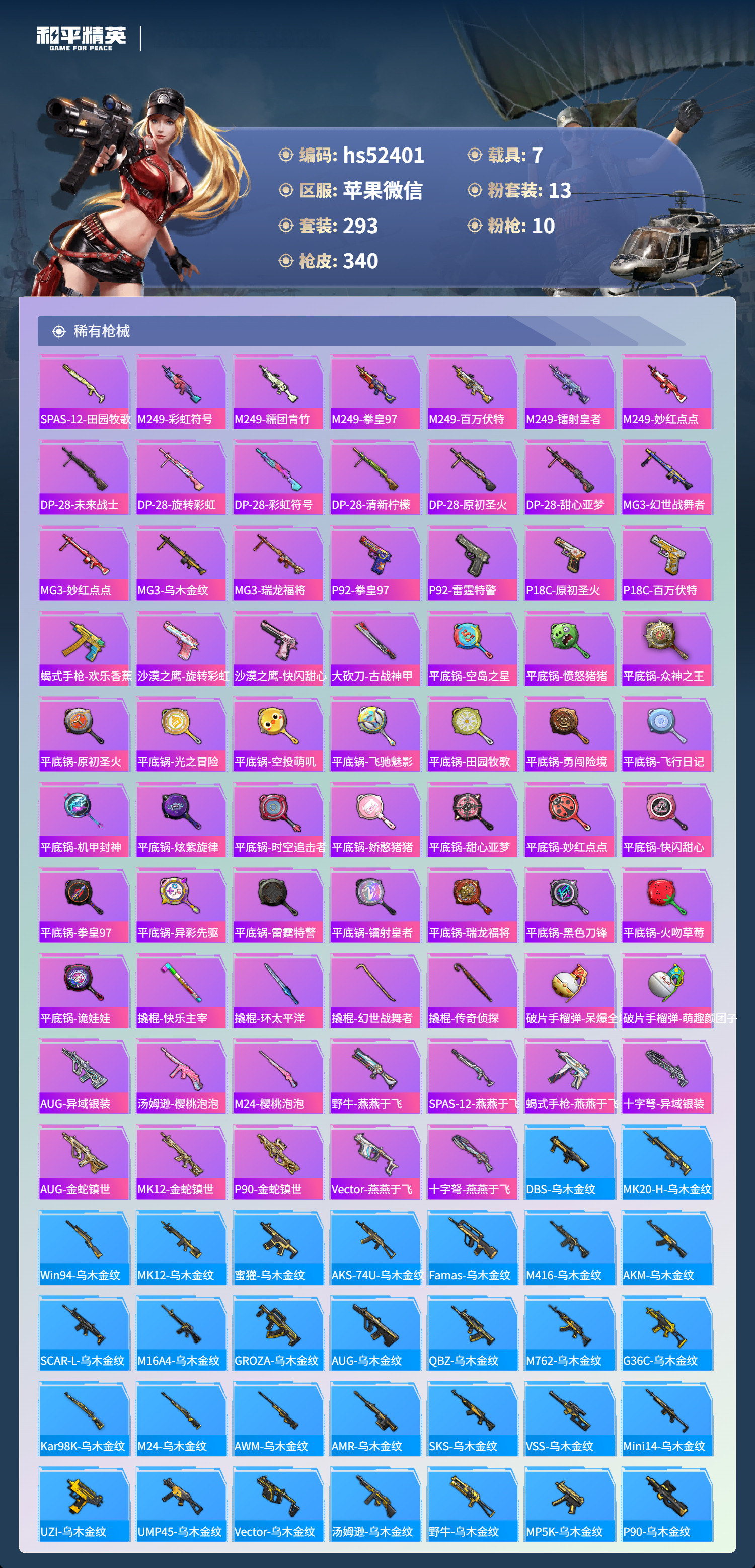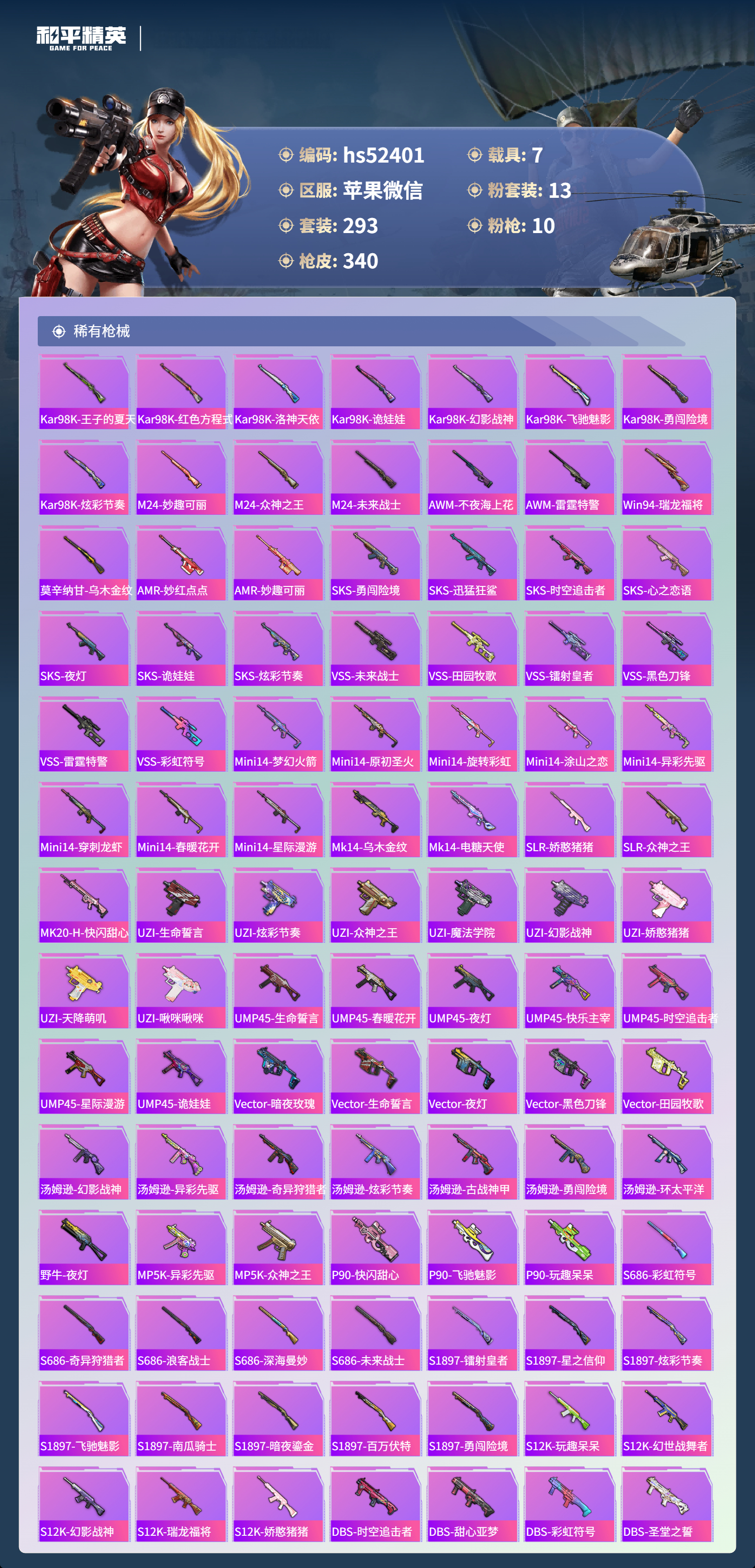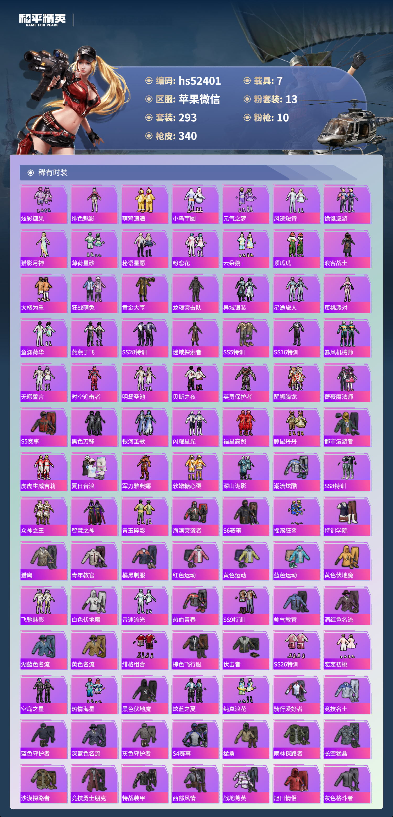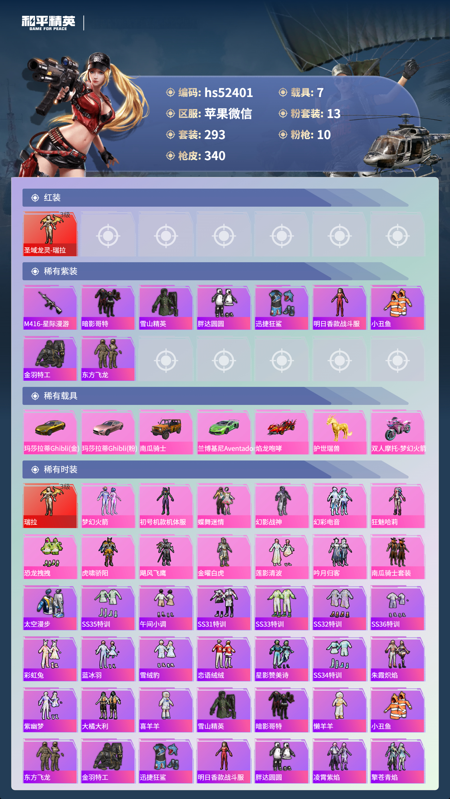 hs52401 苹果微信-32王牌印记-有战神框-1红装-13粉装-10特效呛-7载具-热力值-293套装-340呛皮-10卓越印记-7传奇印记【1红装】圣域龙灵-瑞拉/3级【13粉装】套装-南瓜骑士套装-莲影清波套装-吟月归客套装-金曜白虎套装-幻彩电音角色-初号机款机体服角色-狂魅哈莉套装-恐龙拽拽套装-虎啸骄阳套装-幻影战神套装-梦幻火箭套装-飓风飞鹰