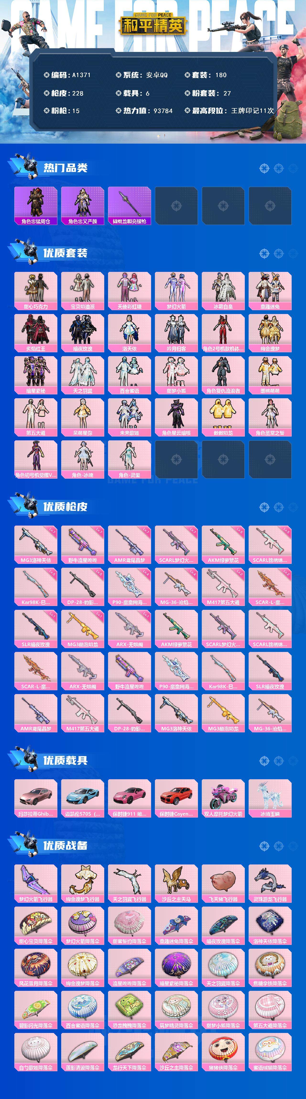 [14861186]安卓【螳螂号/梦幻火箭/2号机款机体服/蓝螳螂/】 手q-27粉装-15特效呛-6载具-8粉色飞行器-93784热力值-11王牌印记-180套装-228呛皮 【热门品类】:粉装-梦幻火箭,粉装-童趣迷兔,角色-忠猛周仓,角色-忠义严颜,套装-龟仙人,套装-粉红小猪,角色-mark.06,大砍刀-青龙偃月刀,撬棍-龙胆亮银呛 【粉色套装】:粉装-甜心巧克力,粉装-宝贝奶油派,粉装-天使彩虹糖,粉装-梦幻火箭,粉装-冰霜白皇,粉装-童趣迷兔,粉装-炙焰红王,粉装-暗夜玫瑰,角色-洛天依,粉装-吟月归客,角色-2号机款机体服,粉装-绚金瑰梦,粉装-暗星紫秘,粉装-天之羽翼,粉装-百合蜜语,粉装-甜梦小狐,角色-复仇流浪者,粉装-暖熊萌萌,粉装-第五大道,角色-呆萌星弥,粉装-未来歌姬,角色-星云暗核,粉装-傲傲奶龙,角色-圣堂之誓,角色-初号机 觉醒ver.,角色-冰魄,角色-灵玺 【粉色呛皮等级】:akm-绿萝繁花五级,scar-l-梦幻火箭七级,scar-l-锦绣绵绵五级,scar-l-魔童闹海 哪吒二级,arx-无垠阁一级,野牛-流星咚咚七级,p90-魔童闹海 敖丙四级,kar98k-巳巳如意五级,slr-暗夜玫瑰一级,amr-鸢尾晶梦七级,m417-第五大道二级,dp-28-豹影疾电五级,mg3-洛神天依七级,mg3-酷泡奶龙一级,mg-36-沧焰双生四级 【粉色载具】:玛莎拉蒂ghibli(粉),迈凯伦570s(天际蓝),保时捷911 敞篷版(星珀红),保时捷cayenne(激情红),双人摩托-梦幻火箭,冰绡玉鳞 【粉色呛皮】:akm-绿萝繁花,scar-l-梦幻火箭,scar-l-锦绣绵绵,scar-l-魔童闹海 哪吒,arx-无垠阁,野牛-流星咚咚,p90-魔童闹海 敖丙,kar98k-巳巳如意,slr-暗夜玫瑰,amr-鸢尾晶梦,m417-第五大道,dp-28-豹影疾电,mg3-洛神天依,mg3-酷泡奶龙,mg-36-沧焰双生 【粉色飞行器】:梦幻火箭飞行器,绚金瑰梦飞行器,天之羽翼飞行器,沙丘之主天马,飞天猪飞行器,灵珠游龙飞行器 【粉色降落伞】:甜心宝贝降落伞,梦幻火箭降落伞,甜蜜誓约降落伞,童趣迷兔降落伞,暗夜玫瑰降落伞,洛神天依降落伞,风花雪月降落伞,绚金瑰梦降落伞,流星咚咚降落伞,暗星
