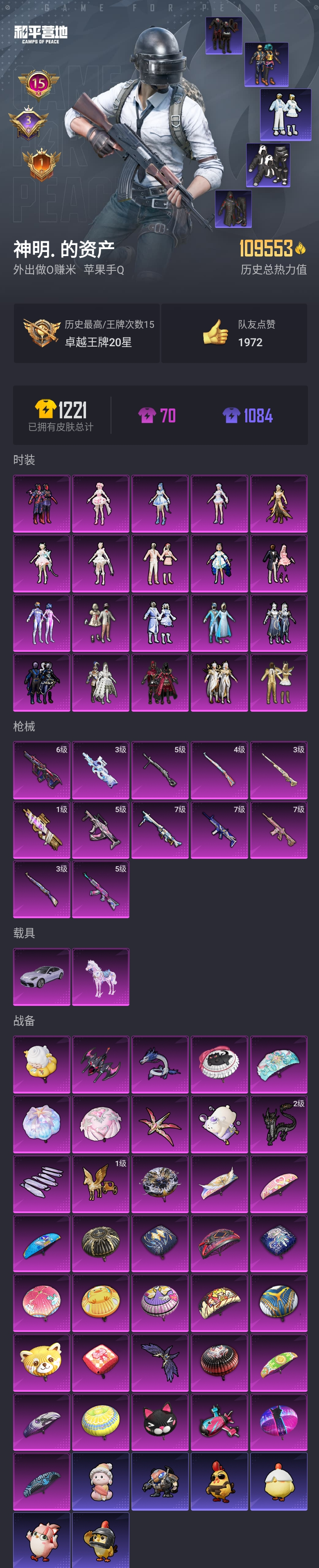【和平精英】【lyhp18404】15印记 20粉12特2载具 雪国 奶油 火箭 6级星彼岸 3级p90 洛天依 粉熊包 猫包 软羊咩咩 深海小丑鱼 胖达 哥特 奇异 浪漫芭比 天命 m4仓鼠灰灰 20粉装,12特效呛,2载具,历史最高段位:卓越王牌20星 王牌印记15次 热力值:109553,239套装,303呛械,442装备,196战备;套装:套装-宝贝奶油派,套装-雪国幻梦,套装-梦幻火箭,套装-潮汐统领,套装-金属狂野,套装-冰霜白皇,套装-炙焰红王,套装-蜜桃特工,角色-洛天依,套装-星之彼岸,套装-暗夜玫瑰,套装-吟月归客,套装-霁雪冰心,套装-第五大道,角色-千金淑猫,角色-晶梦幻蝶,角色-罗征,角色-荧海星豚,角色-奇迹舞步 美雪,角色-奇迹舞步 美琪,套装-特训学院,套装-蓝色运动,套装-骑行爱好者,套装-竞技名士,套装-长空猛禽,套装-漫步者,套装-竞技勇士朋克,套装-黎明保卫者,套装-蓝色守护者,套装-旭日情侣,套装-冷焰舞者,套装-刚毅裁决者,套装-浪漫天命,套装-特战装甲,套装-战地菁英,套装-浪漫假日,套装-贵族骑装,套装-特殊使命,套装-街舞之王,套装-黄色格斗者,套装-灰色格斗者,套装-甜蜜告白,套装-滨海假日,套装-蓝彩潮人,套装-酷萌兔限定,套装-千禧之恋,套装-神秘领域,套装-怒火燎原,套装-决胜时刻,套装-雪山征服者,套装-坚韧舞者,套装-丛林猎人,套装-雪山精英,套装-传奇侦探,套装-极地朋克,套装-幻世战舞者,套装-甜蜜菠萝,套装-奇异狩猎者,套装-蓝调潮人,套装-暗影哥特,套装-深海小丑鱼,套装-甜蜜熊情侣,套装-青涩时光,套装-缤纷果语,套装-alan walker,套装-风暴特警,套装-冰川特警,套装-胖达团团,套装-忍者信条,套装-极速红龙,套装-海上生明月,套装-麻辣教官,套装-粉红小猪,套装-疯狂小兔子,套装-深蓝冒险家,套装-迷域探索者,套装-ss5特训,套装-圣诞大吉,套装-冰原使者,套装-凛冬战士,套装-奇趣企鹅,套装-红酒骑士,套装-浪漫波比,套装-花式比心,套装-金鼠迎春,套装-北国孤狼,套装-ss6特训,套装-拳皇97草薙京,套装-炽焰拳师,套装-格斗专家,套装-奇迹天团,套装-玲珑飞花,套装-跃动心情,套装-ss7特训,套装-黑色刀锋,套装-核芯基因,套装-精神漫游,套装-云丝凤蟒,套装-霓虹街区,套装-暗夜契约,套装-纯白誓言,套装-激萌罗小黑,套装-软嫩糖心蛋,套装-ss10特训,套装-ss8特训,套装-众神之王,套装-智慧之神,套装-神秘黑猫,套装-软萌银虎,套装-萌黄之夏,套装-海洋之心,套装-动感兔斯基人偶服,套装-夏日音浪,套装-ss9特训,套装-风华少年志,套装-白月香洋装,套装-薄荷蓝莓,套装-探宝勇士,套装-驯鹿叮当,套装-粉甜马卡龙,套装-牛气满满,套装-ss11特训,套装-玄武圣者,套装-原初圣火,套装-逆风勇士,套装-萌趣颜团子,套装-特种颜团子,套装-战术大师,套装-ss12特训,套装-牛气冲天,套装-ss18特训,套装-镭射皇者,套装-银白舞王,套装-迅捷之星,套装-治愈之星,套装-科技之星,套装-飞行日记,套装-ss13特训,套装-浪漫樱花,套装-双棍侠客,套装-ss14特训,套装-天籁歌者,套装-快乐星愿,套装-星梦畅游,套装-ss16特训,套装-暴风机械师,套装-时空追击者,套装-暗夜傀儡,套装-ss17特训,套装-瑞龙福将,套装-团圆交子,套装-冰爽风暴,套装-福星高照,套装-虎虎生威吉莉,角色-军刀雅典娜,套装-异彩先驱,套装-霓虹极客,套装-空投萌叽,套装-ss19特训,套装-沁蓝冰爽,套装-飞驰魅影,套装-音速流光,套装-炫蓝之夏,套装-ss20特训,套装-软羊咩咩,套装-猎梦纪元,套装-甜心亚梦,套装-虚音幻奏,套装-醇脆可可,套装-圣诞惊喜,套装-ss21特训,套装-暖心熊熊,套装-萌趣咩咩,套装-娇憨猪猪,套装-荷畔雨呱,套装-梦幻奶油,套装-玉兔迎春,套装-ss22特训,套装-和煦暖阳,套装-田园牧歌,套装-轻风白浪,套装-星夜迷魅,套装-紫芒星,套装-绚烂繁星,套装-光之冒险,套装-绯格组合,套装-ss23特训,角色-孙悟空,套装-龙舌兰冰茶,套装-妙红点点,套装-幻彩翩翩,套装-王牌教练,套装-柠萌假日,套装-青玉碎影,套装-ss24特训,套装-涂山之恋,套装-ss25特训,角色-情公主,套装-街头风暴,套装-海盐绵绵冰,套装-创世·幻影,套装-异域银装,角色-摩登魅猫,角色-都市丽猫,套装-星途旅人,角色-临安公主,套装-ss30特训,套装-青团波波,套装-棉花软糖,角色-光矢逐梦,角色-夜瞳黯灵,套装-糖糖葫芦,套装-梦域神使,套装-黑曜寓言,套装-ss31特训,套装-智谋强哥,套装-晶灵使者,套装-紫幽梦,套装-ss33特训,套装-云朵鹅,套装-巳巳如意,套装-ss32特训,套装-彩虹兔,套装-蓝冰羽,套装-顶瓜瓜,套装-雪绒豹,套装-霓虹热舞,玩偶服-懒羊羊,玩偶服-喜羊羊,玩偶服-美羊羊,套装-ss34特训,套装-擎苍青焰,套装-朱霞炽焰,套装-游乐,套装-凌霄紫焰,套装-薄荷星砂,套装-ss35特训,套装-ss36特训,套装-萌鸡速递;呛皮:m762-绯红前夜,m762-奇异狩猎者,m762-甜心宝贝,m762-拳皇97,m762-牛气冲天,m762-镭射皇者,m762-瑞龙福将,m762-绒雪飘舞,m762-天降萌叽,m762-云朵鹅,m762-乌木金纹,ac-val-甜心亚梦,ac-val-乌木金纹,ac-val-天降萌叽,5级akm-炫紫旋律,akm-灼热熔岩,akm-霓虹街区,akm-pel轰鸣竞梦者,akm-星之彼岸,akm-彩虹符号,akm-萌趣颜团子,akm-霓彩脉冲,akm-乌木金纹,5级groza-镜光银凌,groza-春暖花开,groza-黑色刀锋,groza-治愈之星,groza-林间仙鹿,groza-异彩先驱,groza-恐龙拽拽,groza-田园牧歌,groza-晶梦幻蝶,groza-乌木金纹,q-神秘黑猫,q-原初圣火,q-彩虹符号,q-飞驰魅影,q-未来歌姬,q-乌木金纹,mk47-洛神天依,mk47-乌木金纹,mk47-妙红点点,m16a4-凝视深渊,m16a4-甜心亚梦,m16a4-幻世战舞者,m16a4