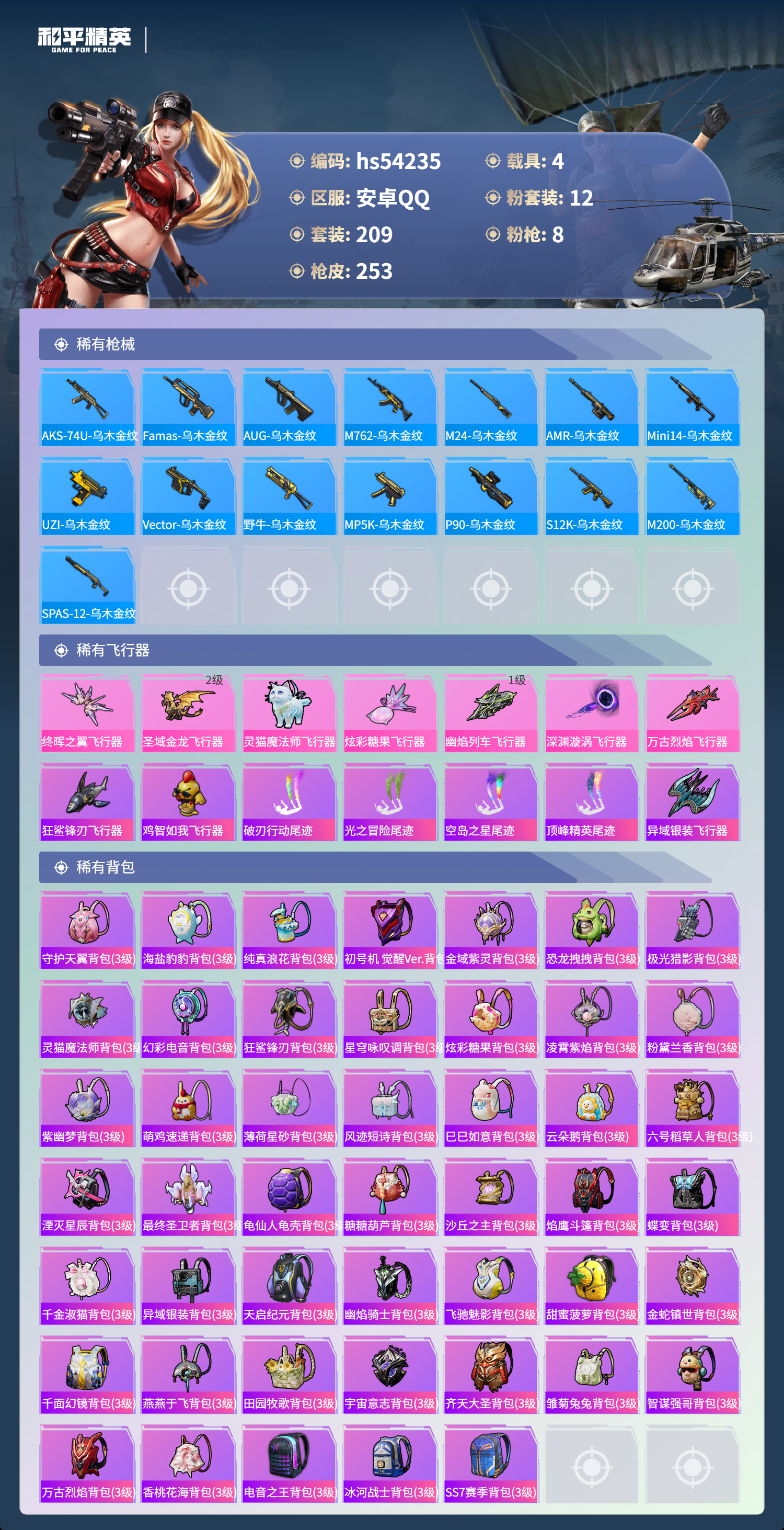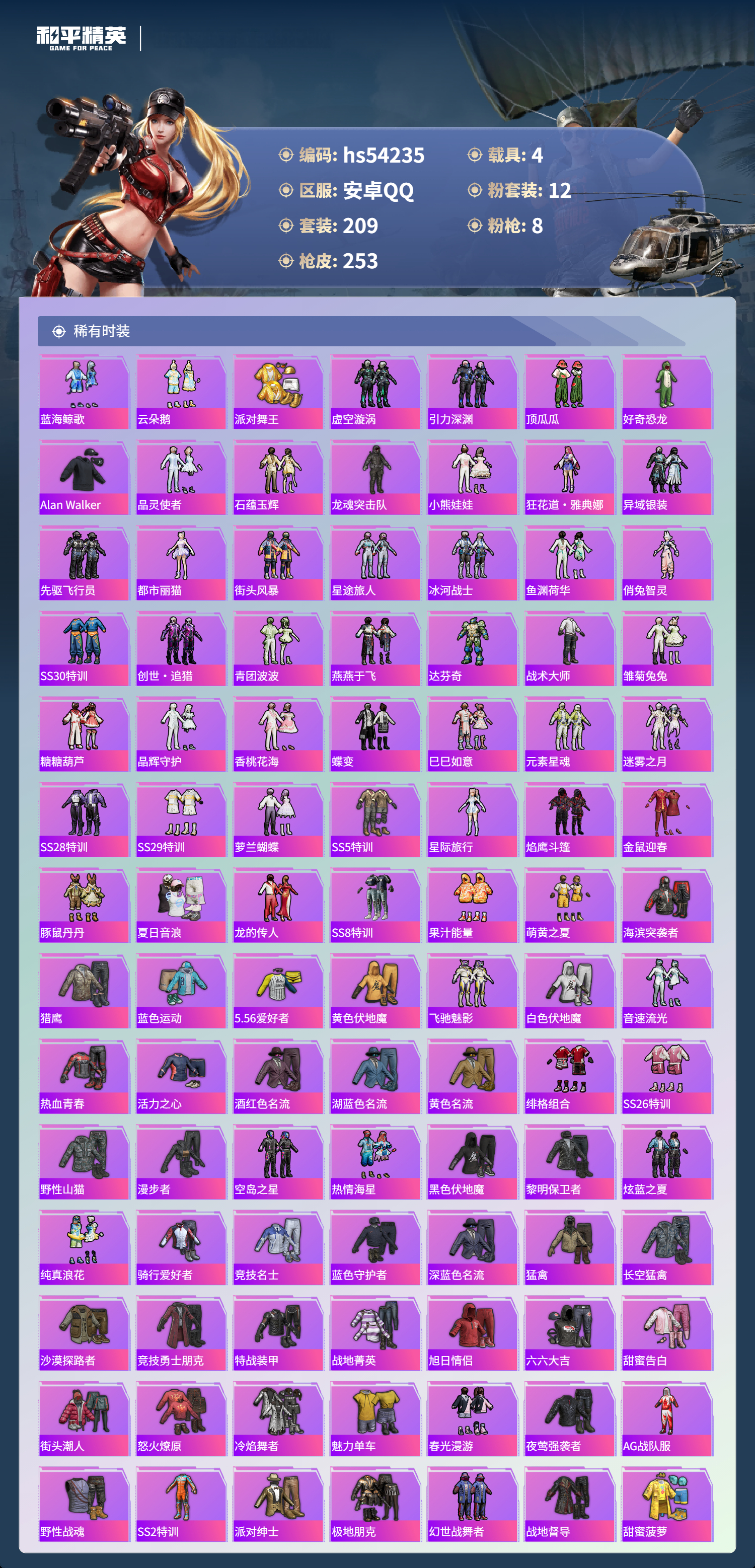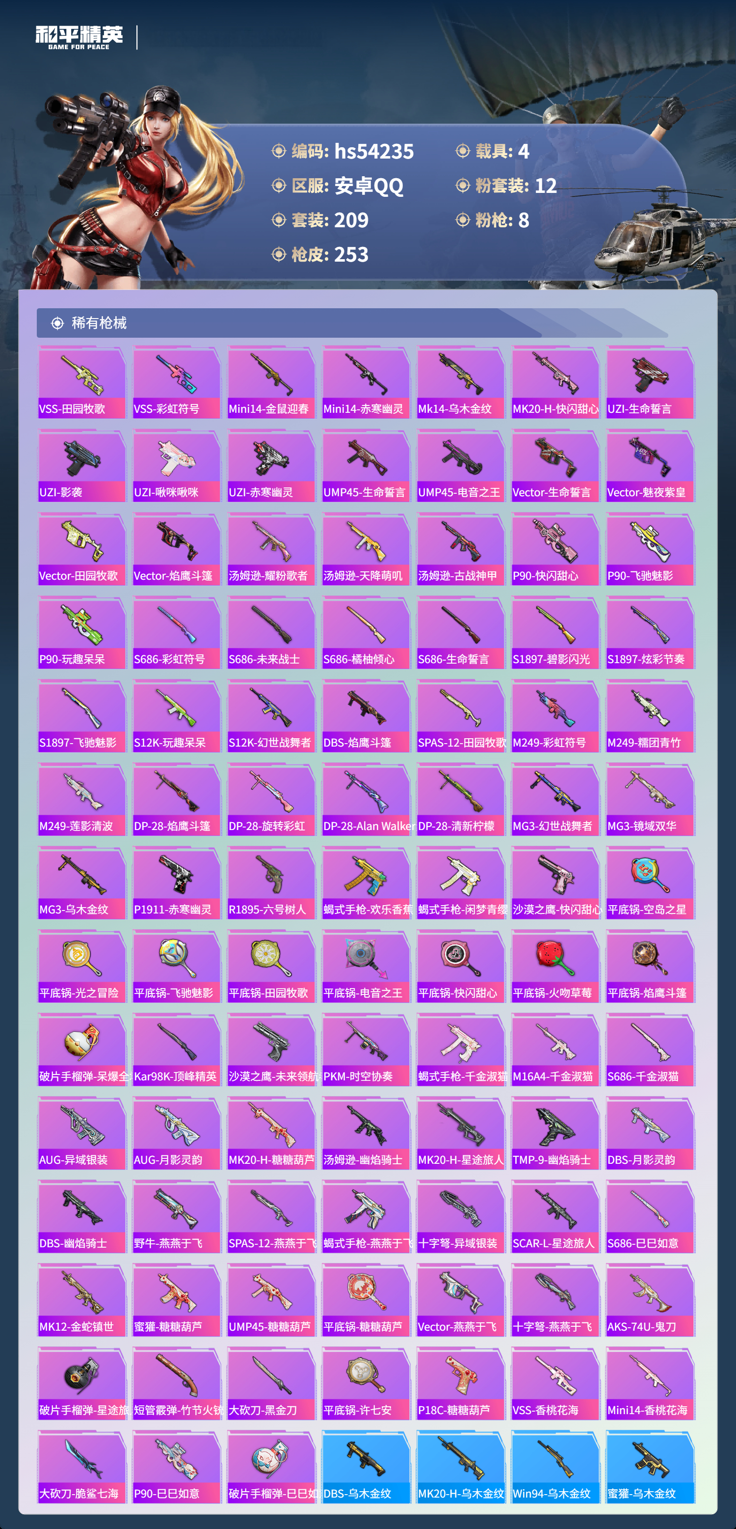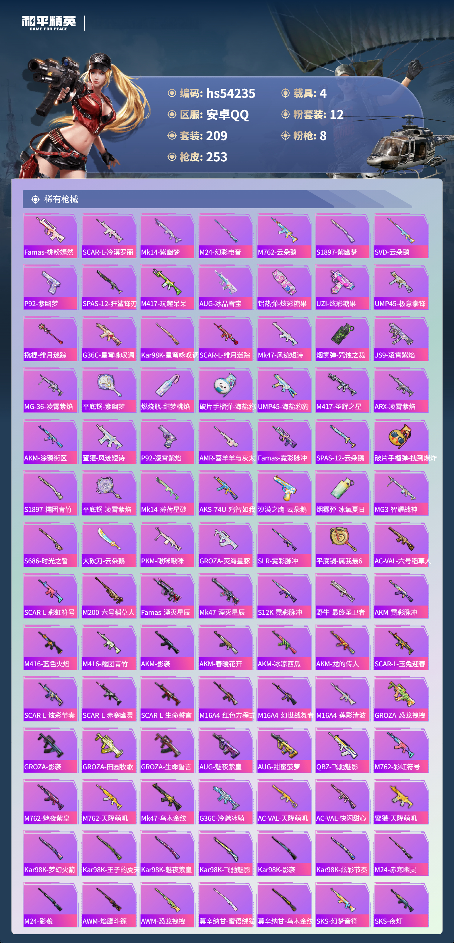 hs54235 安卓手q-13王牌印记-1红装-12粉装-8特效呛-4载具-92833热力值-209套装-253呛皮-5卓越印记-1传奇印记【1红装】幽焰骑士-维塔/4级【12粉装】角色-奇迹舞步 美琪套装-星穹咏叹调角色-初号机 觉醒ver.角色-萨利娅时空协奏·回响角色-凤凰座 一辉角色-伏羲圣卦套装-金丰海韵套装-紫电风暴角色-绯穹魔姬套装-飓风飞鹰角色-绯月迷踪
