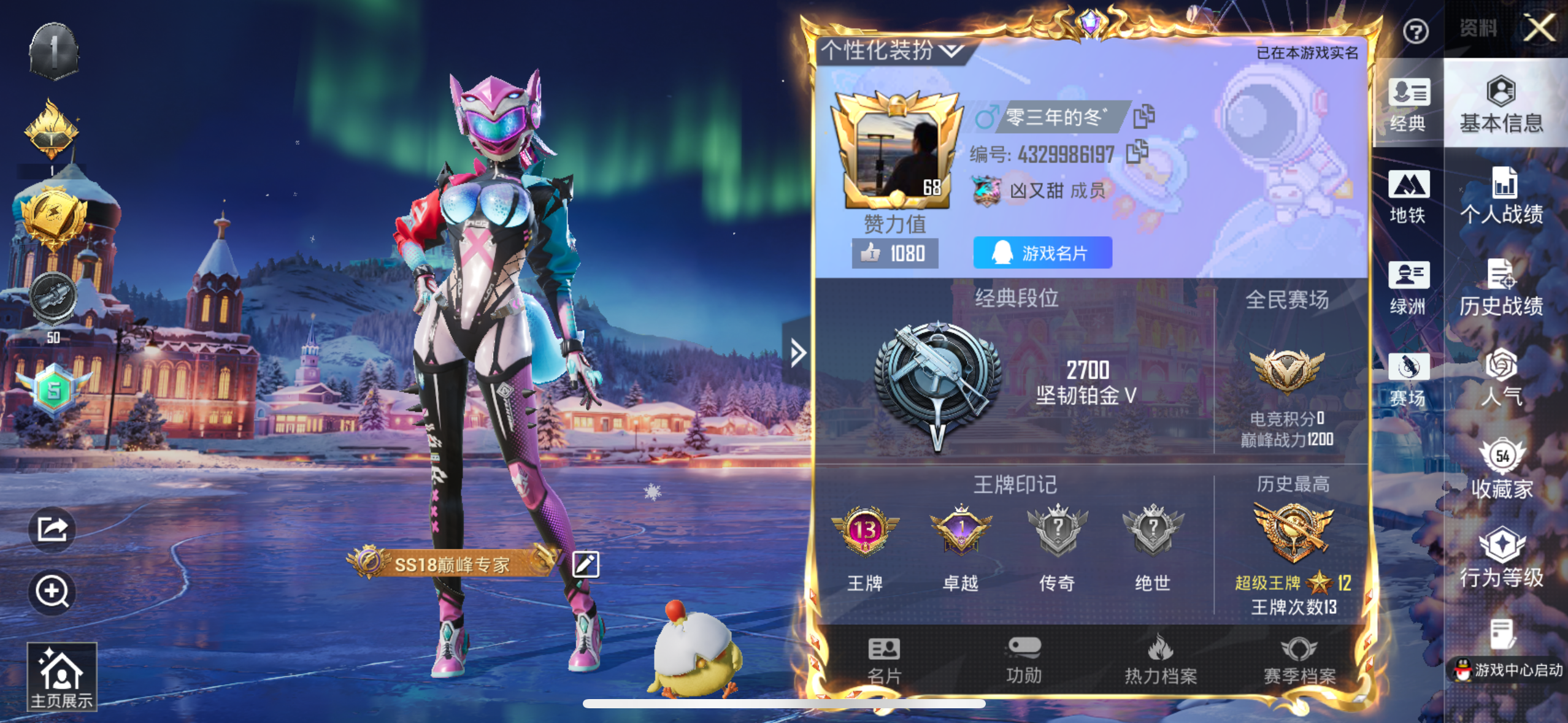 [14863593]和平 可二次 3粉4呛 幻影飞狐 潮汐统领 守护骑士 云魄琉璃 无面战甲 憨乐熊二 软萌银虎 雪山精英 金耀舞者 amr智耀战神 莫辛纳甘未来领航者 满级dp28豹影疾电 满级98k巳巳如意 满级scr镭射皇者淘汰盒子 满级akm原初圣火淘汰盒子 实名: 可修改 时装数: 538 呛械数: 186 战备数: 142 热门装扮: 守护骑士潮汐统领软萌银虎幻影飞狐 稀有呛皮: 莫辛纳甘-未来领航者kar98k-巳巳如意amr-智耀战神dp-28-豹影疾电