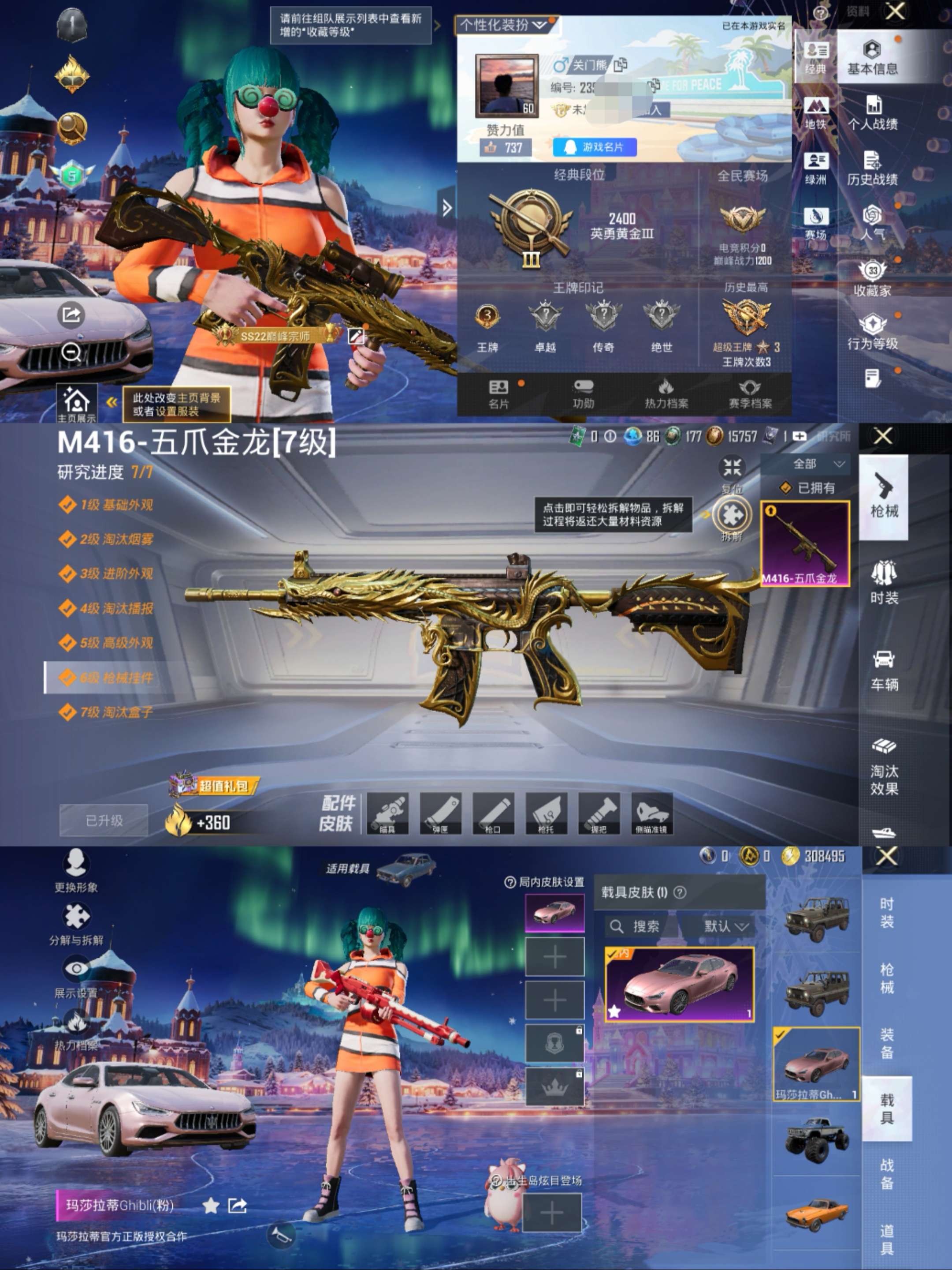 "h6532身法素材号 有二次 安卓q-段位黄金 3印记 61套装82呛皮 【1载具】 玛莎拉蒂ghibli粉 【1特效呛】 m416-五爪金龙 7级 【热门】 深海小丑鱼 小丑红鼻头 小丑鱼 浪漫波比 折纸暴龙 飞驰魅影 星光纪元 雪山精英