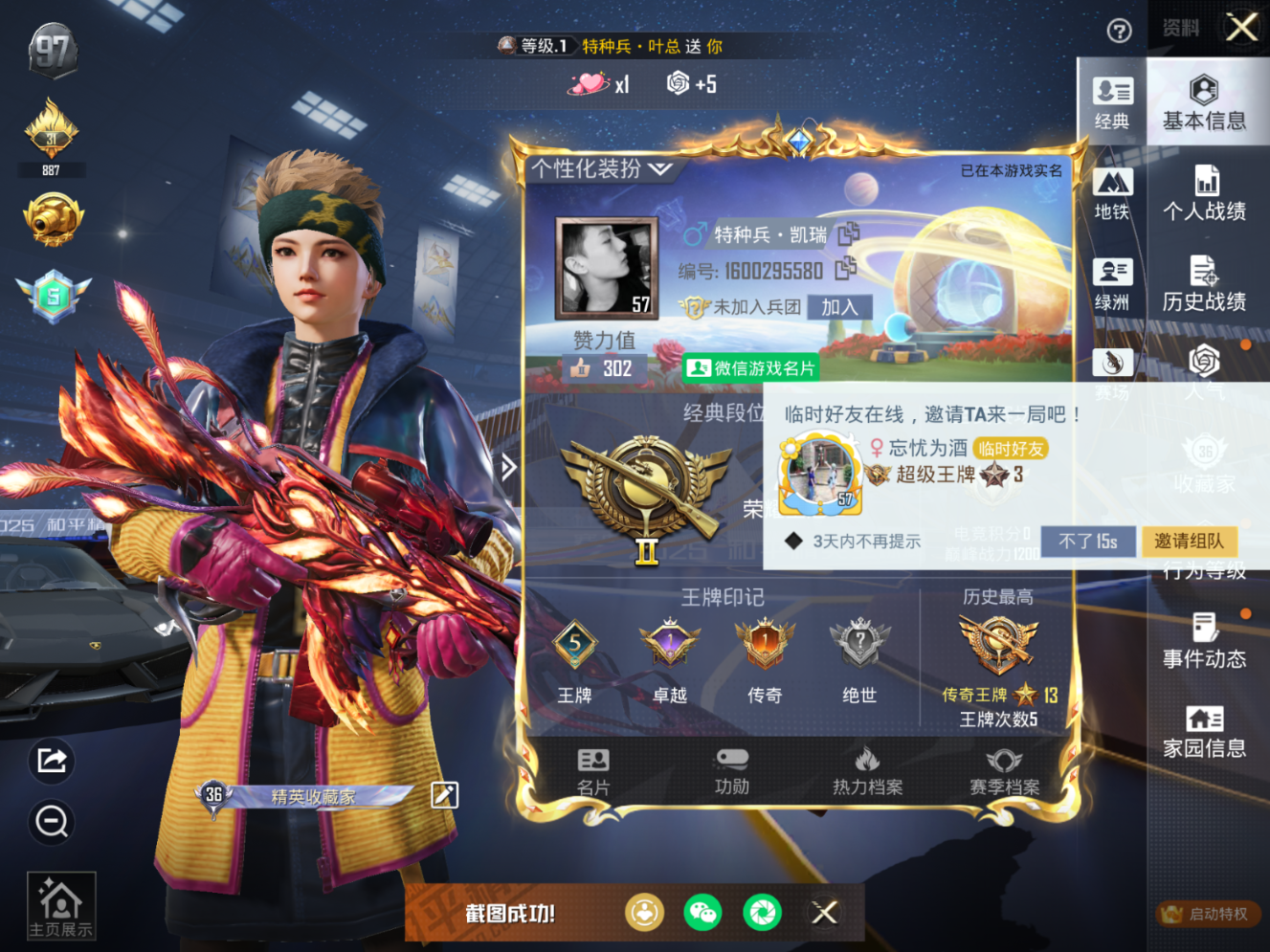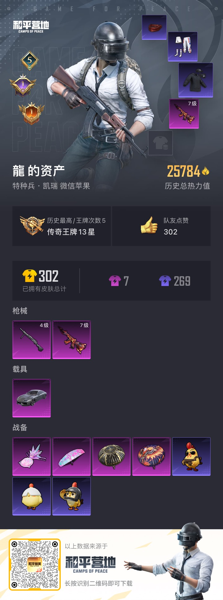 2322711-1载具-58套装-81呛皮-苹果v-1稀有1载具2特效呛5印记【1稀有】 浪漫天命 【1载具】 兰博轿车灰色 【2特效呛】 dp-28-豹影疾电 4级 m416-风花雪月 7级 【9热门】 雪山精英 暗影哥特 团圆交子 瑞龙福将 豚鼠丹丹 狂沙舞者 m762-瑞龙福将 m24-奇异狩猎者 s686-奇异狩猎者 营地id: