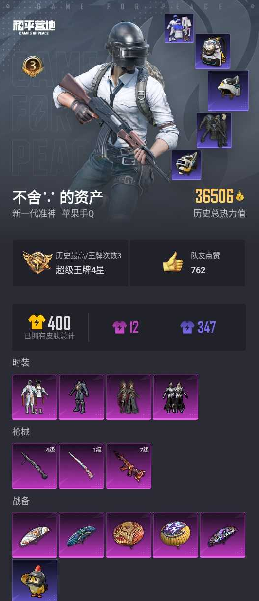 【和平精英】【lyhp18484】4粉3特效呛 都市猎人 智能音符 满级m4风花雪月 猫包 4粉装,3特效呛,0载具,历史最高段位:超级王牌4星 王牌印记3次 热力值:36506,84套装,119呛械,115装备,61战备;套装:套装-深渊皇后,套装-智能音符,套装-骨龙祭渊,角色-复仇流浪者,套装-特训学院,套装-青年教官,套装-白色伏地魔,套装-黑色伏地魔,套装-竞技名士,套装-深蓝色名流,套装-湖蓝色名流,套装-长空猛禽,套装-漫步者,套装-竞技勇士朋克,套装-六六大吉,套装-都市猎人,套装-刚毅裁决者,套装-浪漫天命,套装-战地菁英,套装-贵族骑装,套装-战地督导,套装-甜蜜告白,套装-滨海假日,套装-鹰眼刺客,套装-冰冻风暴,套装-人气偶像,套装-蓝彩潮人,套装-魅力单车,套装-坚韧舞者,套装-荣耀,套装-雪山精英,套装-摩艾涂鸦,套装-奇趣章鱼,套装-蓝调潮人,套装-呆萌铁蟹,套装-缤纷果语,套装-wifi精灵,套装-疯狂小兔子,套装-深蓝冒险家,套装-迷域探索者,套装-ss5特训,套装-金鼠迎春,套装-北国孤狼,套装-ss6特训,套装-跃动心情,套装-ss7特训,套装-鹤鸣,套装-霓虹街区,套装-ss8特训,套装-智慧之神,套装-人鱼之吻,套装-夏日音浪,套装-ss9特训,套装-特种颜团子,套装-战术大师,套装-ss18特训,套装-ss16特训,套装-暴风机械师,套装-时空追击者,套装-暗夜傀儡,套装-ss17特训,套装-水晶王族,套装-瑞龙福将,套装-团圆交子,套装-冰爽风暴,套装-福星高照,套装-异彩先驱,套装-霓虹极客,套装-空投萌叽,套装-ss19特训,套装-飞驰魅影,套装-音速流光,套装-炫蓝之夏,套装-ss20特训,套装-甜心亚梦,套装-虚音幻奏,套装-柠萌假日,套装-元气发射,套装-ss31特训,套装-巳巳如意,套装-ss32特训,套装-星影赞美诗,套装-ss34特训,套装-薄荷星砂;呛皮:groza-影袭,groza-异彩先驱,groza-乌木金纹,aug-异域银装,aug-乌木金纹,g36c-时空追击者,g36c-暗夜玫瑰,g36c-星穹咏叹调,g36c-乌木金纹,scar-l-红色方程式,scar-l-黄金龙骨,scar-l-炫彩节奏,scar-l-青丘仙客,ac-val-甜心亚梦,7级m416-风花雪月,m416-夜灯,m416-蓝色火焰,m416-红色方程式,m416-糯团青竹,m416-乌木金纹,akm-生命誓言,akm-奇异狩猎者,akm-破晓战魂,akm-霓虹街区,akm-彩虹符号,akm-虎虎生威,akm-乌木金纹,m762-绯红前夜,m762-镭射皇者,m762-瑞龙福将,m762-风花雪月,m762-天降萌叽,m762-乌木金纹,q-飞驰魅影,q-乌木金纹,蜜獾-精灵梦叶罗丽,蜜獾-乌木金纹,m16a4-王子的夏天,m16a4-甜心亚梦,mk47-百万伏特,mk47-乌木金纹,famas-乌木金纹,1级kar98k-巳巳如意,kar98k-红色方程式,kar98k-勇闯险境,kar98k-炫彩节奏,kar98k-电玩视界,kar98k-飞驰魅影,kar98k-乌木金纹,m200-乌木金纹,m24-影袭,m24-奇异狩猎者,m24-众神之王,m24-乌木金纹,win94-瑞龙福将,莫辛纳甘-乌木金纹,mini14-梦幻火箭,mini14-耀粉歌者,mini14-异彩先驱,mini14-乌木金纹,sks-勇闯险境,sks-时空追击者,sks-青丘仙客,sks-未来歌姬,mk14-乌木金纹,slr-众神之王,slr-月影鸳鸯,vect-生命誓言,vect-暗夜玫瑰,vect-乌木金纹,汤姆逊-奇异狩猎者,汤姆逊-勇闯险境,汤姆逊-耀粉歌者,汤姆逊-异彩先驱,汤姆逊-天降萌叽,mp5k-众神之王,mp5k-焰龙焚天,mp5k-异彩先驱,mp5k-乌木金纹,aks-74u-乌木金纹,uzi-影袭,uzi-众神之王,uzi-炫彩节奏,ump45-生命誓言,ump45-时空追击者,p90-飞驰魅影,p90-乌木金纹,野牛-乌木金纹,s1897-百万伏特,s1897-勇闯险境,s1897-飞驰魅影,s1897-荧海星豚,s12k-幻影战神,s12k-瑞龙福将,s12k-乌木金纹,dbs-时空追击者,dbs-甜心亚梦,dbs-乌木金纹,s686-生命誓言,4级dp-28-豹影疾电,dp-28-甜心亚梦,m249-百万伏特,mg3-瑞龙福将,mg3-幻世战舞者,mg3-乌木金纹,p18c-百万伏特,短管霰弹-星穹咏叹调,平底锅-勇闯险境,平底锅-缤纷糖果,平底锅-众神之王,平底锅-时空追击者,平底锅-瑞龙福将,平底锅-空投萌叽,平底锅-异彩先驱,平底锅-飞驰魅影,平底锅-甜心亚梦,撬棍-环太平洋,破片手留单-萌趣颜团子,十子怒-异域银装; 详情看图