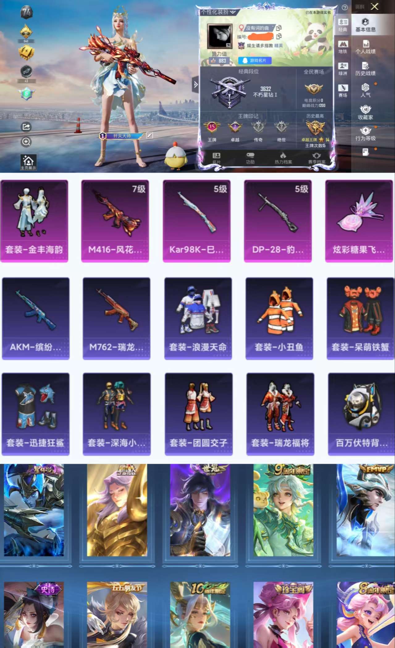0载具-105套装-159呛皮-hx8495【吃鸡王者连体号-1粉装2稀有3特效呛-7级m416-风花雪月-深海小丑鱼-王者118皮肤5传说】q等级35(2太阳)(吃鸡王者)一体号118皮肤5传说26史诗35限定安卓q-2稀有1粉装3特效呛9热门105套装159呛皮 40826热力值 15印记 历史卓越王牌14星 【2稀有】 akm-缤纷海域 浪漫天命 【1粉装】 金丰海韵 【3特效呛】 kar98k-巳