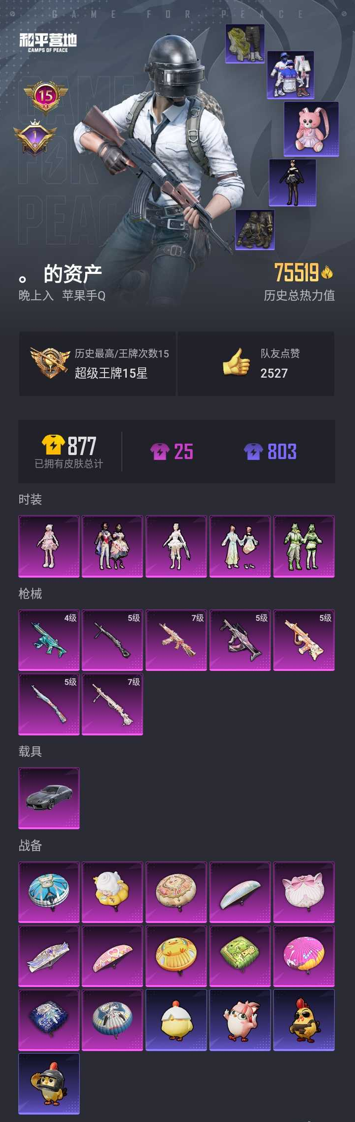 【和平精英】【lyhp18509】高印记 7w热力值 5粉装7特效呛1载具 羊梦糖心 千金淑猫 狂沙舞者 金羽特工 粉熊背包 满级aks74u星穹咏叹调 满级dp-28千金淑猫 兰博基尼 5粉装,7特效呛,1载具,历史最高段位:超级王牌15星 王牌印记15次 热力值:75519,179套装,242呛械,288装备,137战备;套装:套装-碧影闪光,套装-莲影清波,角色-千金淑猫,套装-星穹咏叹调,角色-羊梦糖心,套装-特训学院,套装-猎鹰,套装-青年教官,套装-橘黑制服,套装-红色运动,套装-黄色运动,套装-蓝色运动,套装-黄色伏地魔,套装-白色伏地魔,套装-黑色伏地魔,套装-骑行爱好者,套装-竞技名士,套装-深蓝色名流,套装-酒红色名流,套装-湖蓝色名流,套装-黄色名流,套装-猛禽,套装-长空猛禽,套装-漫步者,套装-蓝色守护者,套装-海岛探路者,套装-旭日情侣,套装-冷焰舞者,套装-灼焰舞者,套装-浪漫天命,套装-特战装甲,套装-战地菁英,套装-战地督导,套装-特殊使命,套装-春日漫步,套装-鹰眼刺客,套装-冰冻风暴,套装-完美偶像,套装-人气偶像,套装-幻影武者,套装-街头潮人,套装-蓝彩潮人,套装-怒火燎原,套装-魅力单车,套装-绮丽涂鸦,套装-耀眼新星,套装-竞技达人朋克,套装-都市漫游者,套装-野性战心,套装-金羽特工,套装-狂沙舞者,套装-破晓战魂,套装-都市魅力,套装-荣耀,套装-热血青春,套装-沙漠兵团,套装-酷潮明星,套装-幻世战舞者,套装-金耀舞者,套装-血色贵族,套装-甜蜜熊情侣,套装-青涩时光,套装-缤纷果语,套装-风暴特警,套装-冰川特警,套装-元素星魂,套装-极速红龙,套装-wifi精灵,套装-麻辣教官,套装-破蛋小黄鸡,套装-疯狂小兔子,套装-鹤鸣,套装-霓虹街区,套装-众神之王,套装-白熊同盟,套装-萌黄之夏,套装-夏日音浪,套装-顽皮玉兔,套装-牛气满满,套装-白糯汤圆,套装-萌趣颜团子,套装-战术大师,套装-ss12特训,套装-牛气冲天,套装-ss18特训,套装-镭射皇者,套装-银白舞王,套装-耀粉歌者,套装-迅捷之星,套装-治愈之星,套装-科技之星,套装-ss13特训,套装-冰爽海盐,套装-ss14特训,套装-吉莉礼服,套装-ss15特训,套装-ss16特训,套装-暗夜傀儡,套装-ss17特训,套装-瑞龙福将,套装-团圆交子,套装-福星高照,套装-虎虎生威吉莉,角色-军刀雅典娜,套装-缤纷焰火,套装-异彩先驱,套装-霓虹极客,套装-空投萌叽,套装-ss19特训,套装-飞驰魅影,套装-音速流光,套装-炫蓝之夏,套装-ss20特训,套装-ss21特训,套装-萌趣咩咩,套装-娇憨猪猪,套装-俏皮奶喵,套装-玉兔迎春,套装-ss22特训,套装-田园牧歌,套装-轻风白浪,套装-光之冒险,套装-绯格组合,套装-ss23特训,套装-香榭午后,套装-王牌教练,套装-柠萌假日,套装-ss24特训,套装-龟仙人,套装-涂山之恋,套装-ss25特训,套装-惊鸿侠骨,套装-锦衣飞扬,套装-晨曦薄雾,套装-龙的传人,套装-ss26特训,套装-快闪甜心,套装-春光漫游,套装-空岛之星,套装-云魄琉璃,套装-贝斯之夜,玩偶服-菲菲,套装-ss27特训,套装-恋语绒绒,套装-老实芭蕉,套装-街头风暴,角色-摩登魅猫,套装-ss30特训,套装-青团波波,套装-棉花软糖,套装-糖糖葫芦,套装-ss31特训,套装-鱼渊荷华,套装-石蕴玉辉,套装-燕燕于飞,套装-紫幽梦,套装-粉恋花,套装-ss33特训,套装-云朵鹅,套装-巳巳如意,套装-ss32特训,套装-彩虹兔,套装-蓝冰羽,套装-雪绒豹,套装-大橘大利,套装-星渊小夜曲,套装-蜜露汐语,套装-星影赞美诗,玩偶服-喜羊羊,玩偶服-美羊羊,套装-ss34特训,套装-擎苍青焰,套装-朱霞炽焰,套装-凌霄紫焰,套装-ss35特训,套装-午间小调,套装-秘语星愿,套装-风迹短诗,套装-萌鸡速递;呛皮:4级蜜獾-异瞳寒姬,蜜獾-娇憨猪猪,蜜獾-垂柳戏鸭,蜜獾-天降萌叽,蜜獾-糖糖葫芦,蜜獾-风迹短诗,蜜獾-乌木金纹,m16a4-蓝色火焰,m16a4-红色方程式,m16a4-夜灯,m16a4-幻世战舞者,m16a4-莲影清波,m16a4-千金淑猫,m416-蓝色火焰,m416-绯红前夜,m416-红色方程式,m416-滑板小狐,m416-月影鸳鸯,m416-糯团青竹,akm-灼热熔岩,akm-生命誓言,akm-影袭,akm-破晓战魂,akm-霓虹街区,akm-夜灯,akm-彩虹符号,akm-萌趣颜团子,akm-虎虎生威,akm-墨染幽兰,akm-龙的传人,akm-霓彩脉冲,scar-l-红色方程式,scar-l-黄金龙骨,scar-l-未来战士,scar-l-夜灯,scar-l-炫彩节奏,scar-l-暗夜玫瑰,scar-l-彩虹符号,scar-l-玉兔迎春,scar-l-星途旅人,5级groza-镜光银凌,groza-影袭,groza-黑色刀锋,groza-治愈之星,groza-异彩先驱,groza-恐龙拽拽,groza-田园牧歌,g36c-暗夜玫瑰,g36c-星穹咏叹调,g36c-乌木金纹,ac-val-乌木金纹,ac-val-天降萌叽,ac-val-闲梦青缨,ac-val-快闪甜心,famas-霓彩脉冲,famas-乌木金纹,m762-绯红前夜,m762-奇异狩猎者,m762-牛气冲天,m762-镭射皇者,m762-瑞龙福将,m762-彩虹符号,m762-天降萌叽,m762-萌物绒绒,m762-云朵鹅,mk47-百万伏特,mk47-乌木金纹,mk47-风迹短诗,5级aug-暖羊咩咩,aug-耀粉歌者,aug-青春冒险家,aug-天降萌叽,aug-异域银装,q-彩虹符号,q-电玩视界,q-飞驰魅影,arx-凌霄紫焰,5级kar98k-巳巳如意,kar98k-红色方程式,kar98k-王子的夏天,kar98k-影袭,kar98k-梦幻火箭,kar98k-彩虹符号,kar98k-欢乐麻酱,kar98k-炫彩节奏,kar98k-飞驰魅影,kar98k-顶峰精英,kar98k-星穹咏叹调,kar98k-乌木金纹,m24-影袭,m24-治愈之星,m24-乌木金纹,amr-暗夜行者,amr-喜羊羊与灰太狼,amr-乌木金纹,svd-冷漠罗丽,svd-云朵鹅,svd-霓彩脉冲,win94-瑞龙福将,win94-乌木金纹,m200-惊鸿侠骨,m200-乌木金纹,莫辛纳甘-乌木金纹,莫辛纳甘-风迹短诗,awm-恐龙拽拽,awm-乌木金纹,vss-镭射皇者,vss-田园牧歌,vss-彩虹符号,vss-香桃花海,vss-乌木金纹,mk20-h-快闪甜心,mk20