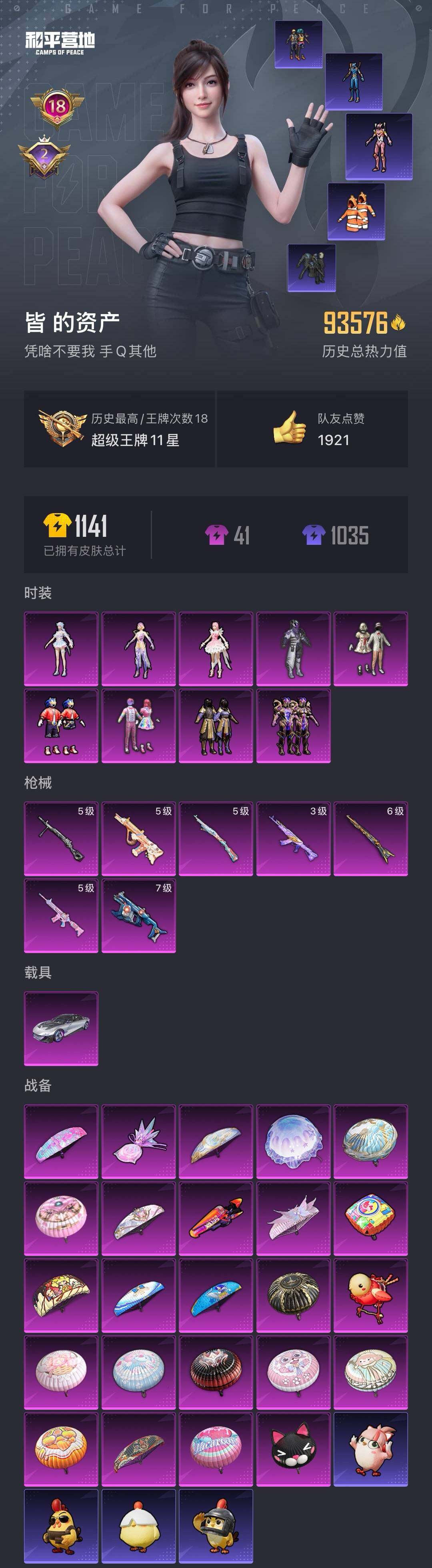 [14888519]【编号54241 可秒换绑】【顶级身法账号!粉装升级呛也够多,喜欢的宝宝速来下单!!】安卓 手q-9粉装-7特效呛-1载具-3粉色飞行器-93576热力值-18王牌印记-240套装-311呛皮 【热门品类】:粉装-音爆索尼克,套装-浪漫天命,套装-都市猎人,套装-深海小丑鱼,套装-小丑鱼,套装-胖达团团,旭日初心兜帽大衣,套装-龟仙人,套装-粉红小猪,角色-8号机,角色-mark.06 【粉色套装】:粉装-幻影战神,粉装-宝贝奶油派,粉装-天使彩虹糖,粉装-暗星紫秘,粉装-朗月武圣,粉装-音爆索尼克,角色-美雪,角色-金域紫灵,角色-荧海星豚 【粉色呛皮等级】:akm-魔法神域三级,m416-电玩时刻五级,aug-暖羊咩咩五级,vect-环太平洋七级,kar98k-创世·救赎六级,kar98k-巳巳如意五级,dp-28-豹影疾电五级 【粉色载具】:星河领航(磐石银) 【粉色呛皮】:akm-魔法神域,m416-电玩时刻,aug-暖羊咩咩,vect-环太平洋,kar98k-创世·救赎,kar98k-巳巳如意,dp-28-豹影疾电 【粉色飞行器】:歌者泠鸢飞行器,霓虹漫游飞行器 【粉色降落伞】:甜心宝贝降落伞,神秘黑猫降落伞,马卡龙降落伞,葫芦兄弟降落伞,橘柚倾心降落伞,筑梦精灵降落伞,甜梦小狐降落伞,炙焰牛王降落伞,彩虹甜喵降落伞,冰川粉黛降落伞,暗夜鎏金降落伞,音爆索尼克降落伞,未来歌姬降落伞,炫光之旅降落伞,江南烟雨降落伞,精灵梦叶罗丽降落伞,守护天翼降落伞,金丰海韵降落伞,月影灵韵降落伞 【稀有套装】:套装-龟仙人,套装-巳巳如意,套装-雏菊兔兔,套装-萝兰蝴蝶,角色-米开朗基罗,套装-糖糖葫芦,套装-青团波波,套装-棉花软糖,角色-临安公主,角色-俏兔智灵,套装-燕燕于飞,套装-鱼渊荷华,套装-云朵鹅,套装-雪绒豹,角色-夜瞳黯灵,套装-朱霞炽焰,套装-凌霄紫焰,套装-炫彩糖果 【稀有呛皮】:aug-冰晶雪宝,akm-冰凉西瓜,akm-墨染幽兰,akm-夜灯,akm-奇异狩猎者,akm-彩虹符号,akm-影袭,akm-江南烟雨,akm-灼热熔岩,akm-生命誓言,akm-破晓战魂,akm-萌趣颜团子,akm-虎虎生威,akm-霓虹街区,akm-龙的传人,m16a4-幻世战舞者,m16a4-甜心亚梦,m16a4-莲影清波,sc