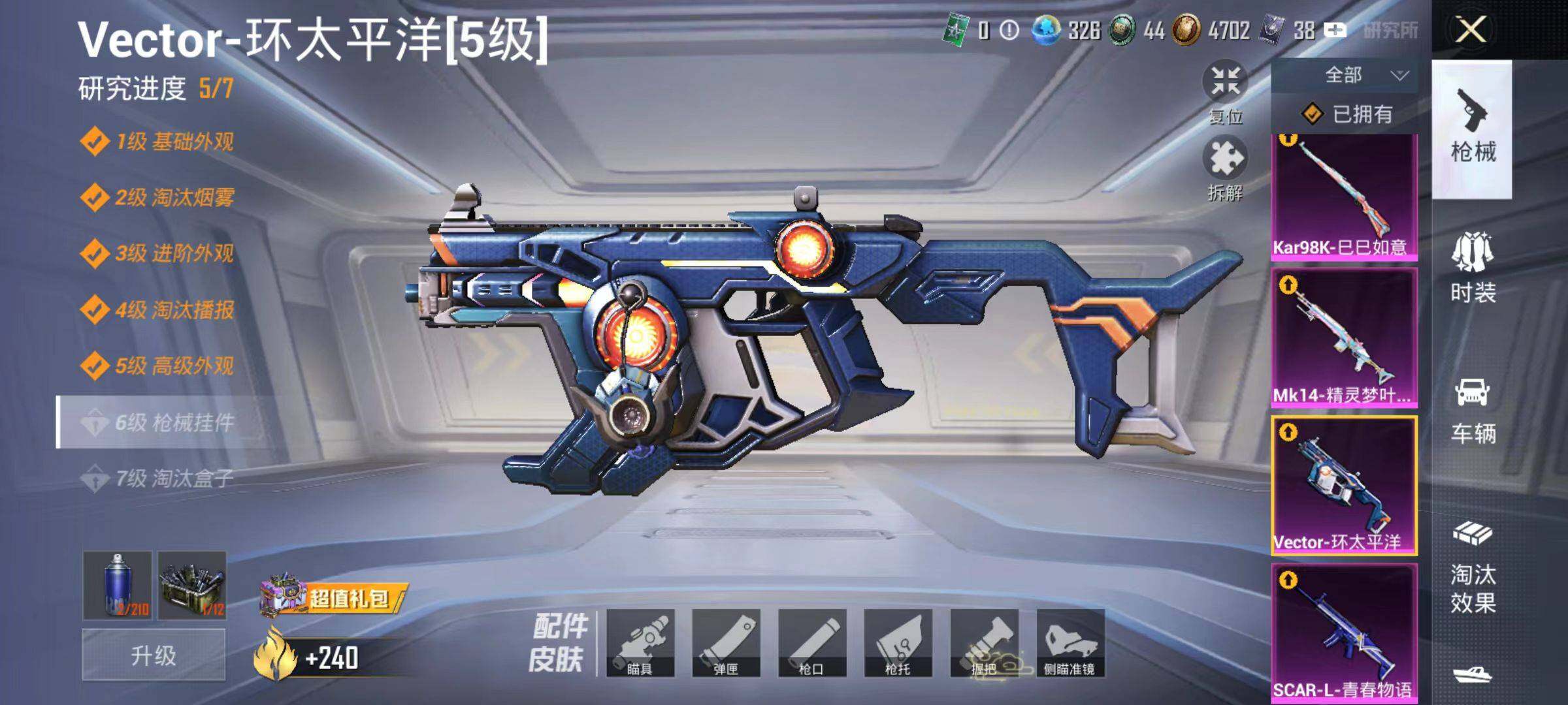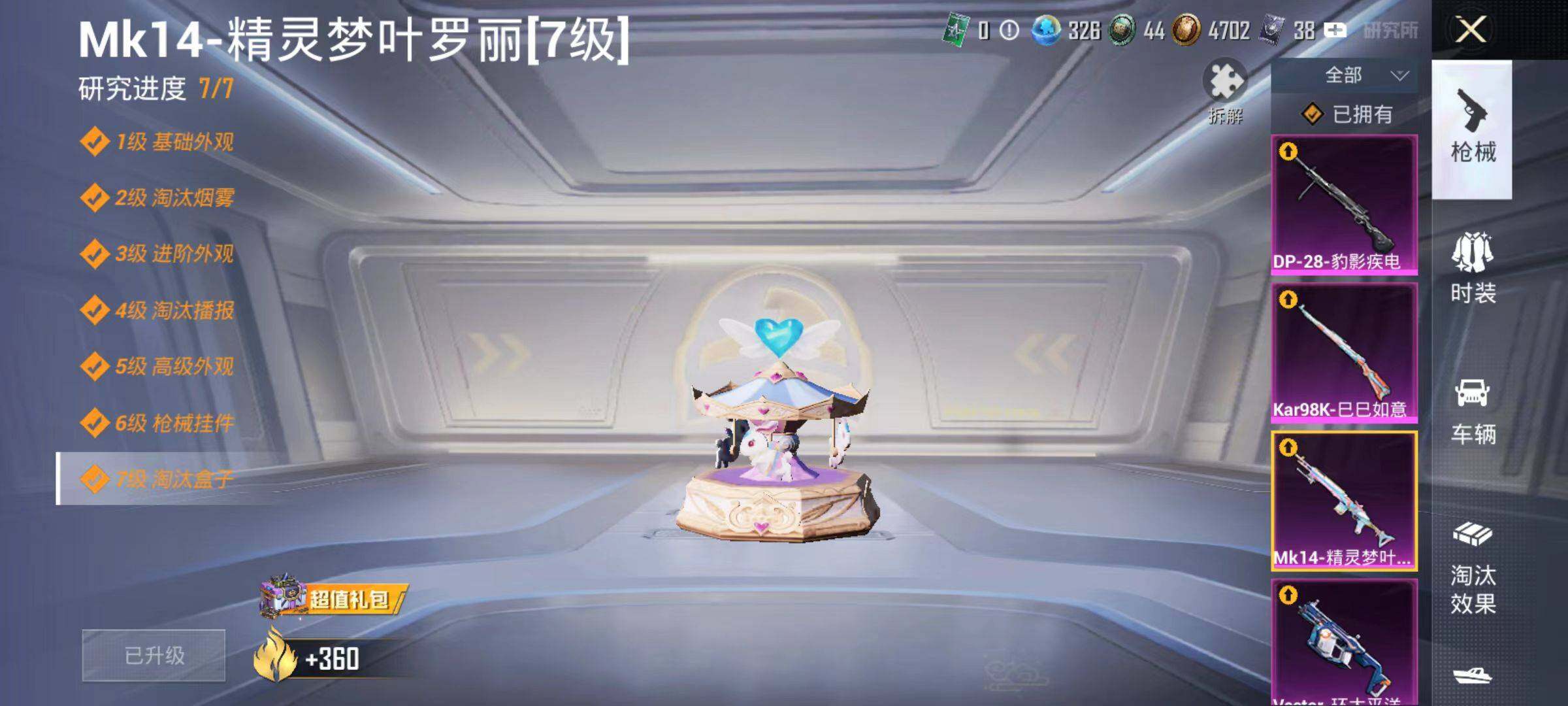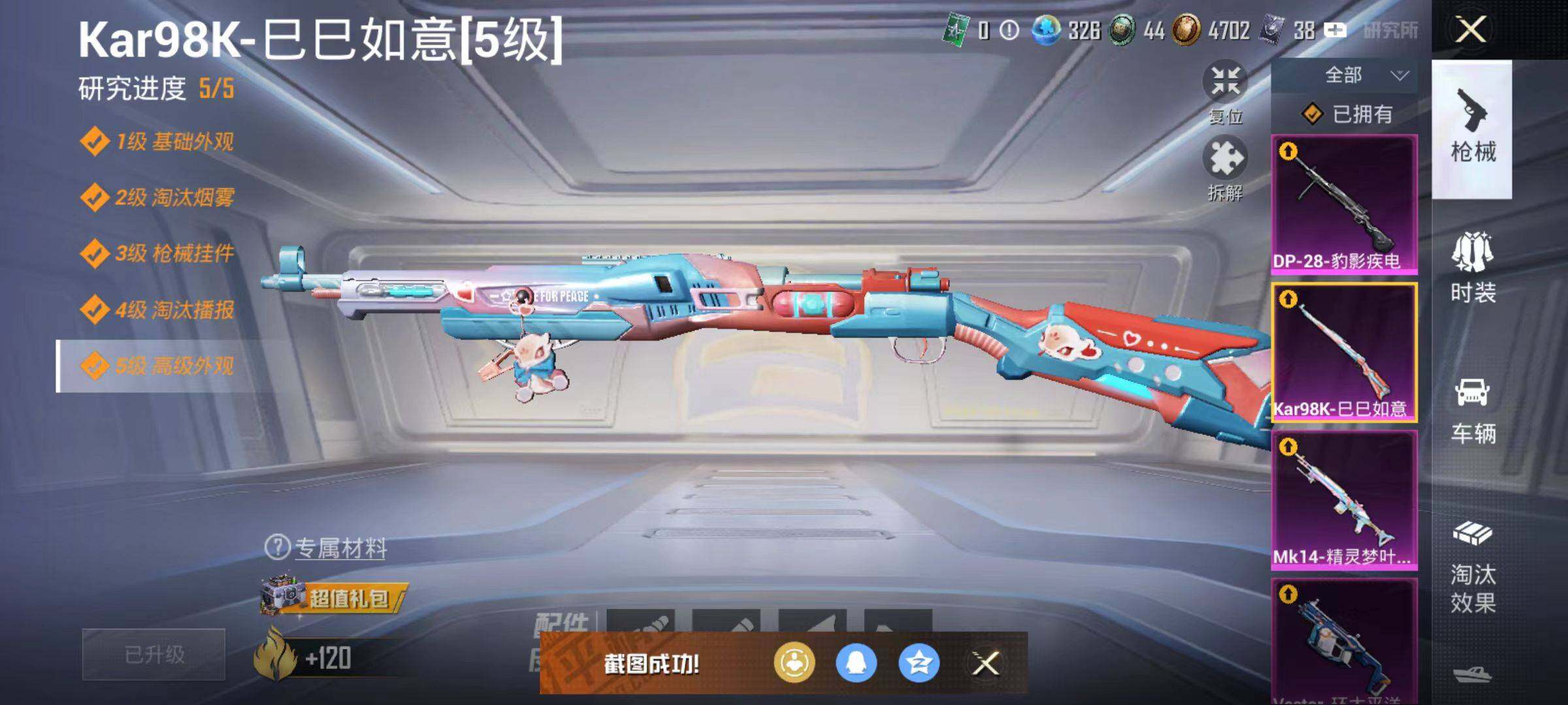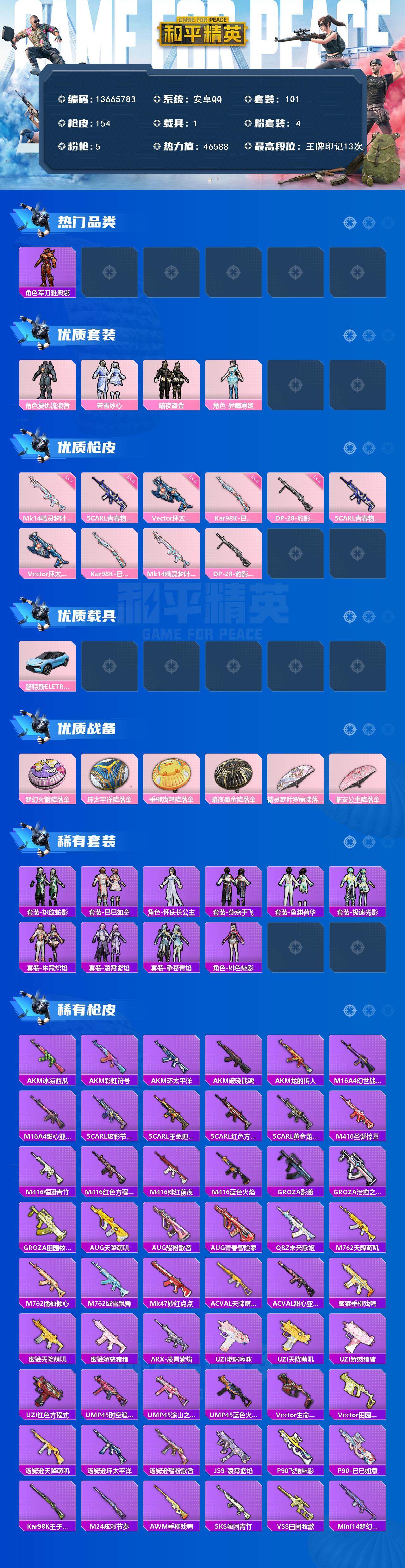6194-4粉装-5特效呛-1载具-0粉色飞行器-46588热力值-13王牌印记-101套装-154呛皮 【热门品类】:角色-军刀雅典娜,套装-龟仙人 【粉色套装】:角色-复仇流浪者,粉装-霁雪冰心,粉装-暗夜鎏金,角色-异瞳寒姬 【粉色呛皮等级】:scar-l-青春物语五级,vect-