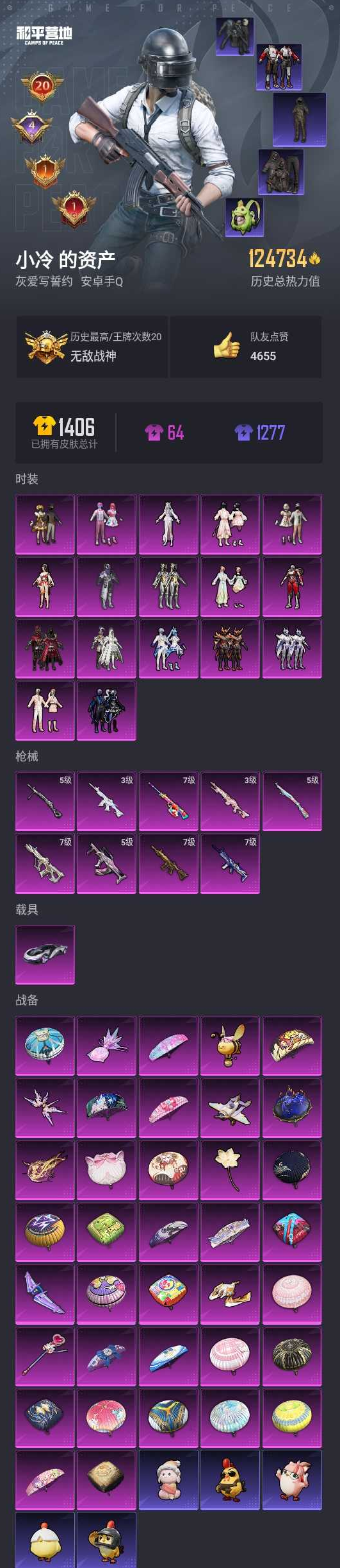 【和平精英】【lyhp18548】无敌战神框 20印记1绝世12w热力值 17粉9特效呛1载 巧克力三姐妹 都市猎人 暗夜之虎 第五大道 未来歌姬 追光服 冷酷者 多呛型 满级aug许七安 满级m4金龙 满级scar-l青春 m4女娲 mk12盛世 时空跃影 猫包 地铁满天赋 17粉装,9特效呛,1载具,历史最高段位:无敌战神 王牌印记20次 热力值:124734,257套装,384呛械,528装备,203战备;套装:套装-幻影战神,套装-甜心巧克力,套装-宝贝奶油派,套装-天使彩虹糖,套装-冰霜白皇,套装-炙焰红王,套装-绚金战神,套装-暗夜玫瑰,套装-赤焰黑爵,套装-紫电风暴,套装-第五大道,角色-阿尔茜,套装-莲影清波,套装-未来歌姬,套装-桃粉嫣然,角色-狂花道·不知火舞,角色-冷漠罗丽,套装-特训学院,套装-黄色运动,套装-黄色伏地魔,套装-白色伏地魔,套装-黑色伏地魔,套装-冰川格斗者,套装-竞技名士,套装-猛禽,套装-长空猛禽,套装-漫步者,套装-竞技勇士朋克,套装-黎明保卫者,套装-蓝色守护者,套装-海岛探路者,套装-雨林探路者,套装-旭日情侣,套装-冷焰舞者,套装-都市猎人,套装-水银刺客,套装-浪漫天命,套装-战地督导,套装-特殊使命,套装-活力之心,套装-春日漫步,套装-滨海假日,套装-沙漠毒蛇,套装-鹰眼刺客,套装-冰冻风暴,套装-冷酷挑战者,套装-完美偶像,套装-幻影武者,套装-热血骑手,套装-摇滚战魂,套装-摇滚舞王,套装-特战英豪,套装-街头潮人,套装-蓝彩潮人,套装-怒火燎原,套装-魅力单车,套装-绮丽涂鸦,套装-狂战萌兔,套装-坚韧舞者,套装-野性战心,套装-金羽特工,套装-荣耀,套装-热血青春,套装-沙漠兵团,套装-酷潮明星,套装-幻世战舞者,套装-机械哨兵,套装-暗影哥特,套装-弄潮海豚,套装-迅捷狂鲨,套装-夏日倾情,套装-甜蜜熊情侣,套装-青涩时光,套装-滨海厨神,套装-龙魂突击队,套装-冰川特警,套装-元素星魂,套装-幻影公爵,套装-忍者信条,套装-极速红龙,套装-格斗先锋,套装-海上生明月,套装-麻辣教官,套装-暗夜之虎,套装-小丑鱼,套装-东方飞龙,套装-破蛋小黄鸡,套装-深蓝冒险家,套装-迷域探索者,套装-北国孤狼,套装-鹤鸣,套装-霓虹街区,套装-ss10特训,套装-ss8特训,套装-萌黄之夏,套装-pel躁动竞梦者,套装-夏日音浪,套装-ss9特训,套装-ag战队服,套装-牛气满满,套装-ss11特训,套装-青春冒险家,套装-潮流游乐家,套装-萌趣颜团子,套装-特种颜团子,套装-战术大师,套装-ss12特训,套装-牛气冲天,套装-ss18特训,套装-镭射皇者,套装-银白舞王,套装-耀粉歌者,套装-迅捷之星,套装-治愈之星,套装-科技之星,套装-飞行日记,套装-ss13特训,套装-热情海星,套装-纯真浪花,套装-ss14特训,套装-吉莉礼服,套装-星梦畅游,套装-ss15特训,套装-ag追光队服,套装-ss16特训,套装-ss17特训,套装-瑞龙福将,套装-团圆交子,套装-爆裂葡萄,套装-福星高照,套装-豚鼠丹丹,套装-雪兔飞飞,套装-虎虎生威吉莉,角色-军刀雅典娜,套装-异彩先驱,套装-霓虹极客,套装-空投萌叽,套装-ss19特训,套装-飞驰魅影,套装-音速流光,套装-炫蓝之夏,套装-ss20特训,套装-ss21特训,套装-暖心熊熊,套装-萌趣咩咩,套装-娇憨猪猪,套装-俏皮奶喵,套装-酸甜橘柚,套装-玉兔迎春,套装-ss22特训,套装-和煦暖阳,套装-田园牧歌,套装-轻风白浪,套装-绚烂繁星,套装-熠彩粉晶,套装-光之冒险,套装-绯格组合,套装-ss23特训,套装-香榭午后,套装-甜梦熊熊,套装-神气柴柴,套装-懵萌河马,套装-灵蜜圈圈,套装-妙红点点,套装-幻彩翩翩,套装-王牌教练,套装-柠萌假日,套装-青玉碎影,套装-ss24特训,套装-龟仙人,套装-涂山之恋,套装-ss25特训,套装-惊鸿侠骨,套装-锦衣飞扬,套装-云霞荷露,套装-晨曦薄雾,套装-元气发射,套装-香桃花海,套装-深海梦境,套装-果汁能量,套装-龙的传人,套装-冰河战士,套装-ss26特训,套装-快闪甜心,套装-春光漫游,套装-空岛之星,角色-星际旅行,角色-舰行太空,套装-彩霞狙击,套装-贝斯之夜,玩偶服-菲菲,套装-焰鹰斗篷,套装-幽夜迷踪,套装-幻羽潜行,套装-ss27特训,套装-恋语绒绒,套装-老实芭蕉,套装-ss28特训,角色-听雨铃兰,角色-迎夏光舞,角色-达芬奇,角色-极地流光,角色-银尘,角色-mark.06,套装-街头风暴,套装-海盐绵绵冰,套装-蝶变,套装-小熊娃娃,套装-ss29特训,套装-雏菊兔兔,角色-狂花道·娜可露露,套装-萝兰蝴蝶,角色-绯色魅影,套装-异域银装,角色-摩登魅猫,角色-蜜桃派对,角色-都市丽猫,套装-星途旅人,套装-闪电轻猫,套装-ss30特训,套装-青团波波,套装-棉花软糖,套装-糖糖葫芦,套装-裁决天象,套装-ss31特训,套装-鱼渊荷华,套装-燕燕于飞,套装-智谋强哥,角色-瑰梦爱神,套装-紫幽梦,套装-粉恋花,套装-ss33特训,角色-猎影月神,套装-云朵鹅,套装-巳巳如意,套装-ss32特训,套装-彩虹兔,套装-蓝冰羽,套装-顶瓜瓜,套装-雪绒豹,套装-大橘大利,套装-霓虹热舞,套装-蜜露汐语,套装-炫彩糖果,套装-ss34特训,套装-擎苍青焰,套装-朱霞炽焰,角色-申公豹,套装-凌霄紫焰,套装-薄荷星砂,套装-ss35特训,套装-琴音绮想,角色-超感刻度,套装-画境星梦,套装-书海巡游,套装-ss36特训,套装-萌鸡速递;呛皮:akm-影袭,akm-破晓战魂,akm-霓虹街区,akm-夜灯,akm-深山诡影,akm-星之彼岸,akm-彩虹符号,akm-萌趣颜团子,akm-虎虎生威,akm-恐龙拽拽,akm-环太平洋,akm-龙的传人,akm-棋盘冕主,akm-霓彩脉冲,akm-乌木金纹,蜜獾-娇憨猪猪,蜜獾-垂柳戏鸭,蜜獾-天降萌叽,蜜獾-糖糖葫芦,蜜獾-绯穹魔姬,蜜獾-鸡智如我,蜜獾-乌木金纹,mk47-百万伏特,mk47-青春冒险家,