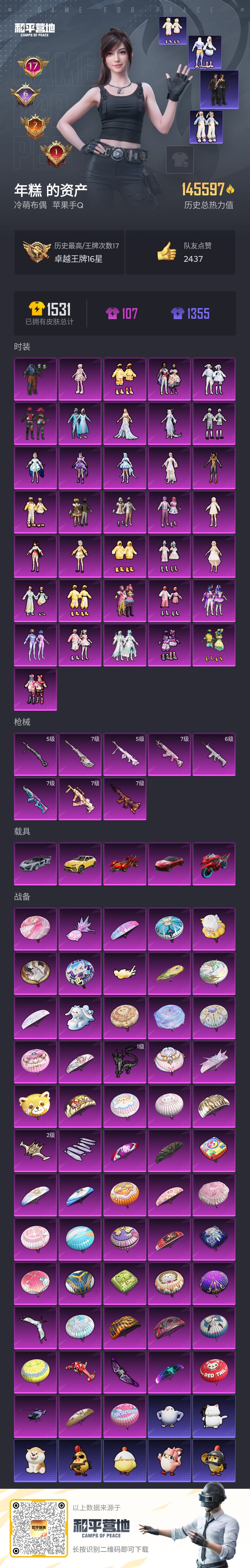 【和平精英】【txhp5229】36粉装,8特效呛,5载具,历史最高段位:卓越王牌16星 王牌印记17次 热力值:145597,308套装,388呛械,567装备,226战备;套装:套装-怪诞乔克,套装-甜心巧克力,套装-宝贝奶油派,套装-天使彩虹糖,套装-雪国幻梦,套装-梦幻火箭,套装-缤纷油彩,套装-放客神游,套装-极致幻想,套装-俏皮狐尾,套装-天之羽翼,套装-香水柠檬,角色-洛天依,角色-零号机款机体服,套装-蓝莓炮弹,套装-岚岚物语,套装-暖熊萌萌,套装-彩虹甜喵,角色-小可学妹,角色-呆萌星弥,角色-白勺歌姬,套装-飒粉甜心,套装-萌物绒绒,套装-莲影清波,角色-小叽联名款,套装-蜜语绒猫,套装-暖暖奶龙,套装-憨憨奶龙,套装-傲傲奶龙,角色-烟云彩露,角色-美琪,角色-严莉莉,角色-智耀战神,角色-幻海仙踪,套装-星穹咏叹调,角色-羊梦糖心,套装-猎鹰,套装-红色运动,套装-黄色运动,套装-蓝色运动,套装-黄色伏地魔,套装-白色伏地魔,套装-黑色伏地魔,套装-骑行爱好者,套装-冰川格斗者,套装-帅气教官,套装-竞技名士,套装-黄色名流,套装-猛禽,套装-迅猛虎鲸,套装-野性山猫,套装-长空猛禽,套装-沙漠雄狮,套装-竞技勇士朋克,套装-黎明保卫者,套装-蓝色守护者,套装-灰色守护者,套装-海岛探路者,套装-雨林探路者,套装-沙漠探路者,套装-旭日情侣,套装-六六大吉,套装-灼焰舞者,套装-浪漫天命,套装-特战装甲,套装-突袭者,套装-青春校园,套装-灰色格斗者,套装-活力之心,套装-战地名士,套装-迎春赐吉,套装-春日漫步,套装-潮流先锋,套装-龙腾端午,套装-燃烧卡路里,套装-滨海假日,套装-人气偶像,套装-暗金炫舞,套装-蓝彩潮人,套装-神秘领域,套装-怒火燎原,套装-魅力单车,套装-绮丽涂鸦,套装-耀眼新星,套装-竞技达人朋克,套装-朋克治安官,套装-野性战心,套装-野性战魂,套装-破晓战魂,套装-荣耀,套装-风行保卫者,套装-热血青春,套装-沙漠兵团,套装-雪山精英,套装-极地朋克,套装-幻世战舞者,套装-蓝调潮人,套装-甜蜜熊情侣,套装-青涩时光,套装-缤纷果语,套装-滨海厨神,套装-alan walker,套装-龙魂突击队,套装-冰川特警,套装-元素星魂,套装-格斗先锋,套装-麻辣教官,套装-天网终结者,套装-粉红小猪,套装-破蛋小黄鸡,套装-疯狂小兔子,套装-阳光火鸡,套装-军械专家,套装-北国孤狼,套装-ss6特训,套装-鹤鸣,套装-霓虹街区,套装-暗夜契约,套装-ss10特训,套装-ss8特训,套装-众神之王,套装-智慧之神,套装-神秘黑猫,套装-萌黄之夏,套装-隐空刺,套装-影双刃,套装-深海来使,套装-夏日音浪,套装-ss9特训,套装-神秘舞者,套装-丝绸行者,套装-顽皮玉兔,套装-抹茶蜜豆,套装-薄荷蓝莓,套装-探宝勇士,套装-粉甜马卡龙,套装-牛气满满,套装-白糯汤圆,套装-韶华初心,套装-梦之呓语,套装-ss11特训,套装-骁骑迪迦,套装-原初圣火,套装-逆风勇士,套装-静谧青瓷,套装-萌趣颜团子,套装-特种颜团子,套装-ss12特训,套装-牛气冲天,套装-ss18特训,套装-镭射皇者,套装-银白舞王,套装-耀粉歌者,套装-迅捷之星,套装-治愈之星,套装-科技之星,套装-飞行日记,套装-ss13特训,套装-竞技角斗士,套装-曼妙人鱼,套装-热情海星,套装-纯真浪花,套装-浪漫樱花,套装-闪银刀客,套装-ss14特训,套装-怪兽之王,套装-天籁歌者,套装-电音精灵,角色-捷德奥特曼,套装-吉莉礼服,角色-明日香款战斗服,角色-真理款战斗服,套装-快乐星愿,套装-ss15特训,套装-ss16特训,套装-暴风机械师,套装-时空追击者,套装-ss17特训,套装-水晶王族,套装-瑞龙福将,套装-团圆交子,套装-炫光向阳,套装-福星高照,套装-遗落祭司,套装-虎虎生威吉莉,角色-军刀雅典娜,套装-缤纷焰火,套装-异彩先驱,套装-霓虹极客,套装-浓情摩卡,套装-空投萌叽,套装-ss19特训,套装-兔兔白日梦,套装-极速竞梦,套装-飞驰魅影,套装-音速流光,套装-炫蓝之夏,套装-ss20特训,套装-软羊咩咩,套装-猎梦纪元,套装-甜心亚梦,套装-虚音幻奏,套装-ss21特训,套装-暖心熊熊,套装-萌趣咩咩,套装-娇憨猪猪,套装-梦幻奶油,套装-玉兔迎春,套装-ss22特训,套装-和煦暖阳,套装-田园牧歌,套装-轻风白浪,套装-光之冒险,套装-绯格组合,套装-ss23特训,套装-摩登艾咪,套装-莱茵河畔,套装-神气柴柴,套装-懵萌河马,套装-妙红点点,套装-幻彩翩翩,套装-糯粉咩咩,套装-王牌教练,套装-柠萌假日,套装-青玉碎影,套装-ss24特训,套装-日照花林,套装-龟仙人,套装-涂山之恋,套装-ss25特训,套装-惊鸿侠骨,套装-锦衣飞扬,套装-云霞荷露,套装-绝对偶像,套装-龙的传人,套装-冰河战士,套装-ss26特训,套装-快闪甜心,套装-春光漫游,套装-空岛之星,角色-星际旅行,角色-舰行太空,套装-云魄琉璃,套装-贝斯之夜,套装-焰鹰斗篷,套装-幽夜迷踪,套装-幻羽潜行,套装-雪晶战甲,套装-ss27特训,套装-老实芭蕉,套装-ss28特训,角色-蝶吟花词,角色-湖雨初晴,套装-alan walker电音教主,套装-铁血战翼,角色-情公主,角色-银尘,套装-街头风暴,套装-海盐绵绵冰,套装-蝶变,套装-湖畔霞光,套装-小熊娃娃,套装-ss29特训,套装-雏菊兔兔,套装-萝兰蝴蝶,角色-绯色魅影,角色-紫俏灵猫,套装-异域银装,套装-星途旅人,套装-ss30特训,套装-青团波波,套装-天籁学园,角色-绛羽幽主,套装-果冻柠檬,套装-小鸟芋圆,角色-瑰梦爱神,套装-紫幽梦,套装-粉恋花,套装-ss33特训,角色-猎影月神,套装-云朵鹅,套装-ss32特训,套装-彩虹兔,套装-蓝冰羽,套装-顶瓜瓜,套装-雪绒豹,套装-大橘大利,角色-幽澜祭司,角色-鲛海歌灵,套装-星渊小夜