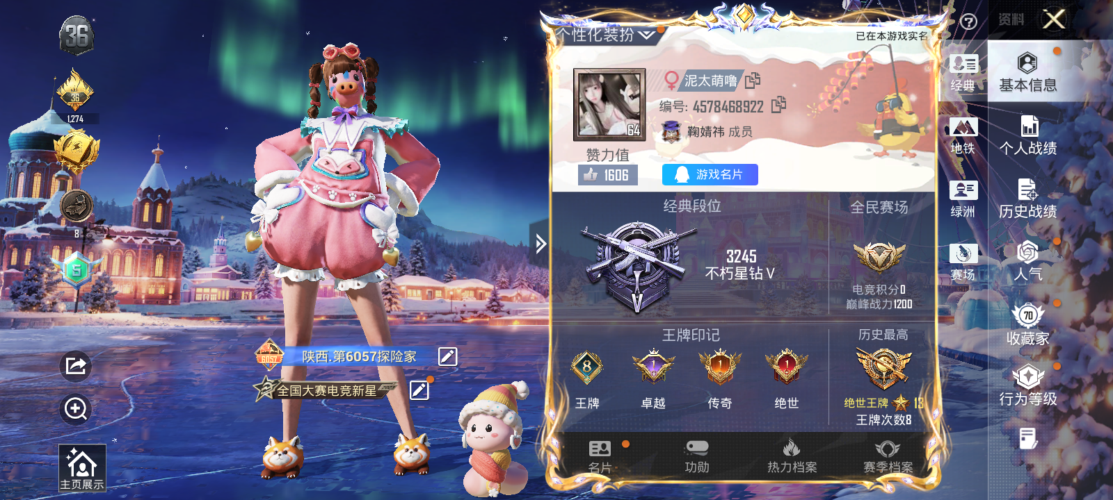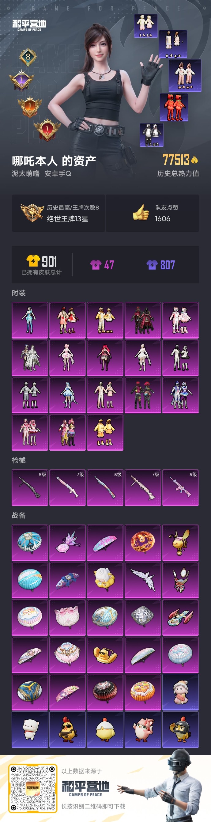 【和平精英】【txhp5144】18粉装,5特效呛,0载具,历史最高段位:绝世王牌13星 王牌印记8次 热力值:77513,193套装,230呛械,282装备,163战备;套装:套装-缤纷油彩,套装-放客神游,套装-馨动时刻,套装-星空之魅,套装-冰霜白皇,套装-炙焰红王,套装-岚岚物语,套装-暖熊萌萌,套装-甜梦小狐,套装-冰川幽秘,套装-甜蜜草莓,套装-第五大道,套装-憨憨奶龙,角色-美琪,角色-异瞳寒姬,角色-千金淑猫,角色-绯穹魔姬,角色-奇迹舞步 美雪,套装-特训学院,套装-猎鹰,套装-青年教官,套装-橘黑制服,套装-红色运动,套装-黄色运动,套装-蓝色运动,套装-黄色伏地魔,套装-白色伏地魔,套装-黑色伏地魔,套装-竞技名士,套装-深蓝色名流,套装-酒红色名流,套装-湖蓝色名流,套装-黄色名流,套装-猛禽,套装-长空猛禽,套装-沙漠雄狮,套装-海岛探路者,套装-旭日情侣,套装-冷焰舞者,套装-灼焰舞者,套装-浪漫天命,套装-特战装甲,套装-战地督导,套装-特殊使命,套装-青春校园,套装-燃烧卡路里,套装-完美偶像,套装-人气偶像,套装-幻影武者,套装-街头潮人,套装-蓝彩潮人,套装-魅力单车,套装-绮丽涂鸦,套装-竞技达人朋克,套装-破晓战魂,套装-都市魅力,套装-极地朋克,套装-幻世战舞者,套装-深海小丑鱼,套装-甜蜜熊情侣,套装-青涩时光,套装-缤纷果语,套装-元素星魂,套装-胖达圆圆,套装-极速红龙,套装-麻辣教官,套装-小丑鱼,套装-粉红小猪,套装-破蛋小黄鸡,套装-鹤鸣,套装-霓虹街区,套装-潮萌小黄鸭,套装-白熊同盟,套装-萌黄之夏,套装-夏日音浪,套装-探宝勇士,套装-牛气满满,套装-白糯汤圆,套装-战术大师,套装-牛气冲天,套装-ss18特训,套装-耀粉歌者,套装-飞行日记,套装-曼妙人鱼,套装-热情海星,套装-纯真浪花,套装-水晶王族,套装-ss19特训,套装-兔兔白日梦,套装-沁蓝冰爽,套装-浓情蜜辣,套装-极速竞梦,套装-飞驰魅影,套装-音速流光,套装-炫蓝之夏,套装-ss20特训,套装-粉团憨憨,套装-猎梦纪元,套装-甜心亚梦,套装-虚音幻奏,套装-ss21特训,套装-萌趣咩咩,套装-娇憨猪猪,套装-红熊茄茄,套装-梦幻奶油,套装-奶油香芋,套装-樱桃黑巧,套装-玉兔迎春,套装-ss22特训,套装-和煦暖阳,套装-田园牧歌,套装-轻风白浪,套装-光之冒险,套装-绯格组合,套装-ss23特训,套装-白兰地假日,套装-龙舌兰冰茶,套装-妙红点点,套装-幻彩翩翩,套装-糯粉咩咩,套装-王牌教练,套装-柠萌假日,套装-华灯初上,套装-软软马卡龙,套装-龟仙人,套装-ss25特训,套装-惊鸿侠骨,套装-锦衣飞扬,套装-奶油庭院,套装-牛仔情诗,套装-龙的传人,套装-ss26特训,套装-快闪甜心,套装-春光漫游,套装-漫游都市,套装-空岛之星,套装-云魄琉璃,套装-贝斯之夜,套装-绵云熊熊,玩偶服-菲菲,套装-焰鹰斗篷,套装-幽夜迷踪,套装-幻羽潜行,套装-ss27特训,套装-恋语绒绒,套装-老实芭蕉,套装-ss28特训,角色-情公主,套装-街头风暴,套装-海盐绵绵冰,套装-蝶变,套装-创世·幻影,套装-ss29特训,角色-紫俏灵猫,套装-异域银装,角色-摩登魅猫,角色-都市丽猫,套装-ss30特训,套装-青团波波,套装-棉花软糖,套装-糖糖葫芦,套装-绒宝小鹅,套装-ss31特训,套装-鱼渊荷华,套装-燕燕于飞,套装-智谋强哥,套装-紫幽梦,套装-ss33特训,套装-云朵鹅,套装-巳巳如意,套装-ss32特训,套装-彩虹兔,套装-蓝冰羽,套装-顶瓜瓜,套装-雪绒豹,套装-大橘大利,套装-星渊小夜曲,套装-蜜露汐语,套装-炫彩糖果,玩偶服-喜羊羊,套装-元气之梦,套装-ss34特训,套装-擎苍青焰,套装-朱霞炽焰,套装-游乐,套装-凌霄紫焰,套装-薄荷星砂,套装-ss35特训,套装-午间小调,套装-秘语星愿,套装-风迹短诗,套装-ss36特训,套装-萌鸡速递;呛皮:m762-橘柚倾心,m762-天降萌叽,m762-萌物绒绒,m762-云朵鹅,m16a4-蓝色火焰,m16a4-红色方程式,m16a4-甜心亚梦,m16a4-幻世战舞者,m16a4-天使羽翼,m16a4-千金淑猫,akm-破晓战魂,akm-霓虹街区,akm-涂鸦街区,akm-彩虹符号,akm-筑梦精灵,akm-霓彩脉冲,scar-l-红色方程式,scar-l-夜灯,scar-l-碧影闪光,scar-l-彩虹符号,scar-l-玉兔迎春,scar-l-海盐豹豹,scar-l-冷漠罗丽,蜜獾-娇憨猪猪,蜜獾-天降萌叽,蜜獾-糖糖葫芦,蜜獾-风迹短诗,蜜獾-乌木金纹,5级m416-电玩时刻,m416-蓝色火焰,m416-红色方程式,m416-糯团青竹,aug-甜蜜菠萝,aug-耀粉歌者,aug-异域银装,aug-冰晶雪宝,aug-紫晶流影,famas-霓彩脉冲,famas-乌木金纹,arx-凌霄紫焰,g36c-星穹咏叹调,ac-val-甜心亚梦,ac-val-天降萌叽,ac-val-闲梦青缨,ac-val-快闪甜心,groza-影袭,groza-彩虹符号,groza-田园牧歌,mk47-乌木金纹,mk47-妙红点点,mk47-风迹短诗,q-飞驰魅影,q-纯真浪花,5级kar98k-巳巳如意,kar98k-红色方程式,kar98k-彩虹符号,kar98k-炫彩节奏,kar98k-飞驰魅影,kar98k-星穹咏叹调,莫辛纳甘-乌木金纹,莫辛纳甘-蜜语绒猫,莫辛纳甘-风迹短诗,m24-炫彩节奏,m24-仲夏莫吉托,m24-乌木金纹,win94-夏日绵绵冰,win94-乌木金纹,amr-妙红点点,amr-鸡智如我,amr-喜羊羊与灰太狼,amr-乌木金纹,svd-云朵鹅,svd-霓彩脉冲,awm-垂柳戏鸭,awm-天降萌叽,awm-焰鹰斗篷,awm-纯真浪花,m200-仲夏莫吉托,m200-惊鸿侠骨,m200-乌木金纹,mk12-风迹短诗,mk14-童趣迷兔,mk14-乌木金纹,mk14-冰河战士,mk14-紫幽梦,mk14-薄荷星砂,m417-惊鸿侠骨,m417-玩趣呆呆,mini14-炫彩节奏,mini14-耀粉歌者,mini14-香桃花海,mini14-鸡智如我,mk20-h-快闪甜心,mk20-h-糖糖葫芦,mk20-h-乌木金纹,sks-糯团青竹,sks-未来歌姬,vss-田园牧歌,vss-香桃花海,slr-娇憨猪猪,slr-彩虹符号,slr-金丰海韵,slr-霓彩脉冲,p90-飞驰魅影,p90-快闪甜心,p90-玩趣呆呆