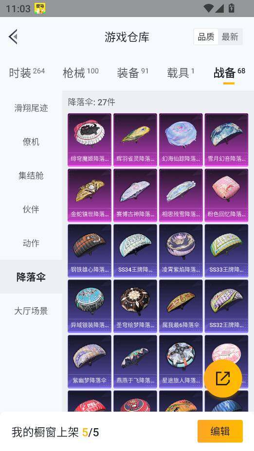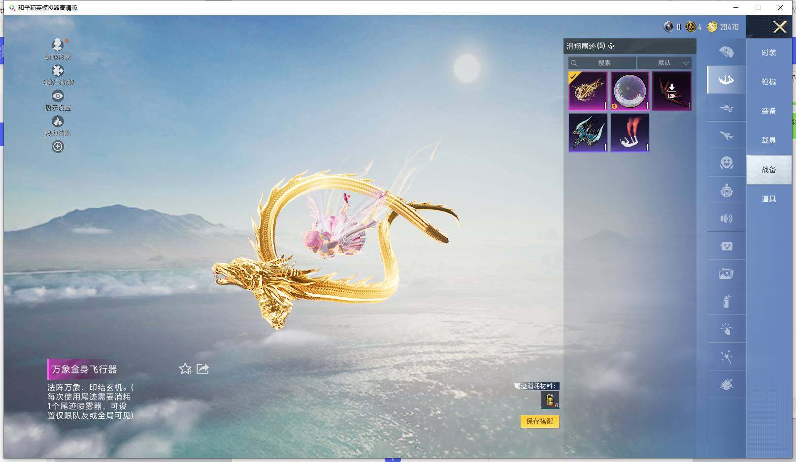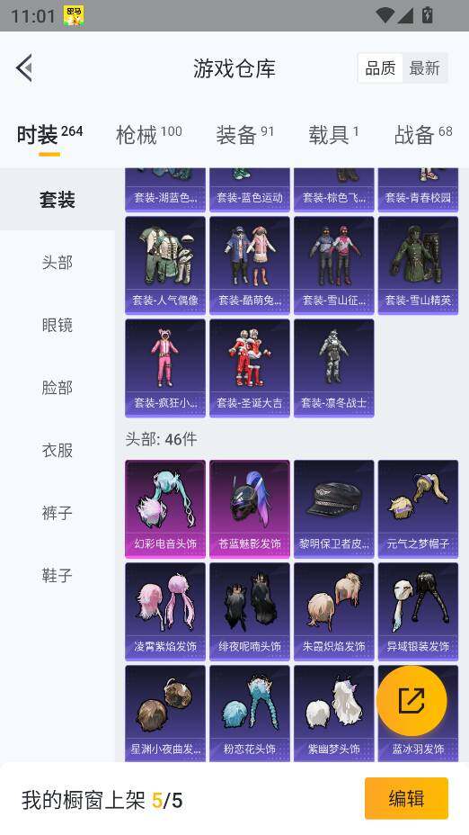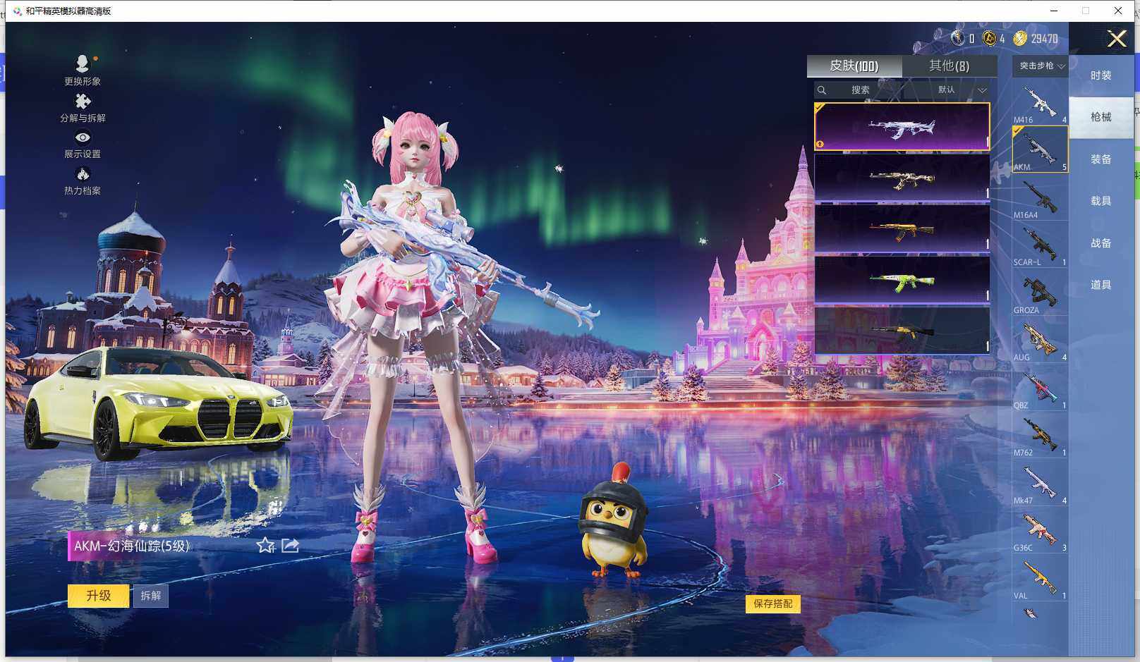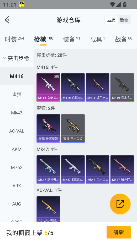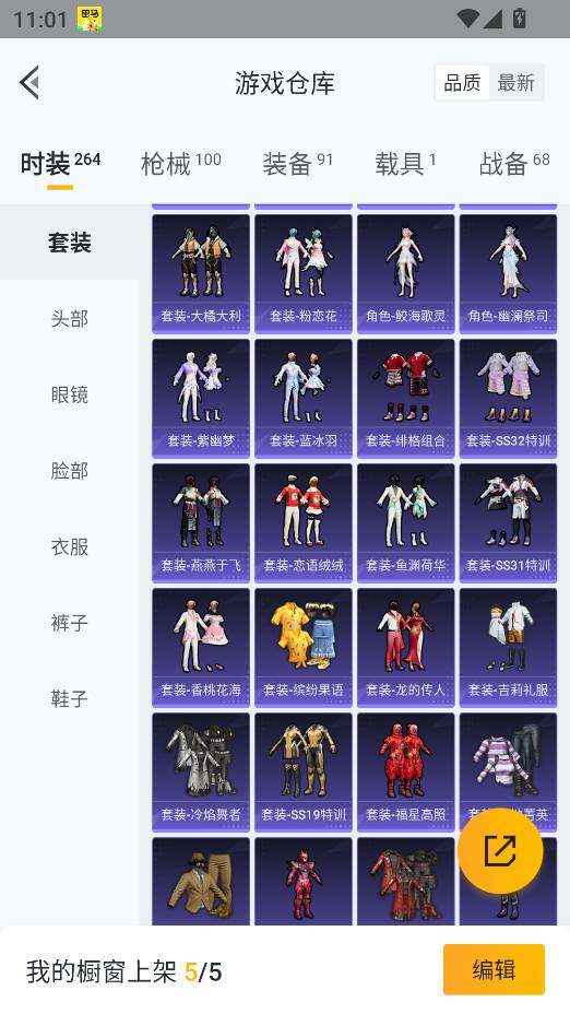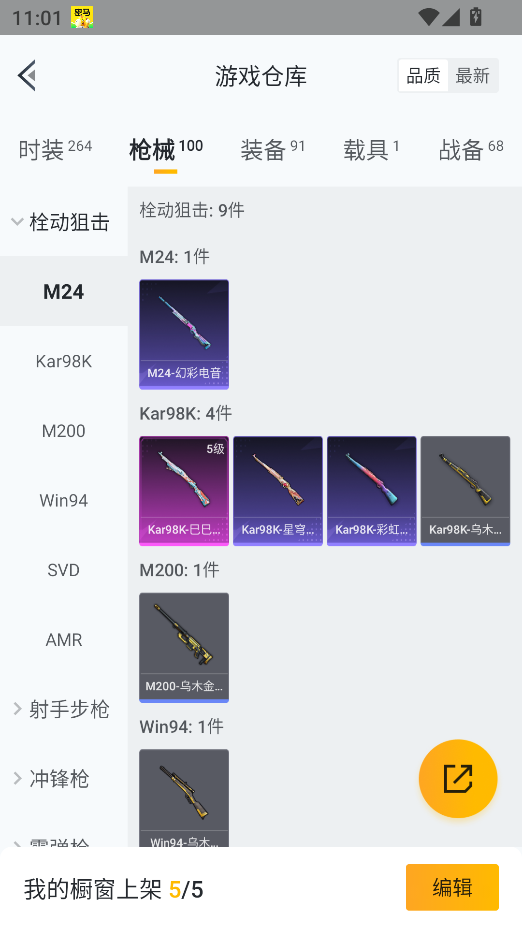 [14921333]实名: 可修改 时装数: 264 载具数: 1 呛械数: 100 战备数: 68 热门装扮: 苍蓝魅影飓风飞鹰女娲灵识凤凰座 一辉幻海仙踪幻彩电音罗征 载具: 宝马m4圣保罗黄 稀有呛皮: akm-幻海仙踪五级,m416-女娲灵识三级,kar98k-巳巳如意五级,amr-智耀战神四级,dp-28-豹影疾电四级