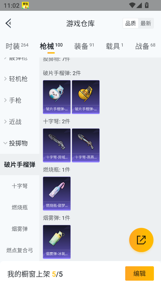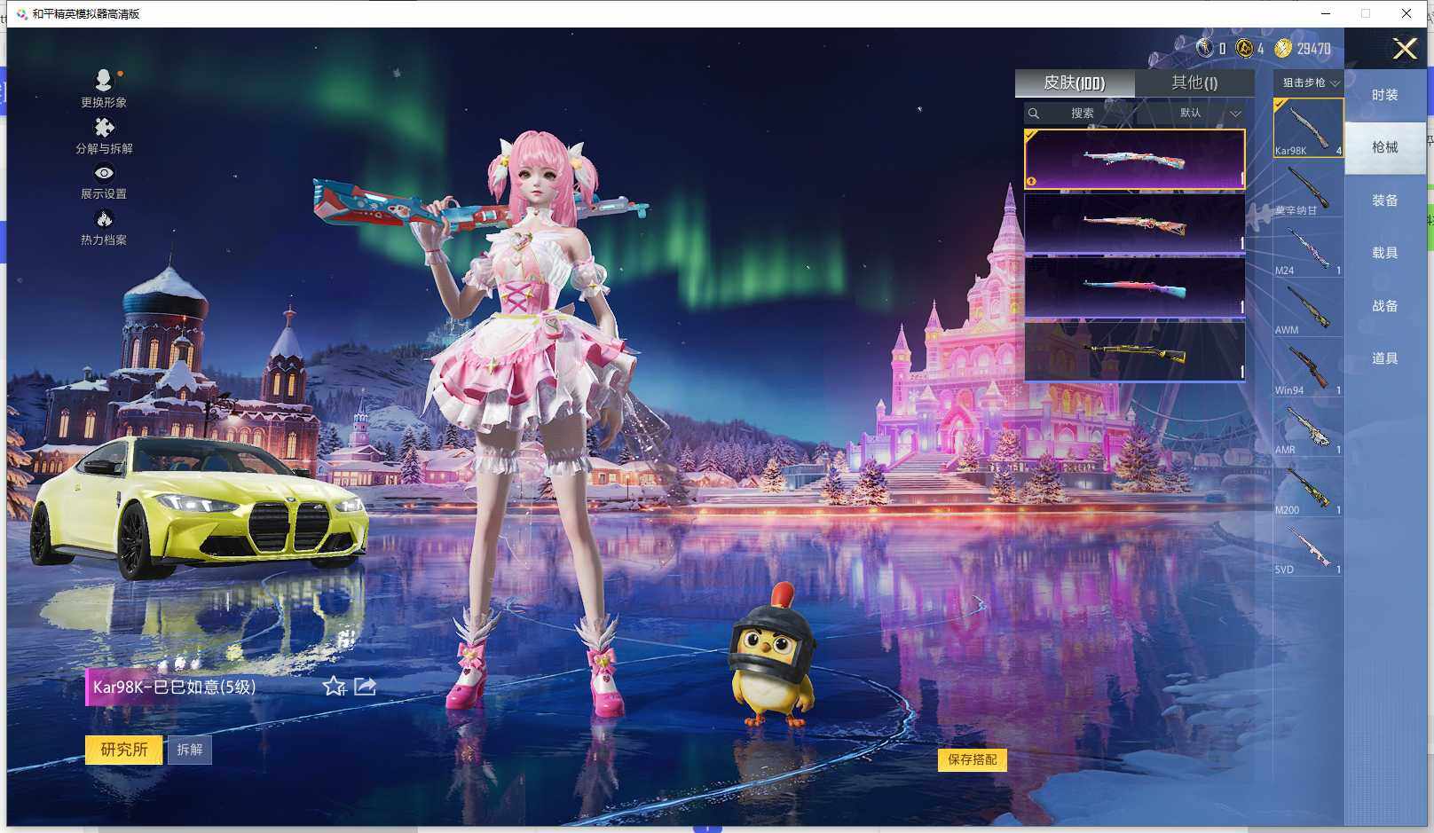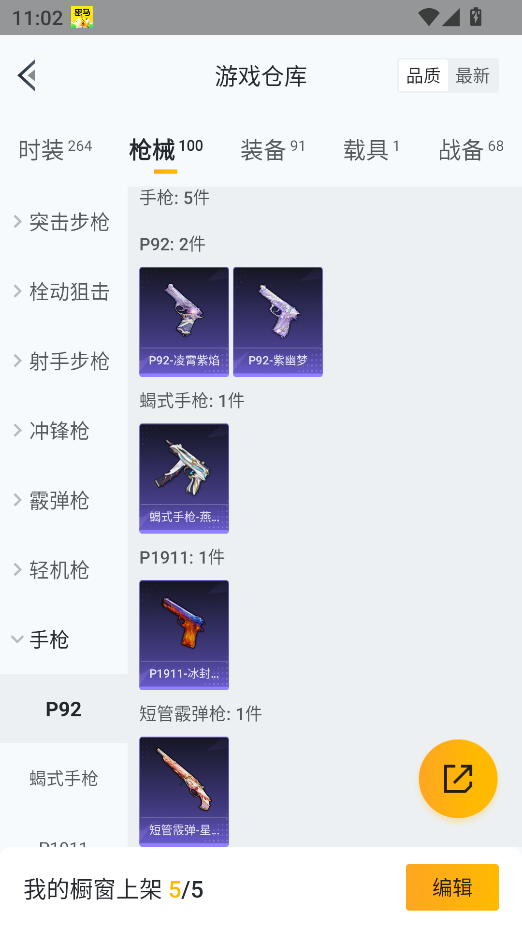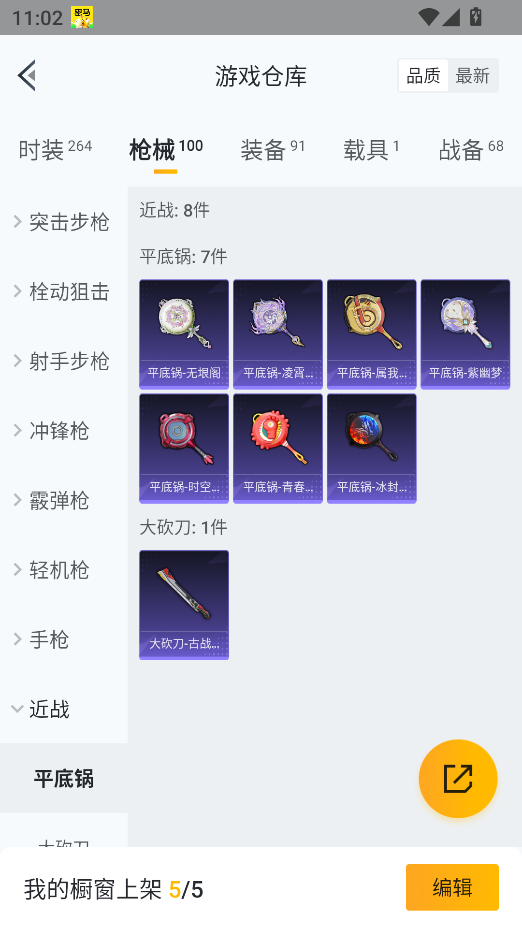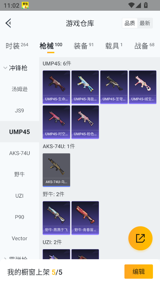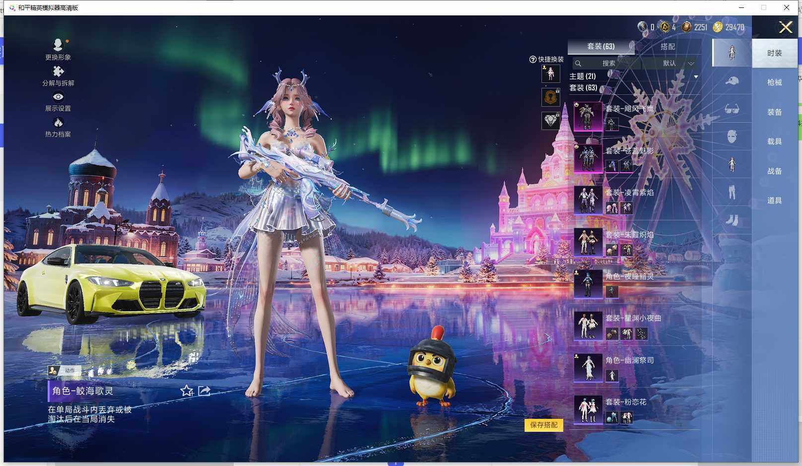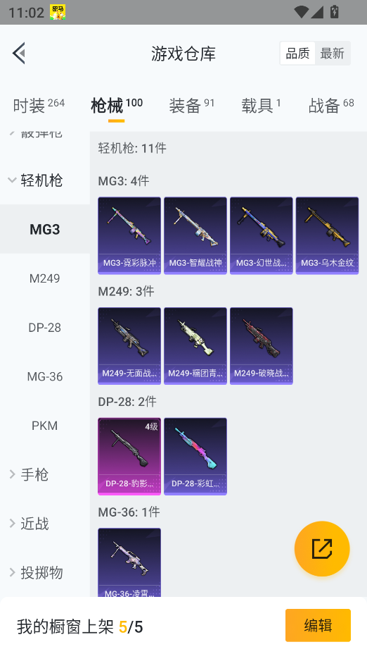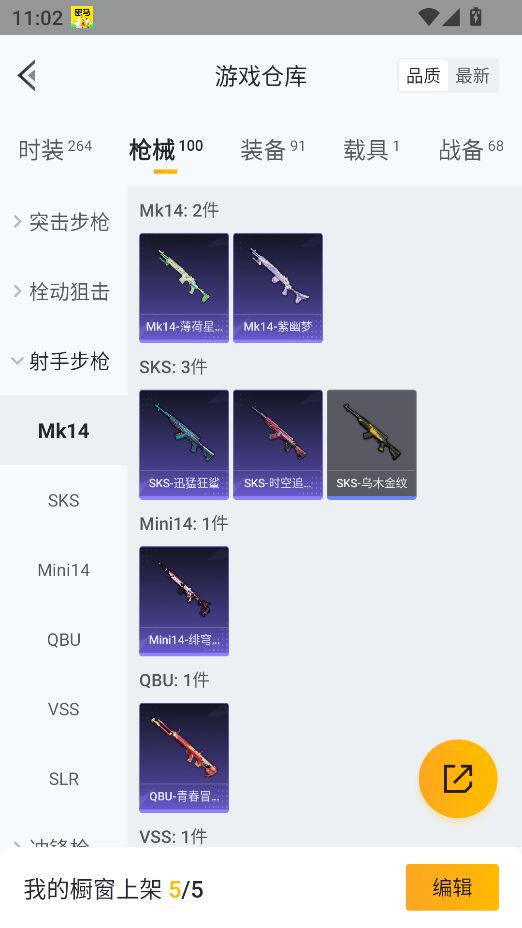 [14921333]实名: 可修改 时装数: 264 载具数: 1 呛械数: 100 战备数: 68 热门装扮: 苍蓝魅影飓风飞鹰女娲灵识凤凰座 一辉幻海仙踪幻彩电音罗征 载具: 宝马m4圣保罗黄 稀有呛皮: akm-幻海仙踪五级,m416-女娲灵识三级,kar98k-巳巳如意五级,amr-智耀战神四级,dp-28-豹影疾电四级