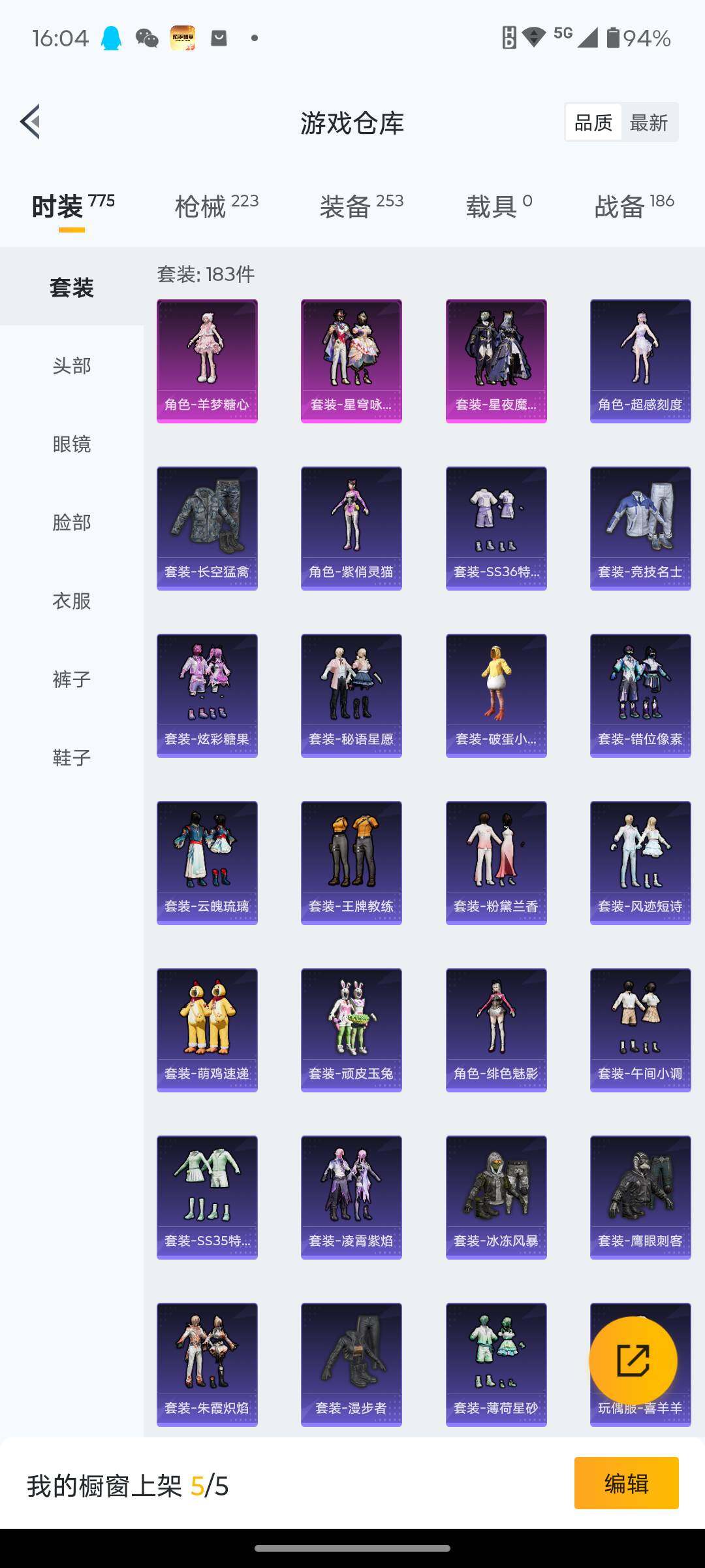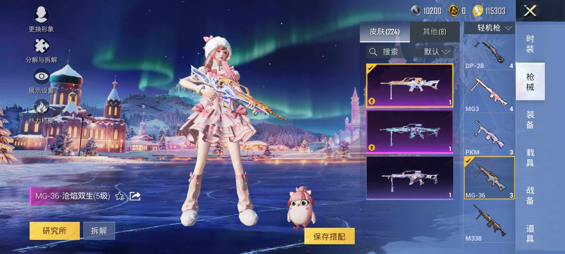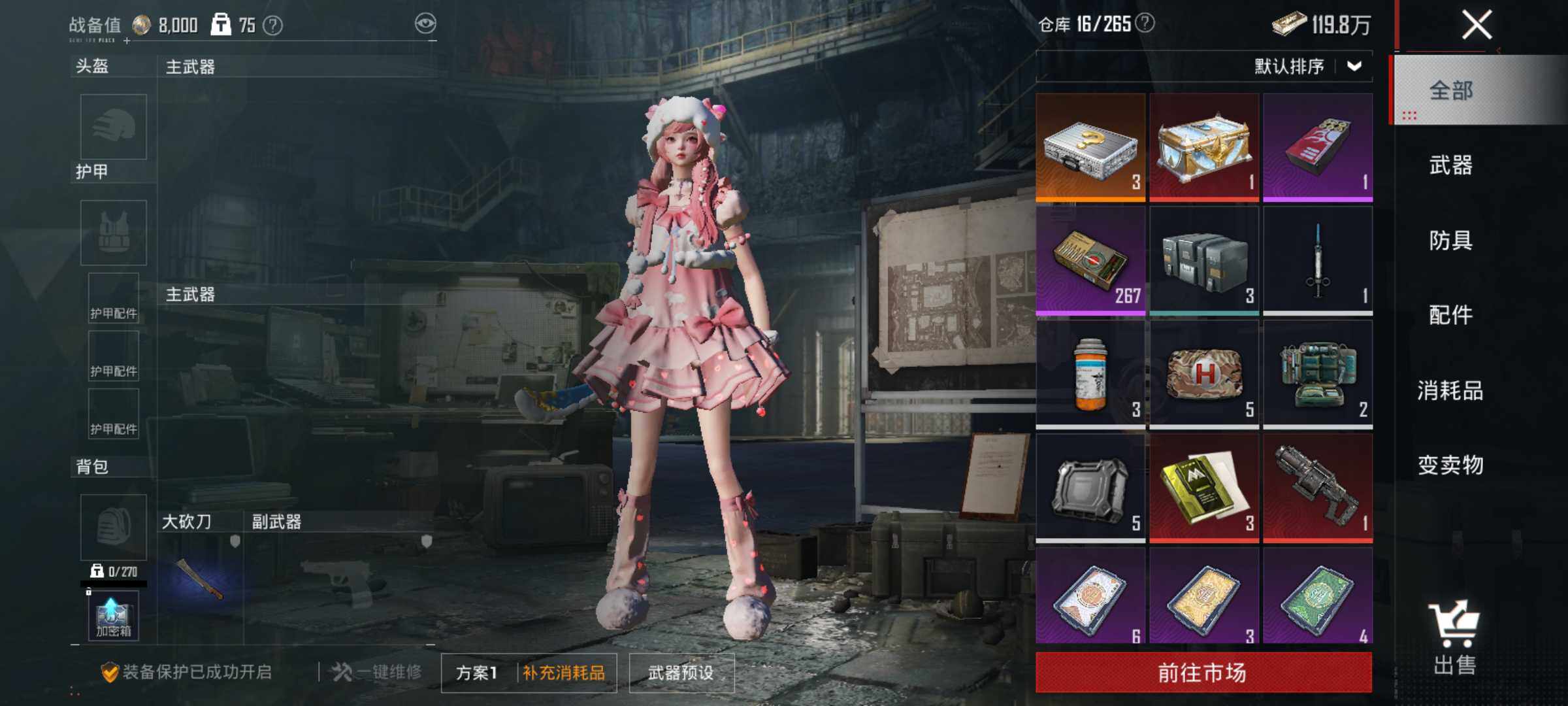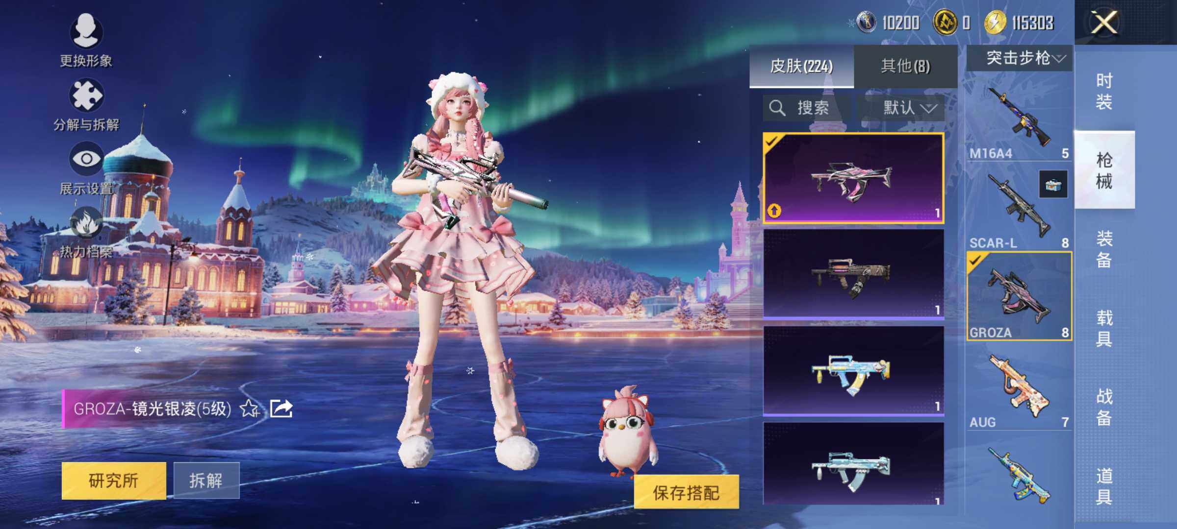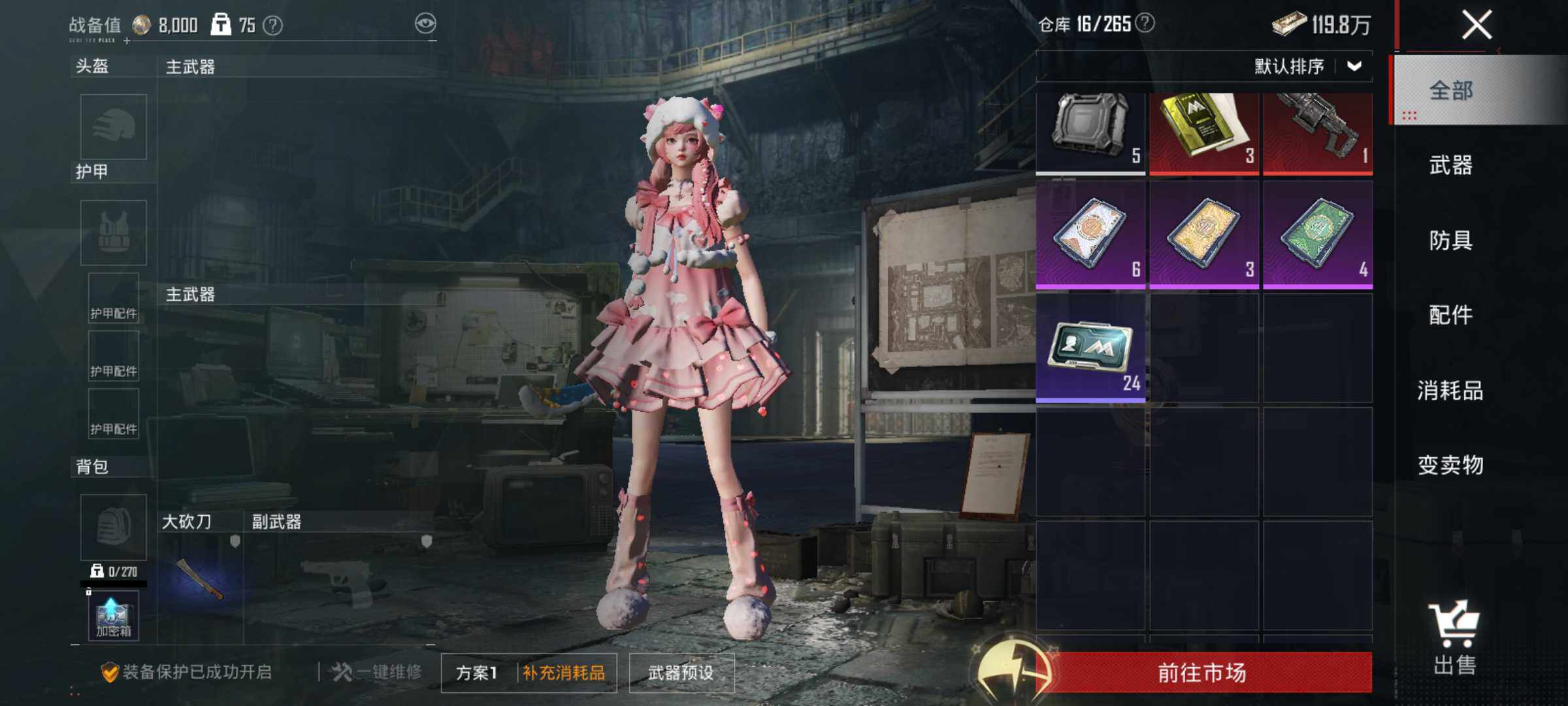 6121-3粉装-7特效呛-0载具-2粉色飞行器-65880热力值-14王牌印记-183套装-223呛皮 【热门品类】:套装-ss1特训,套装-龟仙人,套装-粉红小猪 【粉色套装】:粉装-星夜魔法师,粉装-星穹咏叹调,角色-羊梦糖心 【粉色呛皮等级】:groza-镜光银凌五级,aug-暖羊咩