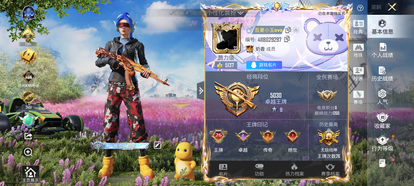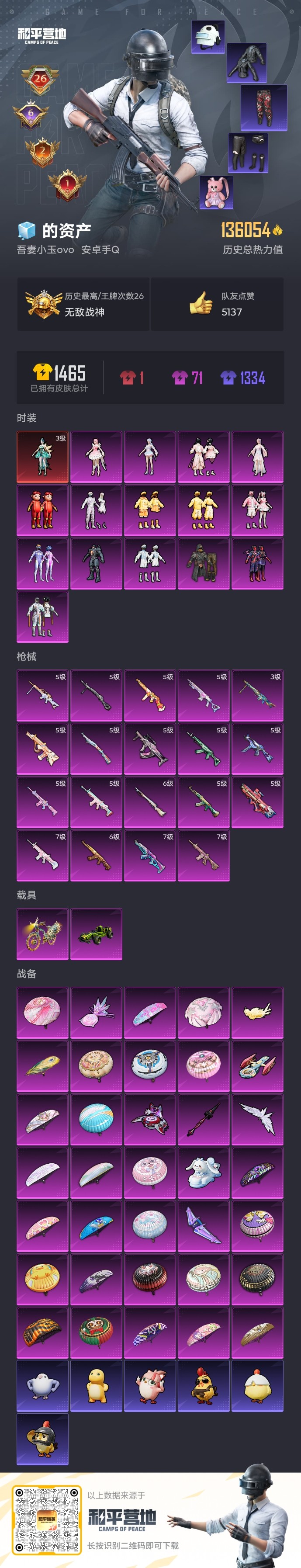 【和平精英】【txhp5327】15粉装,19特效呛,2载具,历史最高段位:无敌战神 王牌印记26次 热力值:136174,263套装,389呛械,538装备,242战备;套装:辉羽雀灵-初翊,套装-极限特训,套装-梦幻火箭,套装-智能音符,套装-星之彼岸,角色-复仇流浪者,套装-海盐物语,套装-彩虹甜喵,套装-镜光幻境,套装-暖暖奶龙,套装-憨憨奶龙,玩偶服-猪猪侠,角色-烟云彩露,角色-美雪,套装-桃粉嫣然,角色-荧海星豚,套装-红色运动,套装-黄色运动,套装-蓝色运动,套装-黑色伏地魔,套装-冰川格斗者,套装-竞技名士,套装-深蓝色名流,套装-猛禽,套装-长空猛禽,套装-漫步者,套装-海岛探路者,套装-雨林探路者,套装-旭日情侣,套装-六六大吉,套装-赤蝎幽灵,套装-灼焰舞者,套装-都市猎人,套装-水银刺客,套装-浪漫天命,套装-特战装甲,套装-战地菁英,套装-青春校园,套装-灰色格斗者,套装-活力之心,套装-春日漫步,套装-沙漠毒蛇,套装-鹰眼刺客,套装-冰冻风暴,套装-冷酷挑战者,套装-完美偶像,套装-幻影武者,套装-海滨突袭者,套装-街头潮人,套装-蓝彩潮人,套装-千禧之恋,套装-神秘领域,套装-怒火燎原,套装-魅力单车,套装-狂沙舞者,套装-森林游猎者,套装-荣耀,套装-热血青春,套装-沙漠兵团,套装-ss2特训,套装-雪山精英,套装-极地朋克,套装-幻世战舞者,套装-奇异狩猎者,套装-血色贵族,套装-暗影哥特,套装-弄潮海豚,套装-迅捷狂鲨,套装-深海小丑鱼,套装-生化防暴队,套装-夏日倾情,套装-缤纷果语,套装-滨海厨神,套装-电音之王,套装-龙魂突击队,套装-冰川特警,套装-灿烂千阳,套装-元素星魂,套装-胖达团团,套装-忍者信条,套装-极速红龙,套装-格斗先锋,套装-海上生明月,套装-麻辣教官,套装-小丑鱼,套装-破蛋小黄鸡,套装-疯狂小兔子,套装-裁决冥王,套装-霓虹街区,套装-ss10特训,套装-众神之王,套装-智慧之神,套装-白熊同盟,套装-萌黄之夏,套装-超能拳王,套装-ss9特训,套装-神秘舞者,套装-顽皮玉兔,套装-探宝勇士,套装-辉星之火,套装-牛气满满,套装-ss11特训,套装-青春冒险家,套装-潮流游乐家,套装-玄武圣者,套装-骁骑迪迦,套装-原初圣火,套装-逆风勇士,套装-萌趣颜团子,套装-特种颜团子,套装-战术大师,套装-ss12特训,套装-牛气冲天,套装-ss18特训,套装-镭射皇者,套装-银白舞王,套装-迅捷之星,套装-治愈之星,套装-科技之星,套装-飞行日记,套装-ss13特训,套装-pai战队服,套装-梦起落英,套装-曼妙人鱼,套装-热情海星,套装-纯真浪花,套装-ss14特训,套装-吉莉礼服,套装-蝎王蛇后,套装-ss15特训,套装-ss16特训,套装-暴风机械师,套装-时空追击者,套装-ss17特训,套装-瑞龙福将,套装-团圆交子,套装-福星高照,套装-雪兔飞飞,套装-虎虎生威吉莉,套装-异彩先驱,套装-霓虹极客,套装-空投萌叽,套装-ss19特训,套装-甜心信使,套装-极速竞梦,套装-飞驰魅影,套装-音速流光,套装-炫蓝之夏,套装-ss20特训,套装-奶芙汪汪,套装-恶魔喵喵,套装-猎梦纪元,套装-甜心亚梦,套装-虚音幻奏,套装-ss21特训,套装-萌趣咩咩,套装-娇憨猪猪,套装-酸甜橘柚,套装-玉兔迎春,套装-ss22特训,套装-和煦暖阳,套装-田园牧歌,套装-轻风白浪,套装-光之冒险,套装-莱茵河畔,套装-香榭午后,套装-神气柴柴,套装-懵萌河马,套装-妙红点点,套装-幻彩翩翩,套装-王牌教练,套装-柠萌假日,套装-ss24特训,套装-华灯初上,套装-恋恋初桃,套装-龟仙人,套装-涂山之恋,套装-ss25特训,套装-惊鸿侠骨,套装-锦衣飞扬,套装-双彩绵绵,套装-奶油庭院,套装-晨曦薄雾,套装-香桃花海,套装-果汁能量,套装-龙的传人,套装-冰河战士,套装-ss26特训,套装-快闪甜心,套装-春光漫游,套装-漫游都市,套装-空岛之星,套装-萌趣绒叽,套装-彩霞狙击,套装-云魄琉璃,套装-贝斯之夜,套装-焰鹰斗篷,套装-幽夜迷踪,套装-幻羽潜行,套装-ss27特训,套装-恋语绒绒,套装-老实芭蕉,套装-ss28特训,角色-迎夏光舞,角色-米开朗基罗,角色-白光莹,角色-情公主,角色-8号机,角色-mark.06,套装-街头风暴,套装-海盐绵绵冰,套装-蝶变,套装-湖畔霞光,套装-小熊娃娃,套装-ss29特训,套装-雏菊兔兔,套装-萝兰蝴蝶,角色-绯色魅影,套装-异域银装,角色-摩登魅猫,角色-都市丽猫,套装-星途旅人,套装-ss30特训,套装-青团波波,套装-棉花软糖,套装-糖糖葫芦,套装-ss31特训,套装-鱼渊荷华,套装-燕燕于飞,套装-智谋强哥,套装-紫幽梦,套装-粉恋花,套装-ss33特训,套装-云朵鹅,套装-巳巳如意,套装-ss32特训,套装-彩虹兔,套装-蓝冰羽,套装-顶瓜瓜,套装-雪绒豹,套装-乐游熊熊,套装-大橘大利,套装-兰香蝶语,套装-星渊小夜曲,套装-霓虹热舞,套装-炫彩糖果,套装-星影赞美诗,套装-蓝海鲸歌,套装-绯夜呢喃,套装-元气之梦,套装-ss34特训,套装-次元竞界,套装-擎苍青焰,套装-朱霞炽焰,套装-凌霄紫焰,套装-薄荷星砂,套装-ss35特训,套装-午间小调,套装-秘语星愿,套装-风迹短诗,套装-ss36特训,套装-雪国风尚,套装-萌鸡速递;呛皮:g36c-绮梦青鸾,g36c-时空追击者,g36c-懵萌河马,g36c-镜域双华,g36c-星穹咏叹调,g36c-乌木金纹,5级m762-青锋波束,m762-快乐主宰,m762-牛气冲天,m762-镭射皇者,m762-烈焰拳霸,m762-瑞龙福将,m762-彩虹符号,m762-天降萌叽,m762-雏菊兔兔,m762-云朵鹅,m762-登顶巅峰,m762-乌木金纹,6级akm-甜心宝贝,7级akm-梦之光华,5级akm-绿萝繁花,akm-灼热熔岩,akm-生命誓言,akm-影袭,akm-缤纷海域,akm-霓虹街区,akm-夜灯,akm-锦绣火鲤,akm-涂鸦街区,akm-彩虹符号,akm-萌趣颜团子,akm-虎虎生威,akm-龙的传人,akm-霓
