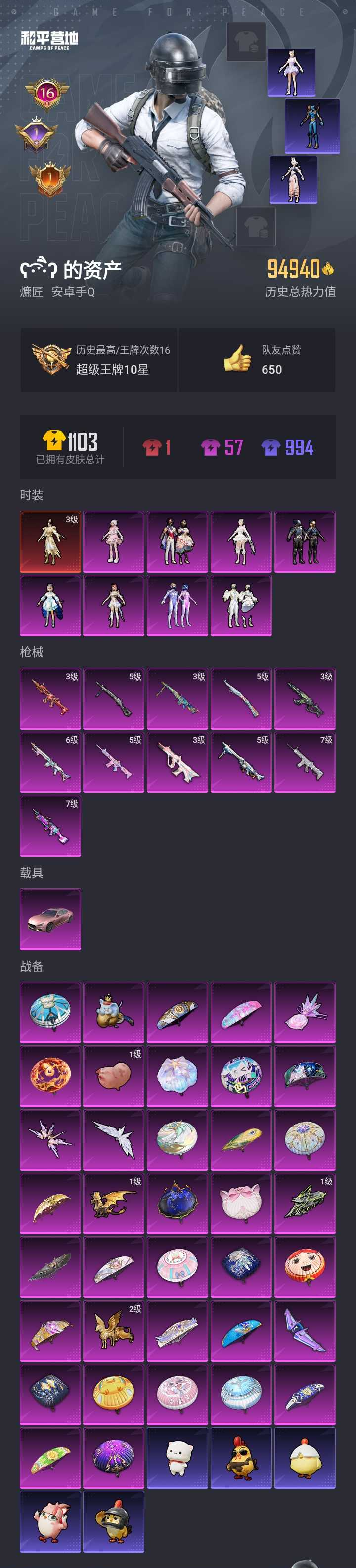 【和平精英】【lyhp18783】高印记 9w热力值 1红装8粉装11特效呛1载具 3级烛九 羊梦糖心 梦幻火箭 洛天依 千金淑猫 3级死噶魔童闹海 3级mg3辉羽雀灵 3级akm幽焰骑士 3级aug甜心首席 满级死噶纯梦嫁纱 玛莎拉蒂(地铁满天赋) 8粉装,11特效呛,1载具,历史最高段位:超级王牌10星 王牌印记16次 热力值:94940,190套装,302呛械,403装备,176战备;套装:金蛇镇世-烛九,套装-梦幻火箭,角色-洛天依,套装-寒光使者,角色-圣堂之誓,角色-千金淑猫,套装-英伦信使,套装-星穹咏叹调,角色-羊梦糖心,套装-骑行爱好者,套装-竞技名士,套装-猛禽,套装-长空猛禽,套装-黎明保卫者,套装-蓝色守护者,套装-海岛探路者,套装-旭日情侣,套装-冷焰舞者,套装-特战装甲,套装-战地菁英,套装-活力之心,套装-甜蜜告白,套装-春日漫步,套装-龙腾端午,套装-滨海假日,套装-暗黑骑手,套装-街头潮人,套装-怒火燎原,套装-绮丽涂鸦,套装-都市漫游者,套装-野性战心,套装-荣耀,套装-沙漠兵团,套装-烈火街头,套装-幻世战舞者,套装-甜蜜菠萝,套装-蓝调潮人,套装-弄潮海豚,套装-迅捷狂鲨,套装-甜蜜熊情侣,套装-青涩时光,套装-缤纷果语,套装-滨海厨神,套装-龙魂突击队,套装-风暴特警,套装-冰川特警,套装-格斗先锋,套装-麻辣教官,套装-鹤鸣,套装-霓虹街区,套装-众神之王,套装-萌黄之夏,套装-夏日音浪,套装-顽皮玉兔,套装-探宝勇士,套装-牛气满满,套装-白糯汤圆,套装-战术大师,套装-ss12特训,套装-牛气冲天,套装-ss18特训,套装-耀粉歌者,套装-飞行日记,套装-ss13特训,套装-竞技角斗士,套装-热情海星,套装-纯真浪花,套装-ss14特训,套装-天籁歌者,套装-电音精灵,套装-吉莉礼服,套装-ss16特训,套装-暗夜魅影,套装-ss17特训,套装-智慧隐士,套装-焰山流火,套装-福星高照,套装-虎虎生威吉莉,套装-异彩先驱,套装-霓虹极客,套装-空投萌叽,套装-ss19特训,套装-极速竞梦,套装-飞驰魅影,套装-音速流光,套装-炫蓝之夏,套装-ss20特训,套装-奶芙汪汪,套装-猎梦纪元,套装-甜心亚梦,套装-虚音幻奏,套装-ss21特训,套装-萌趣咩咩,套装-娇憨猪猪,套装-玉兔迎春,套装-ss22特训,套装-田园牧歌,套装-轻风白浪,套装-熠彩粉晶,套装-光之冒险,套装-绯格组合,套装-ss23特训,套装-香榭午后,套装-妙红点点,套装-幻彩翩翩,套装-王牌教练,套装-柠萌假日,套装-ss24特训,套装-龟仙人,套装-涂山之恋,套装-ss25特训,套装-惊鸿侠骨,套装-锦衣飞扬,套装-香桃花海,套装-龙的传人,套装-冰河战士,套装-ss26特训,套装-快闪甜心,套装-春光漫游,套装-漫游都市,套装-空岛之星,套装-无暇誓言,套装-明鸳圣池,套装-傲娇队长,套装-华贵领队,套装-贝斯之夜,套装-焰鹰斗篷,套装-幽夜迷踪,套装-幻羽潜行,套装-ss27特训,套装-恋语绒绒,套装-老实芭蕉,套装-ss28特训,角色-冰公主,角色-银尘,角色-mark.06,套装-街头风暴,套装-海盐绵绵冰,套装-蝶变,套装-粉日山川,套装-小熊娃娃,套装-ss29特训,套装-雏菊兔兔,套装-萝兰蝴蝶,角色-绯色魅影,套装-异域银装,角色-摩登魅猫,角色-都市丽猫,套装-星途旅人,角色-俏兔智灵,套装-ss30特训,套装-青团波波,套装-糖糖葫芦,套装-ss31特训,套装-鱼渊荷华,套装-燕燕于飞,套装-智谋强哥,角色-风玲,角色-瑰梦爱神,角色-海琴烟,套装-紫幽梦,套装-ss33特训,套装-云朵鹅,套装-巳巳如意,套装-ss32特训,套装-蓝冰羽,套装-顶瓜瓜,套装-雪绒豹,套装-狂鲨锋刃,套装-大橘大利,套装-极速光影,套装-星渊小夜曲,套装-霓虹热舞,套装-炫彩糖果,套装-元气之梦,套装-ss34特训,套装-擎苍青焰,套装-朱霞炽焰,套装-凌霄紫焰,套装-薄荷星砂,套装-ss35特训,套装-午间小调,套装-秘语星愿,套装-风迹短诗,套装-琴音绮想,套装-粉黛兰香,套装-画境星梦,套装-ss36特训,套装-雪国风尚,套装-萌鸡速递;呛皮:7级scar-l-纯梦嫁纱,3级scar-l-魔童闹海 哪吒,scar-l-红色方程式,scar-l-夜灯,scar-l-炫彩节奏,scar-l-彩虹符号,scar-l-玉兔迎春,scar-l-星途旅人,scar-l-海盐豹豹,ac-val-甜心亚梦,ac-val-乌木金纹,ac-val-天降萌叽,ac-val-快闪甜心,mk47-洛神天依,mk47-乌木金纹,mk47-妙红点点,mk47-风迹短诗,5级m416-电玩时刻,m416-夜灯,m416-红色方程式,m416-紫翼圣骑,m416-糯团青竹,groza-彩虹符号,groza-蓝莓炮弹,groza-异彩先驱,groza-紫翼圣骑,groza-田园牧歌,groza-海盐豹豹,g36c-冷魅冰骑,g36c-乌木金纹,蜜獾-娇憨猪猪,蜜獾-天降萌叽,蜜獾-精灵梦叶罗丽,蜜獾-糖糖葫芦,蜜獾-鸡智如我,蜜獾-风迹短诗,蜜獾-乌木金纹,m16a4-蓝色火焰,m16a4-甜心亚梦,m16a4-幻世战舞者,m16a4-冰河战士,m16a4-最终圣卫者,ace32-画境星梦,q-彩虹符号,q-洛神天依,q-飞驰魅影,q-银碳小老虎,q-未来歌姬,q-纯真浪花,3级aug-甜心首席,aug-耀粉歌者,aug-青春冒险家,aug-幻梦音符,aug-天降萌叽,aug-异域银装,aug-冰晶雪宝,aug-紫晶流影,m762-奇异狩猎者,m762-牛气冲天,m762-彩虹符号,m762-天降萌叽,m762-雏菊兔兔,m762-云朵鹅,famas-霓彩脉冲,famas-乌木金纹,3级akm-幽焰骑士,akm-缤纷海域,akm-破晓战魂,akm-霓虹街区,akm-涂鸦街区,akm-彩虹符号,akm-虎虎生威,akm-龙的传人,akm-霓彩脉冲,arx-凌霄紫焰,awm-不夜海上花,awm-圣堂之誓,awm-焰鹰斗篷,awm-纯真浪花,awm-盛世惊鸿,awm-乌木金纹,awm-绿洲时空,m200-惊鸿侠骨,m200-酷泡奶龙,m200-乌木金纹,5级kar98k-巳巳如意,kar98k-王子的夏天,kar98k-梦幻火箭,kar98k-彩虹符号,kar98k-洛神天依,kar98k-飞驰魅影,kar98k-顶峰精英,kar98k-星穹咏叹调,kar98k-最终圣卫者,kar98k-乌木金纹,win94-乌木金纹,莫辛纳甘-乌木
