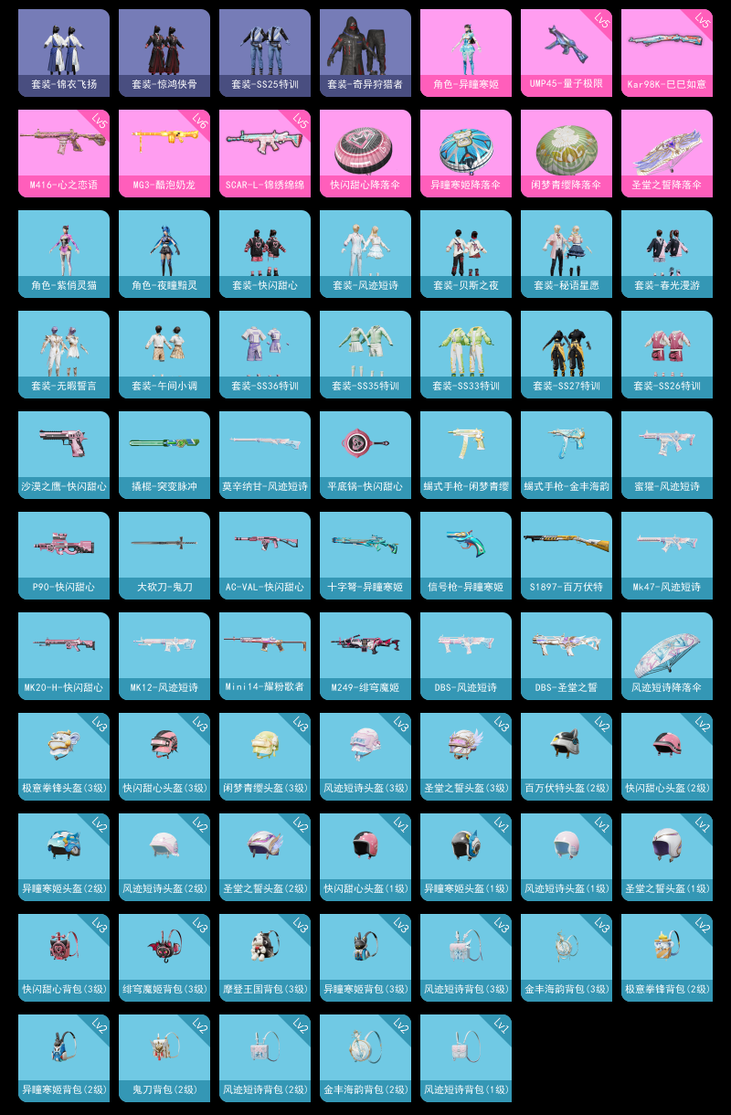 【和平精英】【lyhp18828】1粉装5特效呛 奇异狩猎者 5级心之恋语m416 6级mg3 满级量子极限ump 1粉装,5特效呛,0载具,历史最高段位:超级王牌10星 王牌印记5次 热力值:22582,42套装,67呛械,72装备,31战备;套装:角色-异瞳寒姬,套装-猎鹰,套装-竞技名士,套装-深蓝色名流,套装-长空猛禽,套装-海岛探路者,套装-魅力单车,套装-超能勇士,套装-奇异狩猎者,套装-血色贵族,套装-青涩时光,套装-缤纷果语,套装-破蛋小黄鸡,套装-疯狂小兔子,套装-战术大师,套装-ss25特训,套装-惊鸿侠骨,套装-锦衣飞扬,套装-龙的传人,套装-ss26特训,套装-快闪甜心,套装-春光漫游,套装-空岛之星,套装-无暇誓言,套装-贝斯之夜,套装-ss27特训,套装-恋语绒绒,套装-海盐绵绵冰,角色-紫俏灵猫,套装-ss30特训,角色-夜瞳黯灵,套装-ss31特训,套装-ss33特训,套装-ss32特训,套装-炫彩糖果,套装-ss34特训,套装-ss35特训,套装-午间小调,套装-秘语星愿,套装-风迹短诗,套装-ss36特训,套装-雪国风尚;呛皮:m16a4-幻世战舞者,akm-彩虹符号,akm-龙的传人,蜜獾-天降萌叽,蜜獾-风迹短诗,蜜獾-乌木金纹,5级m416-心之恋语,m416-红色方程式,m416-糯团青竹,5级scar-l-锦绣绵绵,scar-l-海盐豹豹,ac-val-快闪甜心,q-彩虹符号,aug-冰晶雪宝,m762-天降萌叽,mk47-风迹短诗,莫辛纳甘-风迹短诗,m200-惊鸿侠骨,m200-乌木金纹,m24-天降萌叽,amr-乌木金纹,5级kar98k-巳巳如意,win94-乌木金纹,mini14-耀粉歌者,mini14-香桃花海,mk20-h-快闪甜心,mk20-h-乌木金纹,mk12-风迹短诗,mk12-乌木金纹,m417-惊鸿侠骨,sks-炫彩节奏,vss-香桃花海,uzi-啾咪啾咪,uzi-炫彩糖果,5级ump45-量子极限,ump45-夜灯,mp5k-乌木金纹,汤姆逊-天降萌叽,p90-快闪甜心,p90-巳巳如意,p90-乌木金纹,dbs-圣堂之誓,dbs-风迹短诗,dbs-乌木金纹,s1897-百万伏特,s1897-糯团青竹,s12k-玩趣呆呆,spas-12-乌木金纹,m249-彩虹符号,m249-绯穹魔姬,6级mg3-酷泡奶龙,mg3-惊鸿侠骨,蝎式手呛-闲梦青缨,蝎式手呛-金丰海韵,沙墨之鹦-快闪甜心,信号呛-异瞳寒姬,平底锅-惊鸿侠骨,平底锅-快闪甜心,平底锅-空岛之星,大砍刀-鬼刀,撬棍-突变脉冲,破片手留单-呆爆全场,破片手留单-巳巳如意,破片手留单-爆破雪人,铝热弹-炫彩糖果,爆炸猎弓-惊鸿侠骨,十子怒-异瞳寒姬;降落伞:炫彩糖果飞行器,狂鲨锋刃飞行器; 详情看图