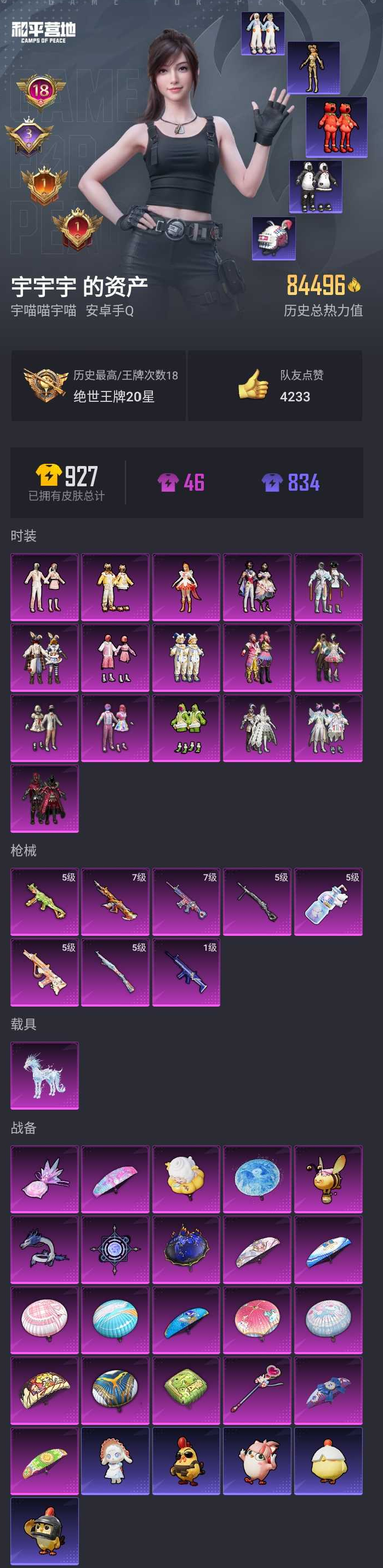 【和平精英】【lyhp18707】18高印记1绝世 16粉装8特效呛1载具 缤纷油彩 蝶舞迷情 童趣迷兔 第五大道 红熊茄茄 六号稻草人 胖达圆圆 7级至情m4 满级盐雾蛋 满级童趣迷兔 冰绡玉麟 16粉装,8特效呛,1载具,历史最高段位:绝世王牌20星 王牌印记18次 热力值:84496,204套装,240呛械,306装备,148战备;套装:套装-宝贝奶油派,套装-天使彩虹糖,套装-蝶舞迷情,套装-智能音符,套装-缤纷油彩,套装-冰霜白皇,套装-童趣迷兔,套装-炙焰红王,套装-山涧鹿灵,套装-恐龙拽拽,套装-酣梦娃娃,套装-暖熊萌萌,套装-第五大道,套装-飒粉甜心,角色-小蓝,套装-星穹咏叹调,套装-特训学院,套装-猎鹰,套装-青年教官,套装-橘黑制服,套装-红色运动,套装-黄色运动,套装-蓝色运动,套装-黄色伏地魔,套装-白色伏地魔,套装-黑色伏地魔,套装-竞技名士,套装-深蓝色名流,套装-酒红色名流,套装-湖蓝色名流,套装-黄色名流,套装-猛禽,套装-长空猛禽,套装-冷焰舞者,套装-灼焰舞者,套装-缤纷假日,套装-战地督导,套装-甜蜜告白,套装-春日漫步,套装-龙腾端午,套装-滨海假日,套装-鹰眼刺客,套装-冰冻风暴,套装-完美偶像,套装-人气偶像,套装-幻影武者,套装-特战英豪,套装-街头潮人,套装-蓝彩潮人,套装-千禧之恋,套装-神秘领域,套装-魅力单车,套装-绮丽涂鸦,套装-竞技达人朋克,套装-超能勇士,套装-破晓战魂,套装-都市魅力,套装-荣耀,套装-沙漠兵团,套装-酷潮明星,套装-极地朋克,套装-幻世战舞者,套装-甜蜜菠萝,套装-弄潮海豚,套装-呆萌铁蟹,套装-甜蜜熊情侣,套装-缤纷果语,套装-滨海厨神,套装-龙魂突击队,套装-冰川特警,套装-胖达圆圆,套装-极速红龙,套装-格斗先锋,套装-麻辣教官,套装-粉红小猪,套装-破蛋小黄鸡,套装-疯狂小兔子,套装-北国孤狼,套装-淡雅花蕊,套装-玲珑飞花,套装-鹤鸣,套装-霓虹街区,套装-萌黄之夏,套装-夏日音浪,套装-风华少年志,套装-抹茶蜜豆,套装-探宝勇士,套装-牛气满满,套装-白糯汤圆,套装-萌趣颜团子,套装-特种颜团子,套装-战术大师,套装-牛气冲天,套装-ss18特训,套装-耀粉歌者,套装-飞行日记,套装-ss13特训,套装-梦起落英,套装-ss14特训,套装-吉莉礼服,套装-ss15特训,套装-ss16特训,套装-ss17特训,套装-水晶王族,套装-瑞龙福将,套装-团圆交子,套装-冰爽风暴,套装-炫光向阳,套装-福星高照,套装-豚鼠丹丹,套装-雪兔飞飞,套装-虎虎生威吉莉,角色-军刀雅典娜,套装-异彩先驱,套装-霓虹极客,套装-空投萌叽,套装-ss19特训,套装-兔兔白日梦,套装-极速竞梦,套装-飞驰魅影,套装-音速流光,套装-炫蓝之夏,套装-ss20特训,套装-猎梦纪元,套装-甜心亚梦,套装-虚音幻奏,套装-ss21特训,套装-暖心熊熊,套装-萌趣咩咩,套装-娇憨猪猪,套装-红熊茄茄,套装-俏皮奶喵,套装-幸运萌趣趣,套装-玉兔迎春,套装-ss22特训,套装-和煦暖阳,套装-田园牧歌,套装-轻风白浪,套装-绚烂繁星,套装-熠彩粉晶,套装-光之冒险,套装-绯格组合,套装-ss23特训,套装-飞狐塔尔斯,套装-莱茵河畔,套装-甜梦熊熊,套装-神气柴柴,套装-懵萌河马,套装-灵蜜圈圈,套装-妙红点点,套装-幻彩翩翩,套装-王牌教练,套装-柠萌假日,套装-青玉碎影,套装-ss24特训,套装-龟仙人,套装-涂山之恋,套装-ss25特训,套装-金戈铁马,套装-惊鸿侠骨,套装-锦衣飞扬,套装-晨曦薄雾,套装-元气发射,套装-龙的传人,套装-冰河战士,套装-ss26特训,套装-空岛之星,套装-ss27特训,套装-恋语绒绒,套装-老实芭蕉,套装-ss28特训,角色-拉斐尔,套装-海盐绵绵冰,套装-蝶变,套装-ss29特训,角色-绯色魅影,套装-异域银装,套装-星途旅人,套装-闪电轻猫,套装-ss30特训,套装-纯白跃动,角色-六号稻草人,套装-ss31特训,套装-鱼渊荷华,套装-燕燕于飞,套装-智谋强哥,套装-紫幽梦,套装-粉恋花,套装-ss33特训,套装-巳巳如意,套装-ss32特训,套装-蓝冰羽,套装-顶瓜瓜,套装-大橘大利,套装-极速光影,套装-蓝海鲸歌,套装-元气之梦,套装-ss34特训,套装-擎苍青焰,套装-朱霞炽焰,套装-凌霄紫焰,套装-薄荷星砂,套装-ss35特训,套装-萌鸡速递;呛皮:7级scar-l-童趣迷兔,1级scar-l-青春物语,scar-l-红色方程式,scar-l-夜灯,scar-l-炫彩节奏,scar-l-碧影闪光,scar-l-彩虹符号,scar-l-玉兔迎春,scar-l-星途旅人,scar-l-海盐豹豹,蜜獾-娇憨猪猪,蜜獾-垂柳戏鸭,蜜獾-天降萌叽,蜜獾-冰澜龙吟,蜜獾-绿洲时空,蜜獾-乌木金纹,7级m416-至情至圣,m416-蓝色火焰,m416-红色方程式,m416-暗星紫秘,m416-糯团青竹,ac-val-甜心亚梦,ac-val-乌木金纹,ac-val-彩虹甜喵,ac-val-天降萌叽,ac-val-闲梦青缨,ac-val-六号稻草人,g36c-暗夜玫瑰,g36c-懵萌河马,g36c-乌木金纹,5级aug-暖羊咩咩,aug-耀粉歌者,aug-天降萌叽,aug-闲梦青缨,aug-异域银装,akm-灼热熔岩,akm-缤纷海域,akm-破晓战魂,akm-霓虹街区,akm-夜灯,akm-涂鸦街区,akm-彩虹符号,akm-萌趣颜团子,akm-虎虎生威,akm-恐龙拽拽,akm-龙的传人,akm-霓彩脉冲,groza-影袭,groza-春暖花开,groza-彩虹符号,groza-蓝莓炮弹,groza-异彩先驱,groza-恐龙拽拽,groza-田园牧歌,groza-懵萌河马,m16a4-蓝色火焰,m16a4-夜灯,m16a4-甜心亚梦,m16a4-幻世战舞者,m16a4-冰河战士,m762-甜心宝贝,m762-牛气冲天,m762-瑞龙福将,m762-彩虹符号,m762-橘柚倾心,m762-暗夜鎏金,m762-天降萌叽,famas-霓彩脉冲,famas-乌木金纹,mk47-乌木金纹,mk47-妙红点点,q-彩虹符号,q-飞驰魅影,q-未来歌姬,arx-凌霄紫焰,5级kar98k-巳巳如意,kar98k-红色方程式,kar98k-彩虹符号,kar98k-炫彩节奏,kar98k-飞驰魅影,kar98k-乌木金纹,amr-妙红点点,amr-鸡智如我,amr