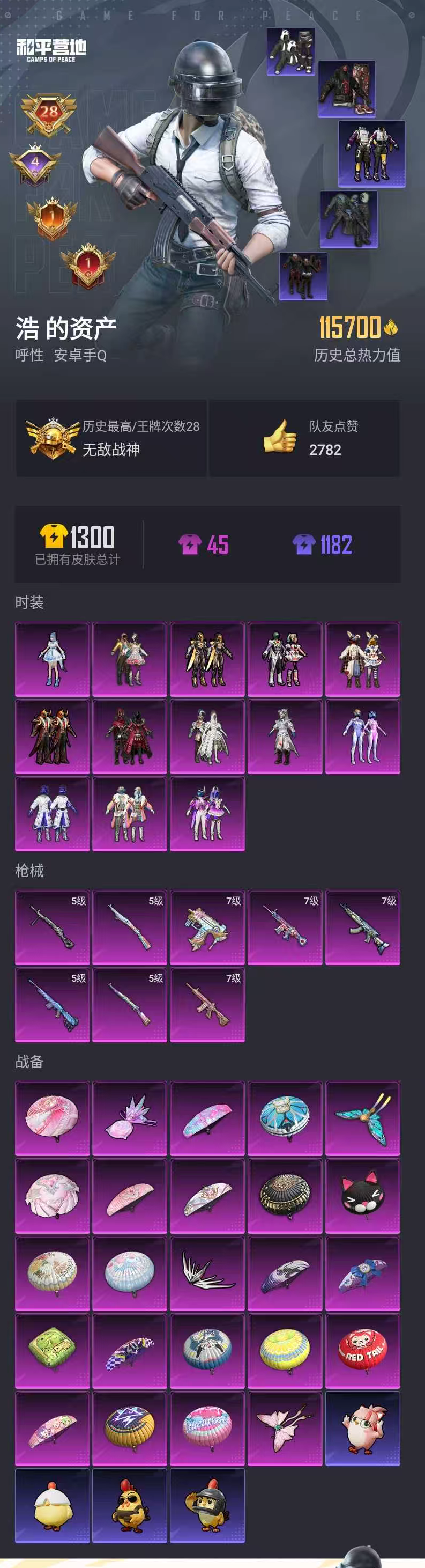 【和平精英】【lyhp18810】高印记 双字id 无敌战神框 13粉装8特效呛 梦幻火箭 小丑女 都市猎人 赤蝎幽灵 追光服 胖达团团 暗影哥特 奇异狩猎者 满级m4心之恋语 满级死噶童趣迷兔 满级m762 满级uzi m4星际漫游 国宝头盔 粉熊背包 13粉装,8特效呛,0载具,历史最高段位:无敌战神 王牌印记28次 热力值:115700,275套装,342呛械,436装备,211战备;套装:套装-梦幻火箭,套装-蝶舞迷情,套装-新星烈龙,套装-幻彩马卡龙,套装-极致幻想,套装-银刃赛罗,套装-冰霜白皇,套装-童趣迷兔,套装-炙焰红王,套装-炙焰牛王,套装-灵感创作师,套装-创世·救赎,角色-奇迹舞步 美琪,套装-黄色运动,套装-蓝色运动,套装-黄色伏地魔,套装-白色伏地魔,套装-黑色伏地魔,套装-竞技名士,套装-黄色名流,套装-猛禽,套装-游猎者,套装-长空猛禽,套装-漫步者,套装-竞技勇士朋克,套装-黎明保卫者,套装-雪鹰学院,套装-海岛探路者,套装-旭日情侣,套装-六六大吉,套装-赤蝎幽灵,套装-冷焰舞者,套装-灼焰舞者,套装-都市猎人,套装-刚毅裁决者,套装-水银刺客,套装-浪漫天命,套装-特战装甲,套装-战地菁英,套装-贵族骑装,套装-特殊使命,套装-街舞达人,套装-青春校园,套装-黄色格斗者,套装-灰色格斗者,套装-活力之心,套装-甜蜜告白,套装-春日漫步,套装-龙腾端午,套装-燃烧卡路里,套装-滨海假日,套装-暗黑骑手,套装-鹰眼刺客,套装-冰冻风暴,套装-完美偶像,套装-人气偶像,套装-幻影武者,套装-街头潮人,套装-蓝彩潮人,套装-怒火燎原,套装-决胜时刻,套装-魅力单车,套装-绮丽涂鸦,套装-耀眼新星,套装-狂战萌兔,套装-坚韧舞者,套装-朋克治安官,套装-夜莺强袭者,套装-野性战心,套装-金羽特工,套装-超能勇士,套装-狂沙舞者,套装-破晓战魂,套装-幻世保卫者,套装-都市魅力,套装-荣耀,套装-热血青春,套装-沙漠兵团,套装-丛林猎人,套装-雪山精英,套装-酷潮明星,套装-传奇侦探,套装-极地朋克,套装-幻世战舞者,套装-无烬之地,套装-清新柠檬,套装-奇异狩猎者,套装-金耀舞者,套装-蓝调潮人,套装-暗影哥特,套装-迅捷狂鲨,套装-深海小丑鱼,套装-夏日倾情,套装-甜蜜熊情侣,套装-青涩时光,套装-缤纷果语,套装-滨海厨神,套装-alan walker,套装-电音之王,套装-风暴特警,套装-冰川特警,套装-灿烂千阳,套装-元素星魂,套装-胖达团团,套装-幻影公爵,套装-忍者信条,套装-极速红龙,套装-格斗先锋,套装-wifi精灵,套装-海上生明月,套装-麻辣教官,套装-恶魔宝贝,套装-破蛋小黄鸡,套装-疯狂小兔子,套装-舞夜骑士,套装-深蓝冒险家,套装-迷域探索者,套装-机械英豪,套装-机械征服者,套装-ss5特训,套装-圣诞大吉,套装-浪漫波比,套装-北国孤狼,套装-ss6特训,套装-拳皇97八神庵,套装-炽焰拳师,套装-格斗专家,套装-云纹魔法士,套装-淡雅花蕊,套装-玲珑飞花,套装-跃动心情,套装-ss7特训,套装-黑色刀锋,套装-核芯基因,套装-精神漫游,套装-鹤鸣,套装-霓虹街区,套装-暗夜契约,套装-激萌罗小黑,套装-ss10特训,套装-ss8特训,套装-众神之王,套装-智慧之神,套装-神秘黑猫,套装-软萌银虎,套装-白熊同盟,套装-萌黄之夏,套装-影双刃,套装-海洋之心,套装-夏日音浪,套装-ss9特训,套装-风华少年志,套装-白月香洋装,套装-不夜海上花,套装-抹茶蜜豆,套装-探宝勇士,套装-本愿之火,套装-4am战队服,套装-牛气满满,套装-玫瑰恋情,套装-ss11特训,套装-诡面顽熊,套装-青龙圣者,套装-浪客战士,套装-原初圣火,套装-逆风勇士,套装-初火先锋,套装-静谧青瓷,套装-萌趣颜团子,套装-特种颜团子,套装-战术大师,套装-ss12特训,套装-牛气冲天,套装-ss18特训,套装-闪金天王,套装-镭射皇者,套装-银白舞王,套装-耀粉歌者,套装-迅捷之星,套装-治愈之星,套装-科技之星,套装-萌主吾皇,套装-飞行日记,套装-ss13特训,套装-冰爽海盐,套装-ss14特训,套装-吉莉礼服,套装-ss15特训,套装-nv追光队服,套装-ss16特训,套装-暴风机械师,套装-时空追击者,套装-ss17特训,套装-瑞龙福将,套装-团圆交子,套装-福星高照,角色-军刀雅典娜,套装-异彩先驱,套装-霓虹极客,套装-空投萌叽,套装-ss19特训,套装-沁蓝冰爽,套装-极速竞梦,套装-飞驰魅影,套装-音速流光,套装-炫蓝之夏,套装-ss20特训,套装-甜心亚梦,套装-虚音幻奏,套装-ss21特训,套装-萌趣咩咩,套装-娇憨猪猪,套装-玉兔迎春,套装-ss22特训,套装-田园牧歌,套装-轻风白浪,套装-光之冒险,套装-绯格组合,套装-ss23特训,套装-神气柴柴,套装-懵萌河马,套装-妙红点点,套装-幻彩翩翩,套装-王牌教练,套装-柠萌假日,套装-青玉碎影,套装-ss24特训,套装-龟仙人,套装-涂山之恋,套装-ss25特训,套装-惊鸿侠骨,套装-锦衣飞扬,套装-龙的传人,套装-ss26特训,套装-快闪甜心,套装-春光漫游,套装-空岛之星,套装-焰鹰斗篷,套装-幻羽潜行,套装-ss27特训,套装-恋语绒绒,套装-老实芭蕉,套装-ss28特训,角色-多纳泰罗,套装-街头风暴,套装-海盐绵绵冰,套装-ss29特训,角色-紫俏灵猫,套装-异域银装,套装-ss30特训,套装-ss31特训,套装-智谋强哥,套装-ss33特训,套装-云朵鹅,套装-巳巳如意,套装-ss32特训,套装-顶瓜瓜,套装-雪绒豹,套装-大橘大利,套装-霓虹热舞,套装-炫彩糖果,套装-元气之梦,套装-ss34特训,套装-擎苍青焰,套装-朱霞炽焰,套装-凌霄紫焰,套装-薄荷星砂,套装-ss35特训,套装-午间小调,套装-秘语星愿,套装-风迹短诗,套装-粉黛兰香,套装-ss36特训,套装-雪国风尚,套装-萌鸡速递;呛皮:akm-灼热熔岩,akm-生命誓言,akm-