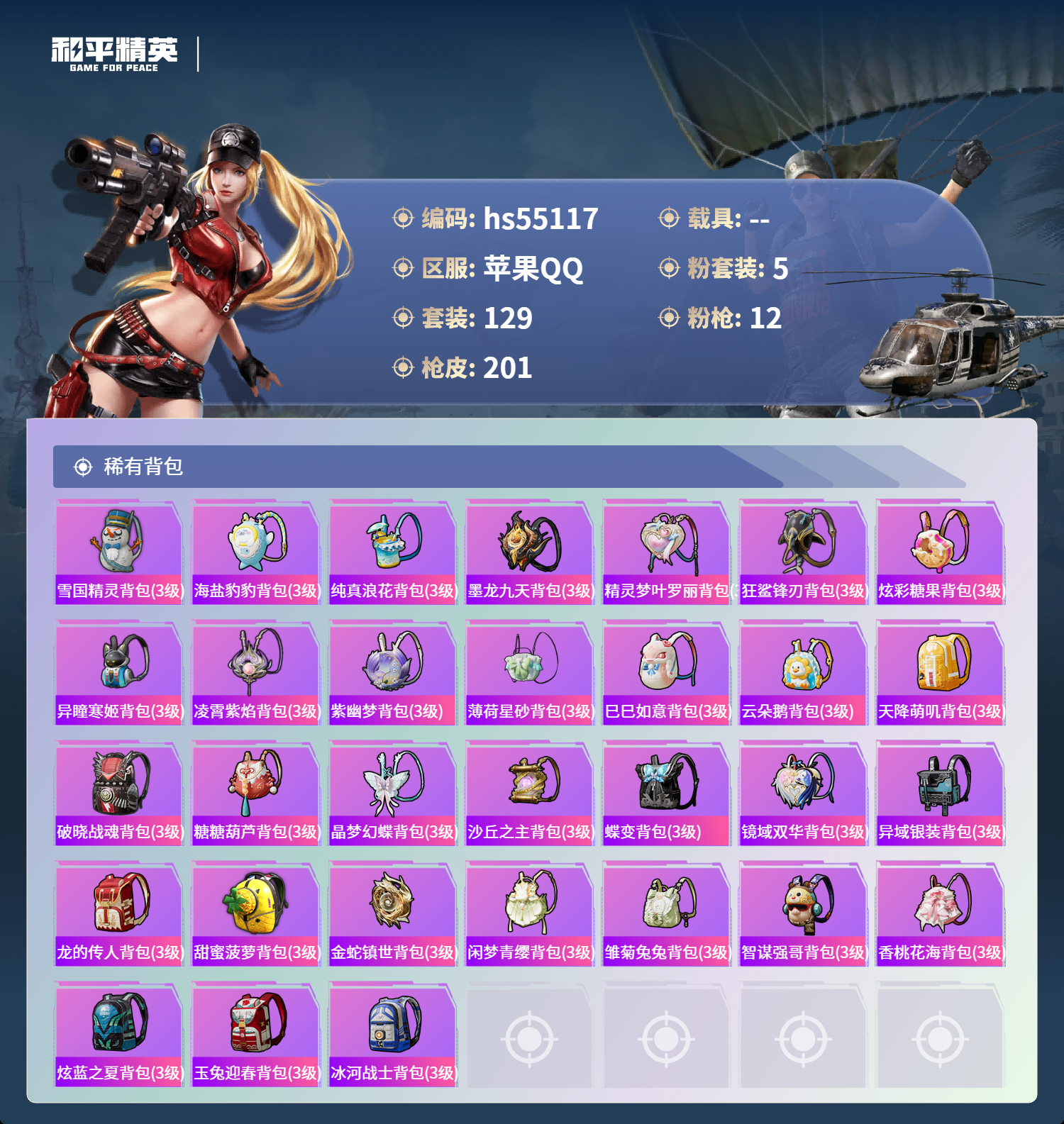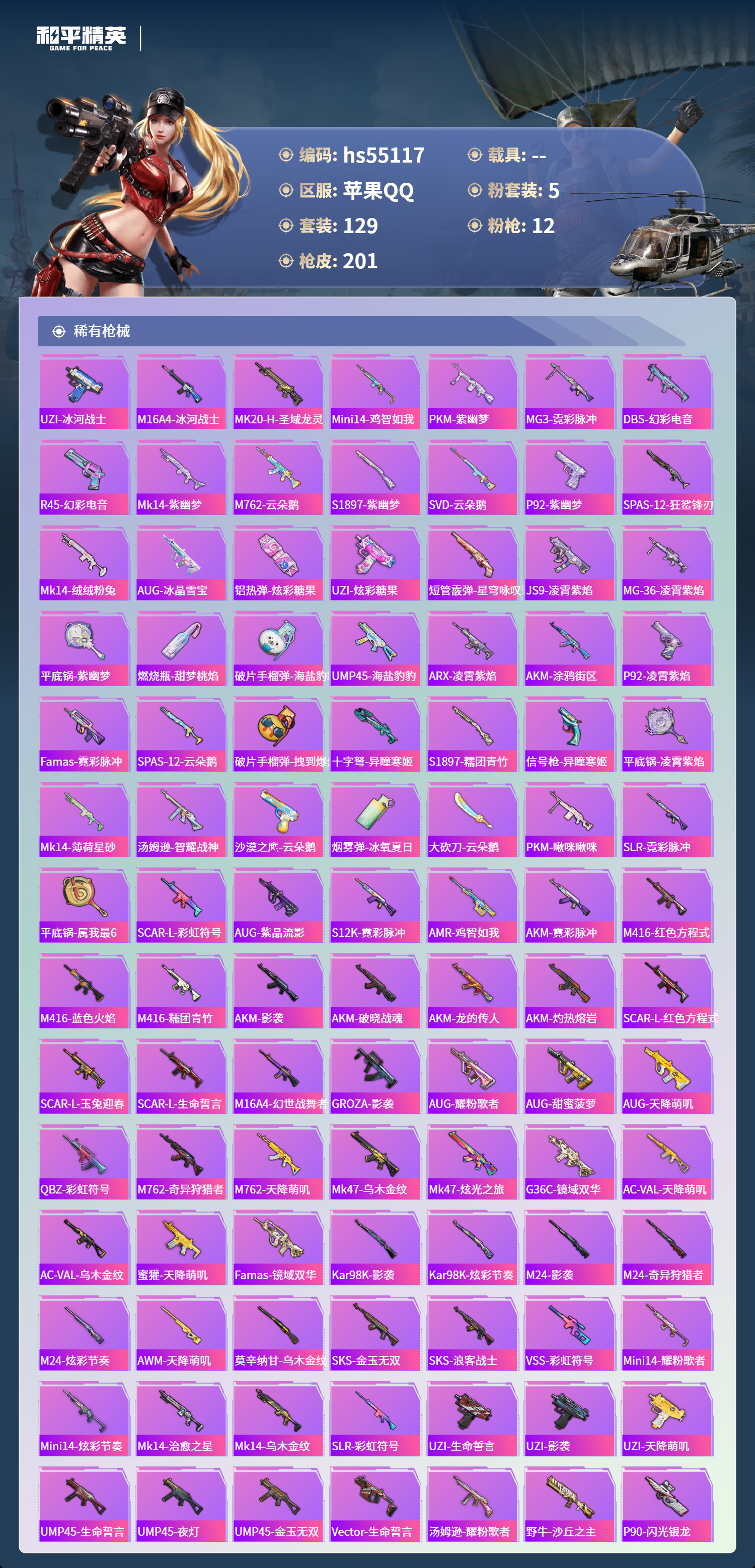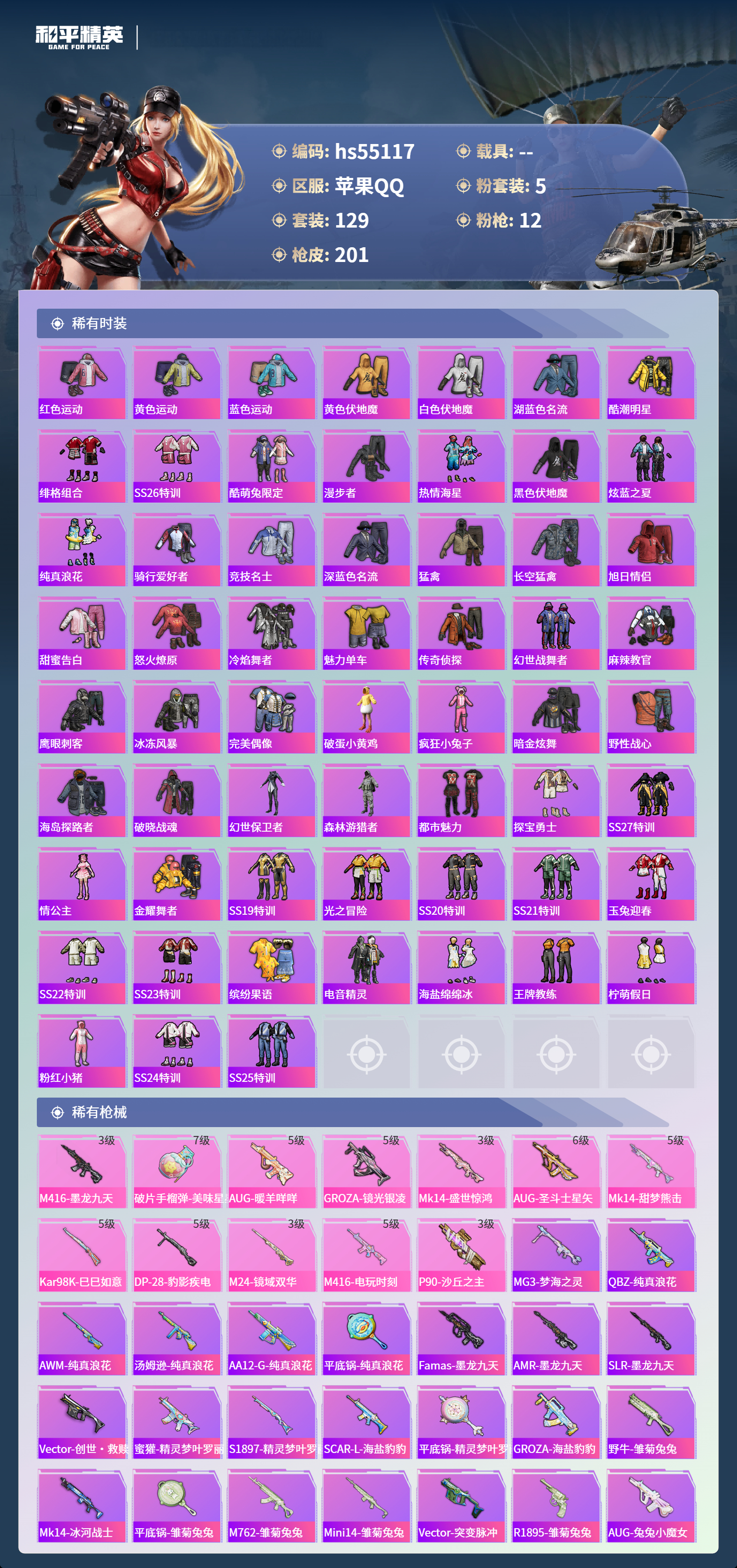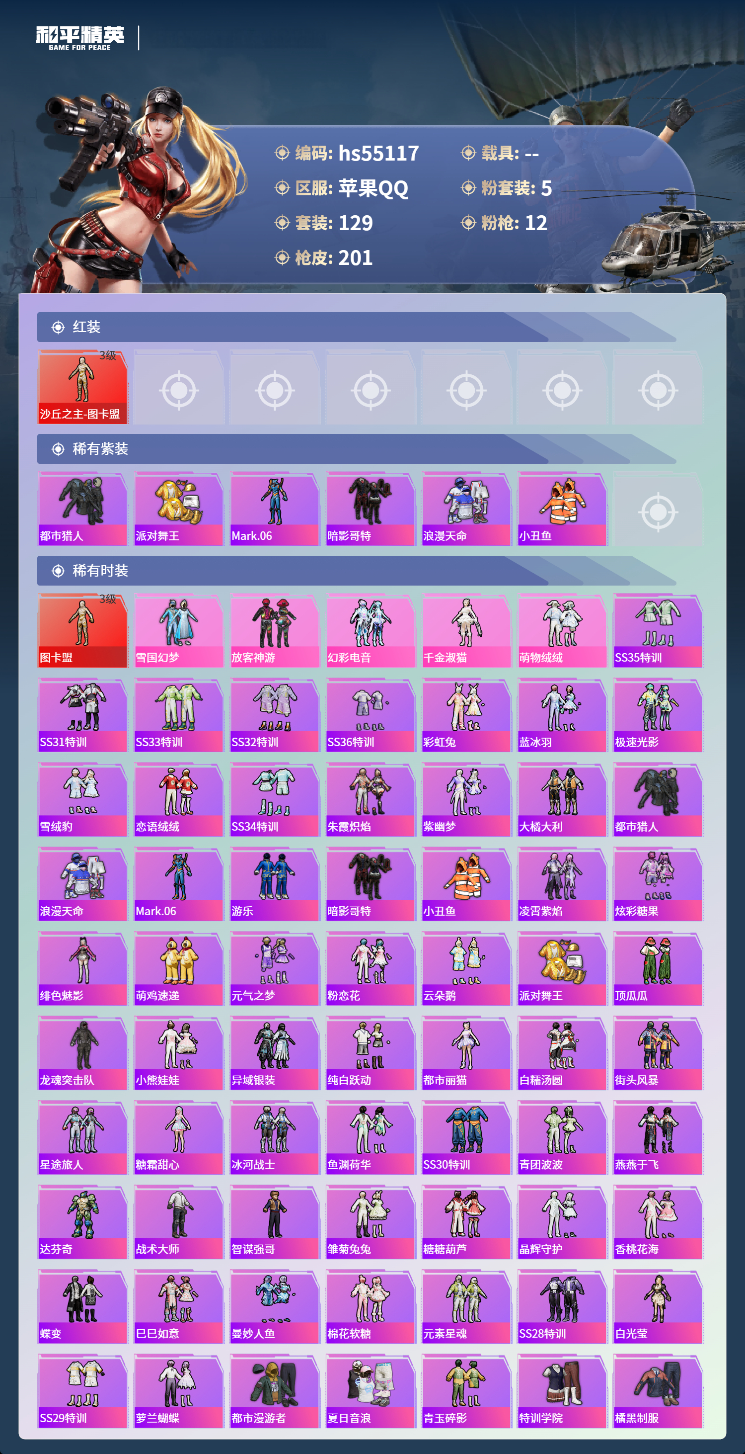 hs55117 苹果手q-11王牌印记-1红装-5粉装-12特效呛-63022热力值-129套装-201呛皮-3卓越印记【1红装】沙丘之主-图卡盟/3级【5粉装】套装-幻彩电音套装-放客神游套装-雪国幻梦角色-千金淑猫套装-萌物绒绒【12特效呛】破片手留单-美味星星糖/7级aug-圣斗士星矢/6级m24-镜域双华/3级m416-电玩时刻/5级p90-沙丘之主/3级mk14-