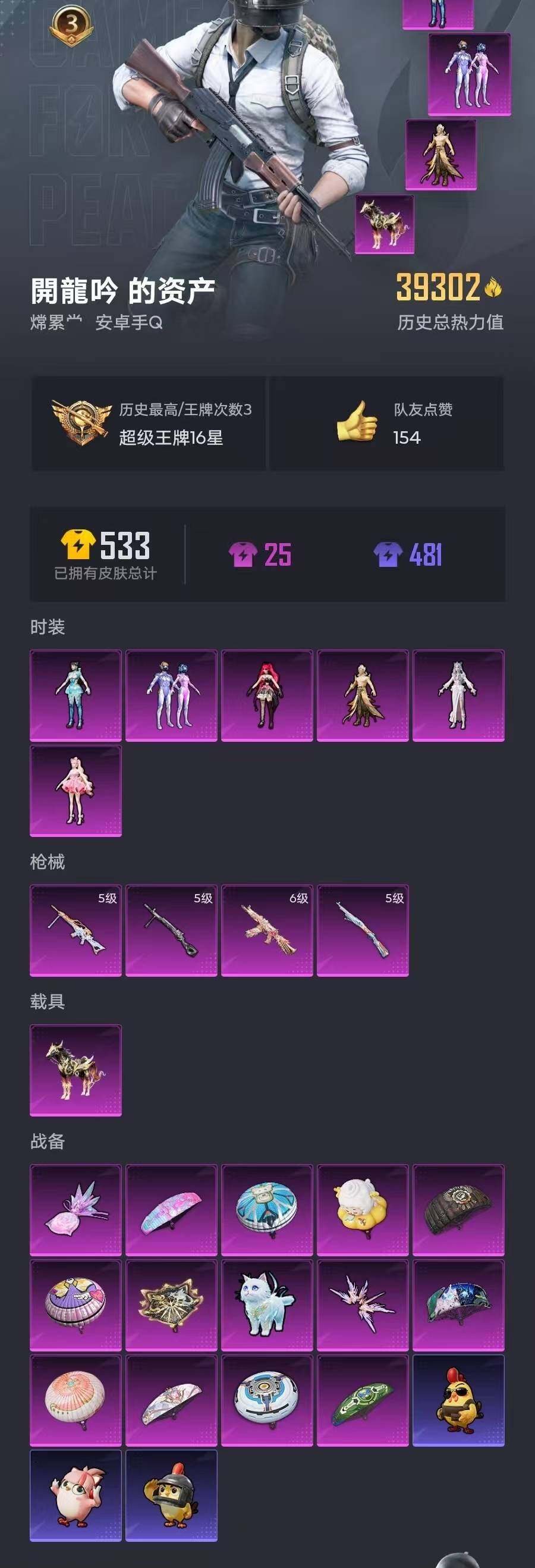 6247-6粉装-4特效呛-1载具-3粉色飞行器-39337热力值-3王牌印记-92套装-133呛皮 【热门品类】:粉装-梦幻火箭,套装-小丑鱼,角色-军刀雅典娜 【粉色套装】:粉装-梦幻火箭,角色-樱桃泡泡,角色-冷漠罗丽,角色-罗征,角色-绯穹魔姬,角色-异瞳寒姬 【粉色呛皮等级】:aks-