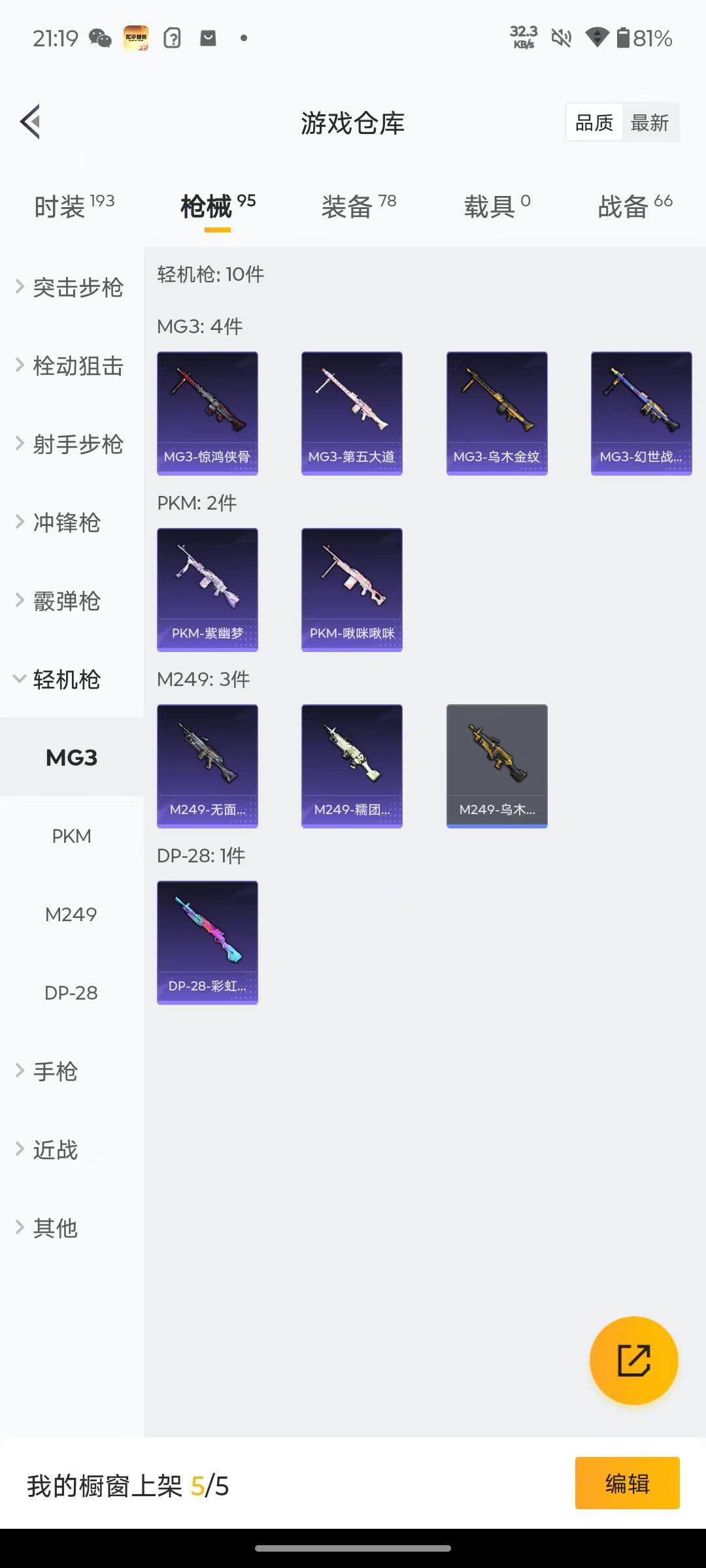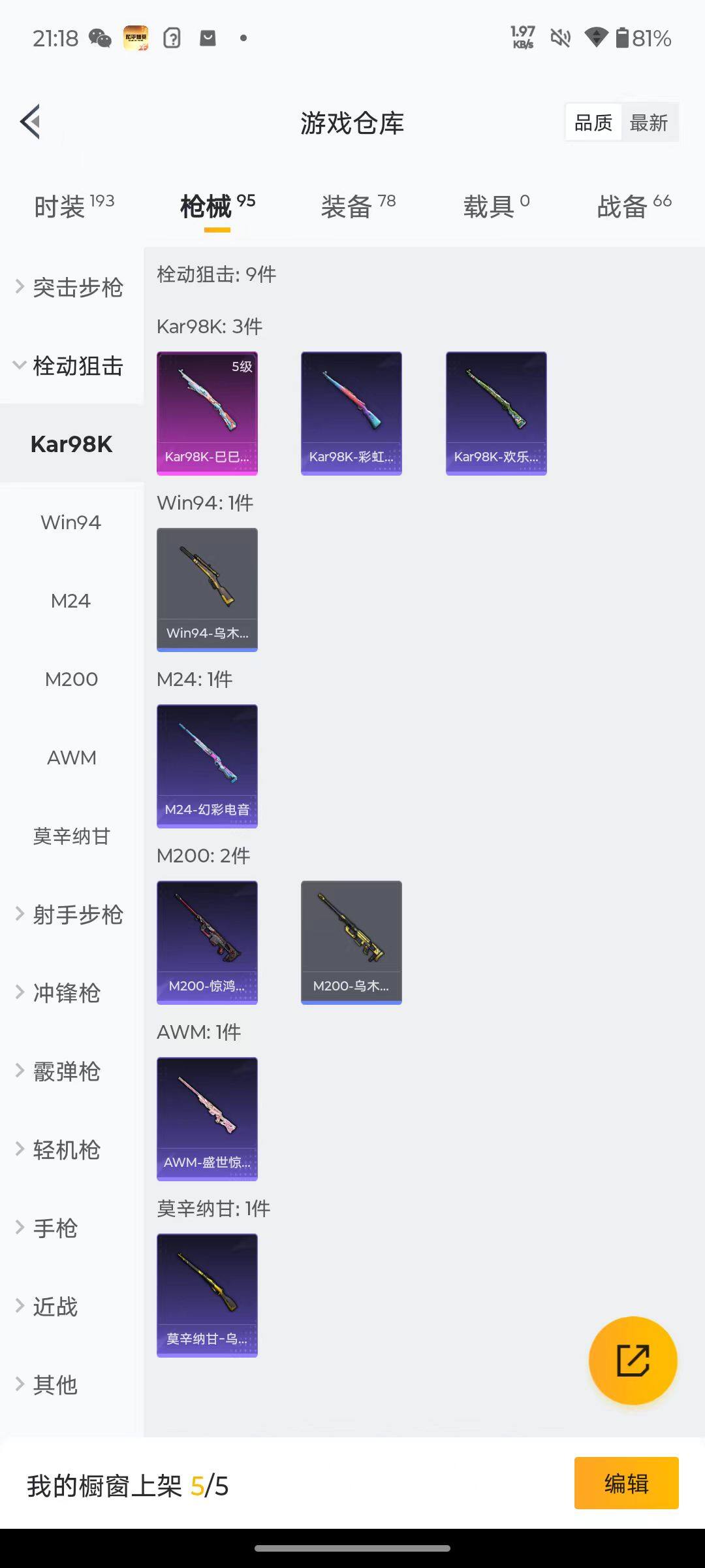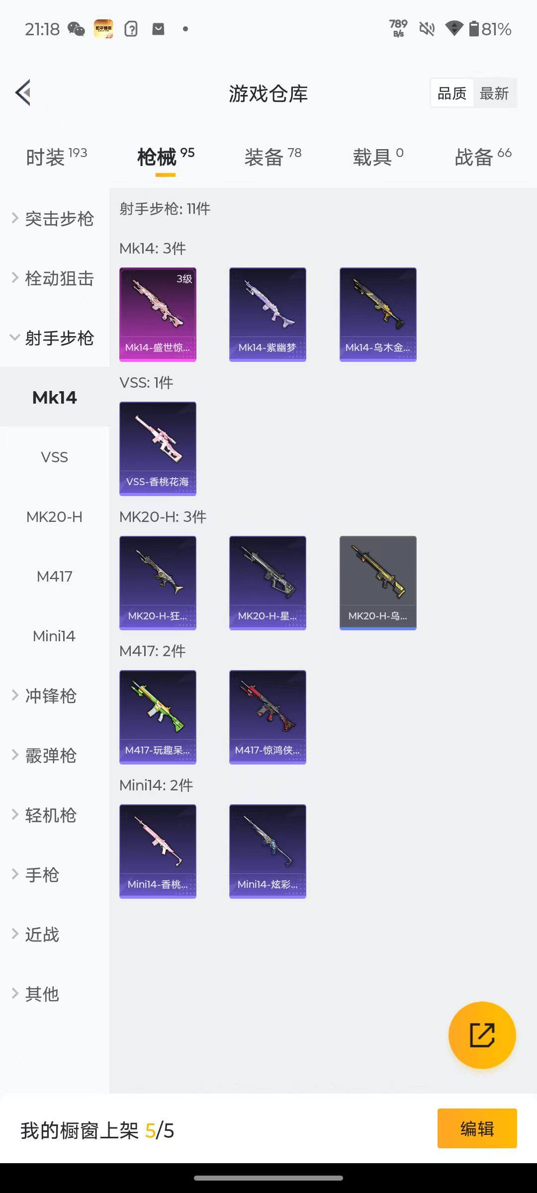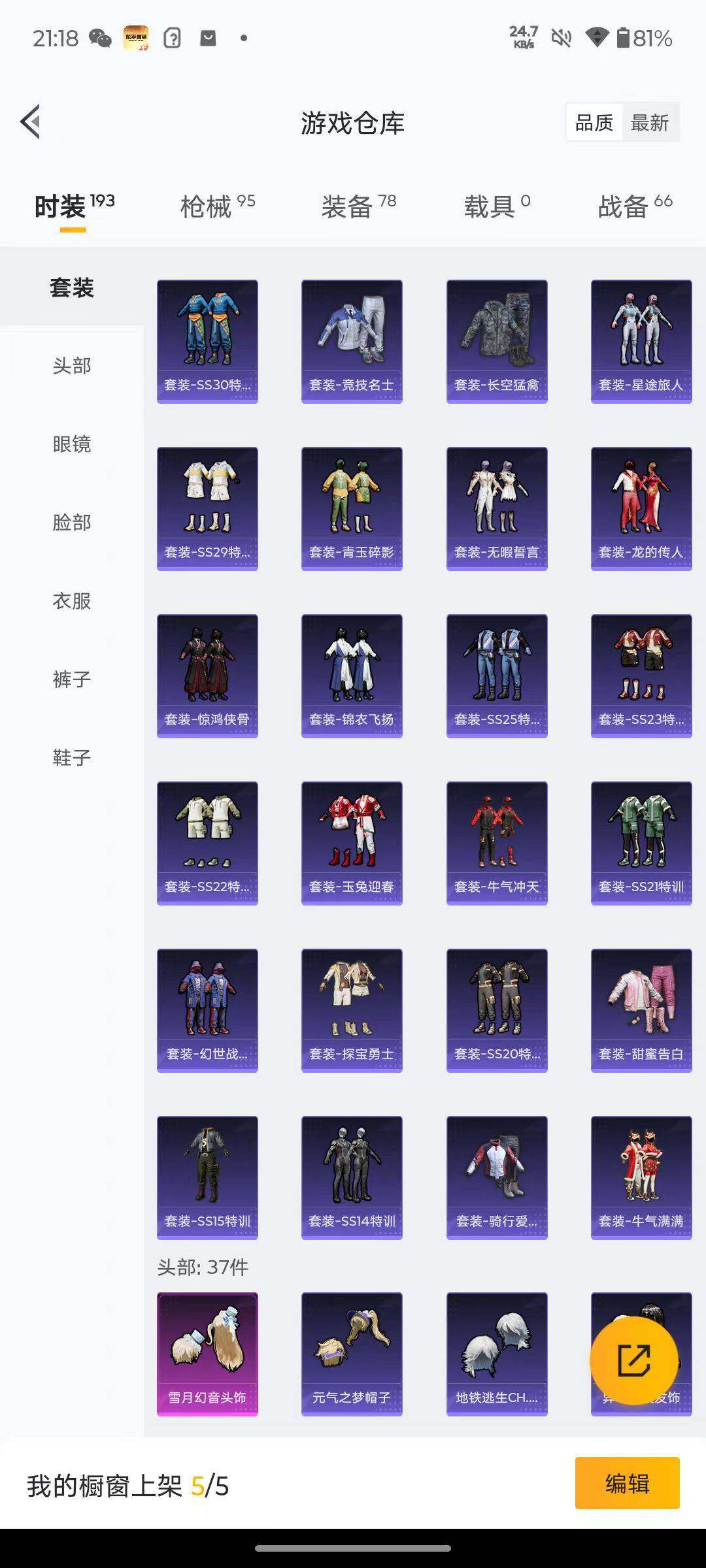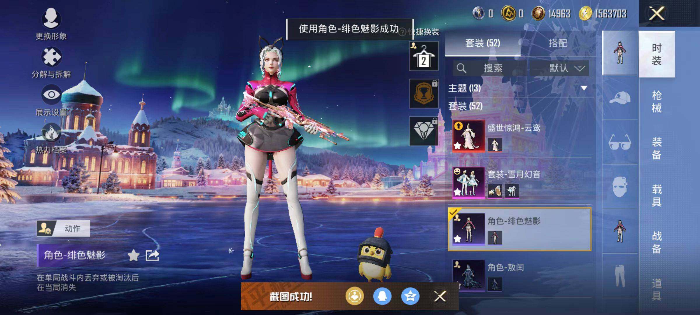 62491神装-1粉装-2特效呛-0载具-3粉色飞行器-27373热力值-8王牌印记-52套装-95呛皮 【红色神装等级】:盛世惊鸿-云鸾二级 【红色角色神装】:盛世惊鸿-云鸾 【粉色套装】:粉装-雪月幻音 【粉色呛皮等级】:kar98k-巳巳如意五级,mk14-盛世惊鸿三级 【粉色