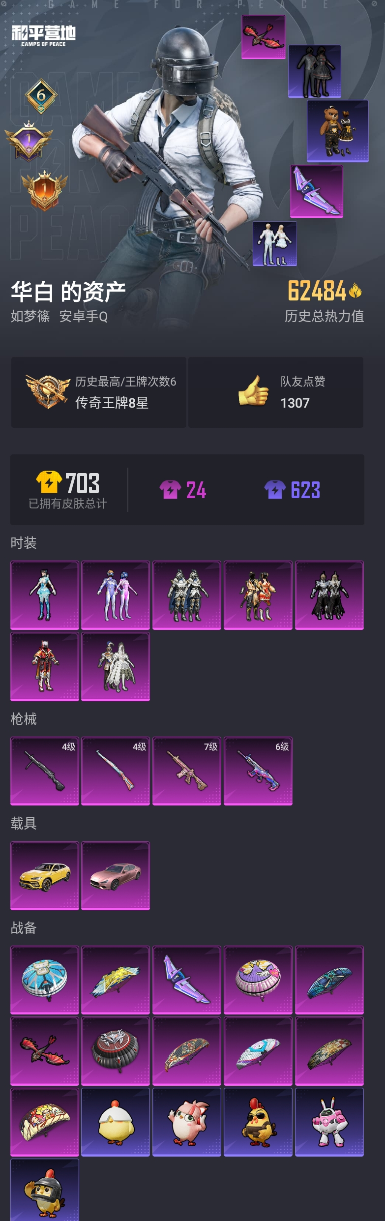 【和平精英】【lyhp18979】7粉装4特效呛2载具 火箭 满级m4心之恋语 满级死噶 浪漫芭比 粉玛莎 7粉装,4特效呛,2载具,历史最高段位:传奇王牌8星 王牌印记6次 热力值:63004,150套装,201呛械,208装备,115战备;套装:套装-梦幻火箭,套装-冰霜白皇,套装-桀骜红莲,套装-葫芦兄弟,套装-银龙傲海,套装-骨龙祭渊,角色-异瞳寒姬,套装-白色伏地魔,套装-黑色伏地魔,套装-骑行爱好者,套装-冰川格斗者,套装-竞技名士,套装-猛禽,套装-棕色飞行服,套装-野性山猫,套装-长空猛禽,套装-竞技勇士朋克,套装-蓝色守护者,套装-破晓情侣,套装-冷焰舞者,套装-特战装甲,套装-战地菁英,套装-灰色格斗者,套装-甜蜜告白,套装-燃烧卡路里,套装-幻影武者,套装-酷萌兔限定,套装-神秘领域,套装-怒火燎原,套装-魅力单车,套装-雪山征服者,套装-坚韧舞者,套装-夜莺强袭者,套装-野性战魂,套装-破晓战魂,套装-ss1特训,套装-热血青春,套装-丛林猎人,套装-ss2特训,套装-雪山精英,套装-幻世战舞者,套装-奇趣章鱼,套装-甜蜜菠萝,套装-缤纷果语,套装-冰川特警,套装-极速红龙,套装-海上生明月,套装-ss3特训,套装-ss4特训,套装-梦魇先生,套装-万圣娃娃,套装-黑夜传说,套装-破蛋小黄鸡,套装-疯狂小兔子,套装-迷域探索者,套装-机械英豪,套装-机械征服者,套装-ss5特训,套装-圣诞大吉,套装-冰原使者,套装-凛冬战士,套装-好奇恐龙,套装-爆竹金鼠,套装-浪漫波比,套装-军械专家,套装-北国孤狼,套装-ss6特训,套装-ss7特训,套装-核芯基因,套装-精神漫游,套装-鹤鸣,套装-霓虹街区,套装-暗夜契约,套装-软嫩糖心蛋,套装-ss10特训,套装-ss8特训,套装-大橘为重,套装-萌黄之夏,套装-风华少年志,套装-白月香洋装,套装-牛气满满,套装-白糯汤圆,套装-韶华初心,套装-ss11特训,套装-潮流游乐家,套装-青龙圣者,套装-朱雀圣者,套装-白虎圣者,套装-原初圣火,套装-逆风勇士,套装-战术大师,套装-ss12特训,套装-镭射皇者,套装-银白舞王,套装-耀粉歌者,套装-飞行日记,套装-ss13特训,套装-ss14特训,套装-天籁歌者,角色-欧布奥特曼,套装-ss15特训,套装-ss16特训,套装-暴风机械师,套装-时空追击者,套装-星辰守护者,套装-暗夜魅影,套装-ss17特训,套装-瑞龙福将,套装-团圆交子,套装-福星高照,套装-虎虎生威吉莉,套装-光之冒险,套装-绯格组合,套装-神气柴柴,套装-懵萌河马,套装-王牌教练,套装-柠萌假日,套装-青玉碎影,套装-ss24特训,套装-涂山之恋,套装-ss25特训,套装-惊鸿侠骨,套装-锦衣飞扬,套装-ss26特训,套装-快闪甜心,套装-春光漫游,套装-明鸳圣池,套装-云魄琉璃,套装-幻羽潜行,套装-恋语绒绒,套装-异域银装,套装-ss30特训,套装-小鸟芋圆,套装-ss31特训,套装-紫幽梦,套装-ss33特训,套装-ss32特训,套装-蓝冰羽,套装-顶瓜瓜,套装-大橘大利,套装-星渊小夜曲,套装-ss34特训,套装-薄荷星砂,套装-ss35特训,套装-午间小调,套装-风迹短诗,套装-琴音绮想,套装-画境星梦,套装-ss36特训,套装-雪国风尚;呛皮:m16a4-红色方程式,m16a4-夜灯,m16a4-机械英豪,m16a4-乌木金纹,7级m416-心之恋语,m416-蓝色火焰,m416-红色方程式,m416-糯团青竹,m416-乌木金纹,mk47-粉色回忆,mk47-风迹短诗,ac-val-乌木金纹,ac-val-天降萌叽,ac-val-快闪甜心,6级scar-l-机甲封神,scar-l-红色方程式,scar-l-炫彩节奏,scar-l-乌木金纹,g36c-不夜海上花,g36c-时空追击者,g36c-暗夜玫瑰,g36c-懵萌河马,g36c-桃粉嫣然,g36c-星穹咏叹调,g36c-乌木金纹,q-诡娃娃,q-银河战甲,q-原初圣火,q-彩虹符号,aug-耀粉歌者,aug-青春冒险家,aug-闲梦青缨,aug-异域银装,aug-冰晶雪宝,aug-乌木金纹,m762-诡娃娃,m762-牛气冲天,m762-镭射皇者,m762-瑞龙福将,m762-天降萌叽,m762-乌木金纹,akm-灼热熔岩,akm-玉龙,akm-破晓战魂,akm-四圣焕新,akm-萌趣颜团子,akm-虎虎生威,akm-龙的传人,akm-乌木金纹,groza-生命誓言,groza-黑色刀锋,groza-懵萌河马,groza-乌木金纹,蜜獾-鸡智如我,蜜獾-风迹短诗,蜜獾-乌木金纹,ace32-画境星梦,famas-乌木金纹,4级kar98k-巳巳如意,kar98k-红色方程式,kar98k-梦幻火箭,kar98k-勇闯险境,kar98k-乌木金纹,awm-不夜海上花,awm-焰鹰斗篷,awm-乌木金纹,win94-机械英豪,win94-瑞龙福将,win94-乌木金纹,莫辛纳甘-懵萌河马,莫辛纳甘-风迹短诗,amr-鸡智如我,amr-乌木金纹,m200-惊鸿侠骨,m200-乌木金纹,m24-冰封烈焰,sks-诡娃娃,sks-夜灯,sks-勇闯险境,sks-时空追击者,sks-乌木金纹,m417-惊鸿侠骨,m417-玩趣呆呆,mk20-h-快闪甜心,mk20-h-乌木金纹,m1加兰德-画境星梦,qbu-不夜海上花,qbu-青春冒险家,mini14-金鼠迎春,mini14-梦幻火箭,mini14-原初圣火,mini14-炫彩节奏,mini14-耀粉歌者,mini14-林间仙鹿,mini14-涂山之恋,mini14-乌木金纹,mk14-山经魅狐,mk14-紫幽梦,vss-黑色刀锋,vss-繁花小夜曲,vss-镭射皇者,vss-星之彼岸,vss-乌木金纹,mk12-风迹短诗,mk12-乌木金纹,slr-四圣焕新,vect-生命誓言,vect-彩虹符号,野牛-机械英豪,野牛-青春冒险家,aks-74u-鬼刀,aks-74u-乌木金纹,p90-快闪甜心,p90-巳巳如意,p90-乌木金纹,uzi-生命誓言,uzi-幻影战神,uzi-炫彩节奏,uzi-天降萌叽,uzi-啾咪啾咪,uzi-炫彩糖果,uzi-乌木金纹,汤姆逊-勇闯险境,汤姆逊-林间仙鹿,汤姆逊-乌木金纹,ump45-生命誓言,ump45-诡娃娃,ump45-荒野猎神,ump45-时空追击者,ump45-海盐豹豹,mp5k-梨园星光,mp5k-焰龙焚天,mp5k-画境星梦,s1897-勇闯险境,s1897-镭射皇者,s1897-紫幽梦,s1897-糯团青竹,s1897-乌木金纹,dbs-时空追击者,dbs-彩虹符号,dbs-风迹短诗,s686-奇异狩猎者,s686-冰封烈焰,s686-不夜海上花,s686-葫芦兄弟,s686-乌木金纹,a