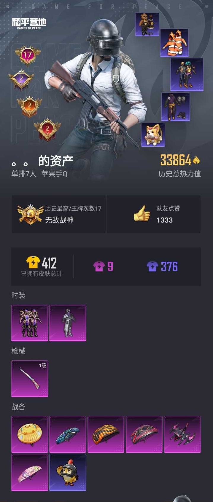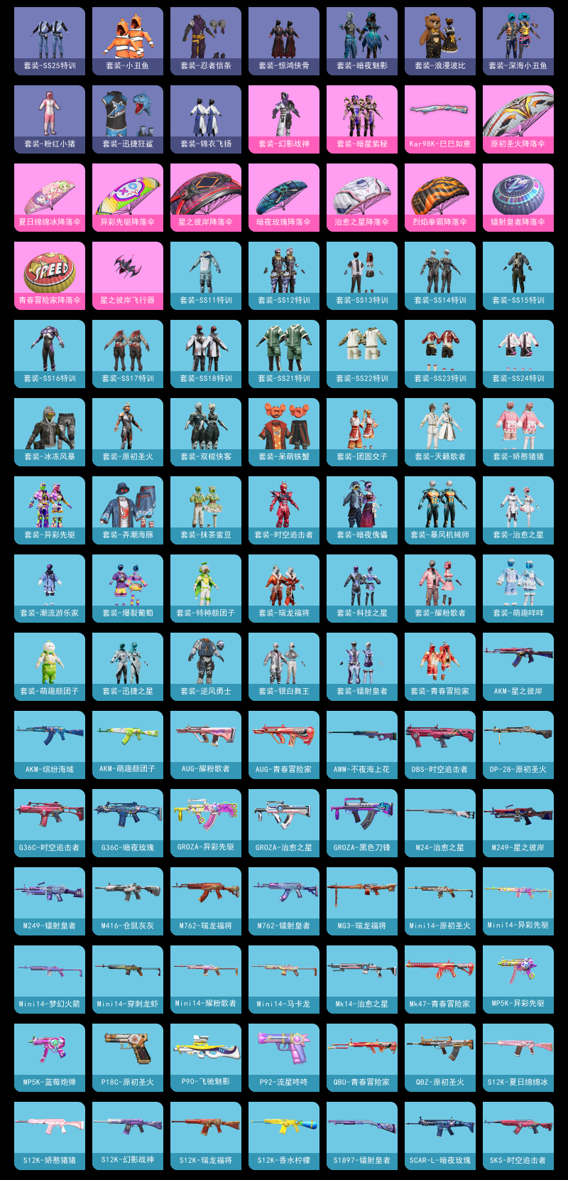 【和平精英】【lyhp18991】ss14-ss24六个赛季无敌战神 17高印记2绝世 3w3热力值精品小号 2粉装1特效呛 幻影战神 小丑鱼 浪漫波比 2粉装,1特效呛,0载具,历史最高段位:无敌战神 王牌印记17次 热力值:33864,77套装,134呛械,116装备,67战备;套装:套装-幻影战神,套装-暗星紫秘,套装-红色运动,套装-白色伏地魔,套装-竞技名士,套装-雨林探路者,套装-特战装甲,套装-灰色格斗者,套装-龙腾端午,套装-冰冻风暴,套装-神秘领域,套装-怒火燎原,套装-极地朋克,套装-弄潮海豚,套装-迅捷狂鲨,套装-呆萌铁蟹,套装-深海小丑鱼,套装-缤纷果语,套装-龙魂突击队,套装-冰川特警,套装-忍者信条,套装-海上生明月,套装-小丑鱼,套装-粉红小猪,套装-破蛋小黄鸡,套装-浪漫波比,套装-萌黄之夏,套装-抹茶蜜豆,套装-牛气满满,套装-ss11特训,套装-青春冒险家,套装-潮流游乐家,套装-原初圣火,套装-逆风勇士,套装-萌趣颜团子,套装-特种颜团子,套装-战术大师,套装-ss12特训,套装-ss18特训,套装-镭射皇者,套装-银白舞王,套装-耀粉歌者,套装-迅捷之星,套装-治愈之星,套装-科技之星,套装-ss13特训,套装-双棍侠客,套装-ss14特训,套装-天籁歌者,套装-吉莉礼服,套装-ss15特训,套装-ss16特训,套装-暴风机械师,套装-时空追击者,套装-暗夜魅影,套装-暗夜傀儡,套装-ss17特训,套装-瑞龙福将,套装-团圆交子,套装-爆裂葡萄,套装-福星高照,套装-虎虎生威吉莉,套装-异彩先驱,套装-霓虹极客,套装-ss21特训,套装-萌趣咩咩,套装-娇憨猪猪,套装-ss22特训,套装-ss23特训,套装-ss24特训,套装-龟仙人,套装-ss25特训,套装-惊鸿侠骨,套装-锦衣飞扬,套装-冰河战士,套装-ss31特训,套装-ss32特训;呛皮:akm-生命誓言,akm-缤纷海域,akm-破晓战魂,akm-霓虹街区,akm-夜灯,akm-星之彼岸,akm-彩虹符号,akm-萌趣颜团子,akm-虎虎生威,akm-龙的传人,mk47-青春冒险家,mk47-乌木金纹,m762-牛气冲天,m762-镭射皇者,m762-瑞龙福将,m762-天降萌叽,m762-能量风暴,scar-l-红色方程式,scar-l-炫彩节奏,scar-l-暗夜玫瑰,scar-l-玉兔迎春,m416-蓝色火焰,m416-红色方程式,m416-仓鼠灰灰,m416-糯团青竹,q-原初圣火,q-彩虹符号,groza-黑色刀锋,groza-治愈之星,groza-彩虹符号,groza-异彩先驱,g36c-时空追击者,g36c-暗夜玫瑰,g36c-乌木金纹,aug-耀粉歌者,aug-青春冒险家,aug-天降萌叽,蜜獾-娇憨猪猪,蜜獾-垂柳戏鸭,m16a4-蓝色火焰,m16a4-红色方程式,m16a4-幻世战舞者,m16a4-冰河战士,1级kar98k-巳巳如意,kar98k-红色方程式,kar98k-彩虹符号,kar98k-乌木金纹,莫辛纳甘-乌木金纹,m24-治愈之星,m24-能量风暴,awm-不夜海上花,awm-乌木金纹,m200-惊鸿侠骨,win94-瑞龙福将,qbu-青春冒险家,mini14-穿刺龙虾,mini14-梦幻火箭,mini14-原初圣火,mini14-马卡龙,mini14-耀粉歌者,mini14-异彩先驱,mk14-治愈之星,mk14-冰河战士,m417-惊鸿侠骨,vss-镭射皇者,vss-星之彼岸,vss-乌木金纹,sks-迅猛狂鲨,sks-炫彩节奏,sks-时空追击者,slr-娇憨猪猪,vect-生命誓言,vect-夜灯,vect-彩虹符号,vect-治愈之星,vect-香水柠檬,vect-暗夜玫瑰,汤姆逊-幻影战神,汤姆逊-耀粉歌者,汤姆逊-异彩先驱,汤姆逊-乌木金纹,ump45-蓝色火焰,ump45-粉色回忆,ump45-时空追击者,p90-飞驰魅影,p90-乌木金纹,mp5k-蓝莓炮弹,mp5k-异彩先驱,uzi-红色方程式,uzi-炫彩节奏,uzi-烈焰拳霸,uzi-娇憨猪猪,uzi-冰河战士,野牛-青春冒险家,野牛-乌木金纹,s12k-幻影战神,s12k-破晓战魂,s12k-夏日绵绵冰,s12k-香水柠檬,s12k-瑞龙福将,s12k-娇憨猪猪,s12k-玩趣呆呆,s1897-镭射皇者,s1897-乌木金纹,s686-红色方程式,s686-冰封烈焰,s686-巳巳如意,dbs-时空追击者,mg3-瑞龙福将,mg3-乌木金纹,mg3-惊鸿侠骨,dp-28-清新柠檬,dp-28-原初圣火,m249-破晓战魂,m249-镭射皇者,m249-星之彼岸,m249-彩虹符号,m249-乌木金纹,pkm-啾咪啾咪,p92-流星咚咚,p18c-原初圣火,平底锅-原初圣火,平底锅-镭射皇者,平底锅-治愈之星,平底锅-青春冒险家,平底锅-时空追击者,平底锅-瑞龙福将,平底锅-异彩先驱,平底锅-娇憨猪猪,平底锅-光之冒险,平底锅-惊鸿侠骨,大砍刀-粉色回忆,爆炸猎弓-惊鸿侠骨,破片手留单-萌趣颜团子;降落伞:星之彼岸飞行器,粉色滑翔尾迹,红色滑翔尾迹; 详情看图