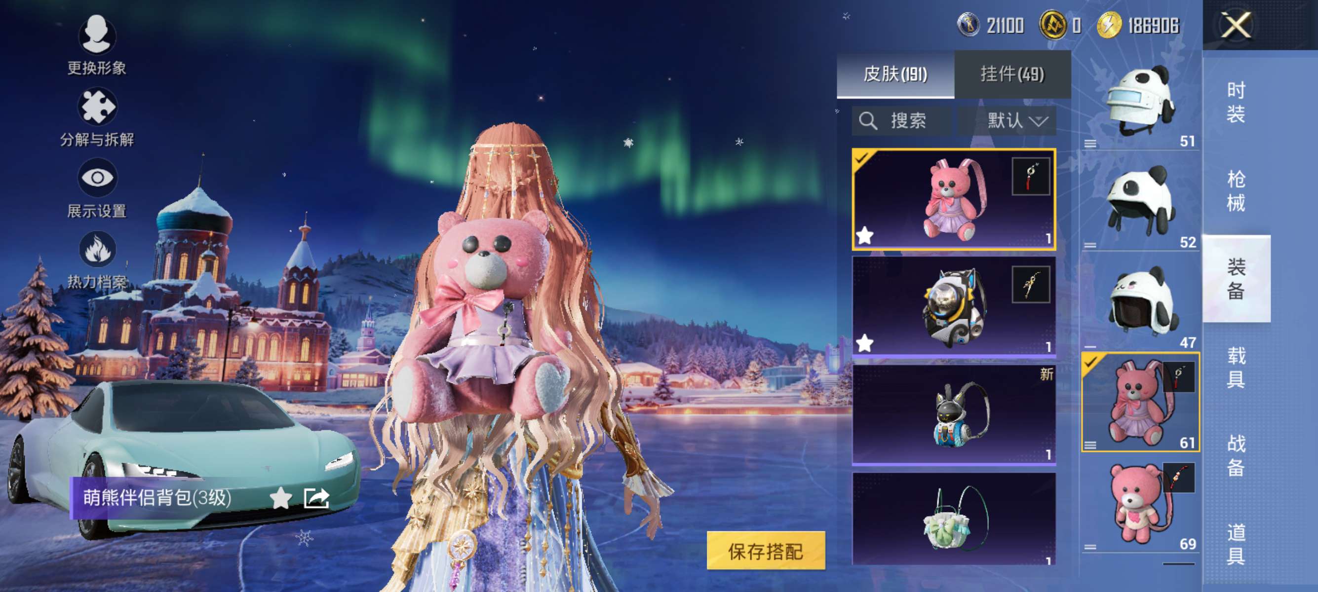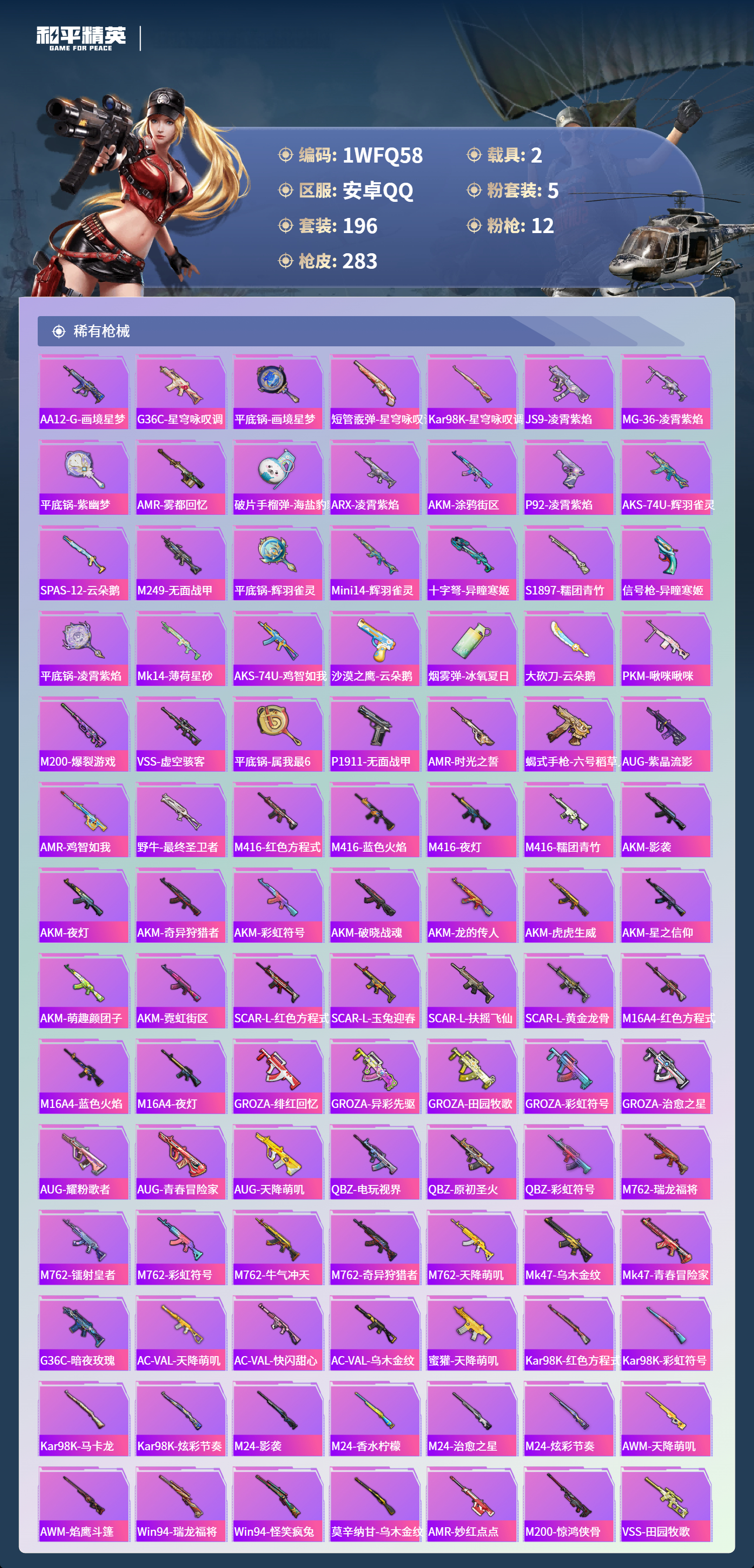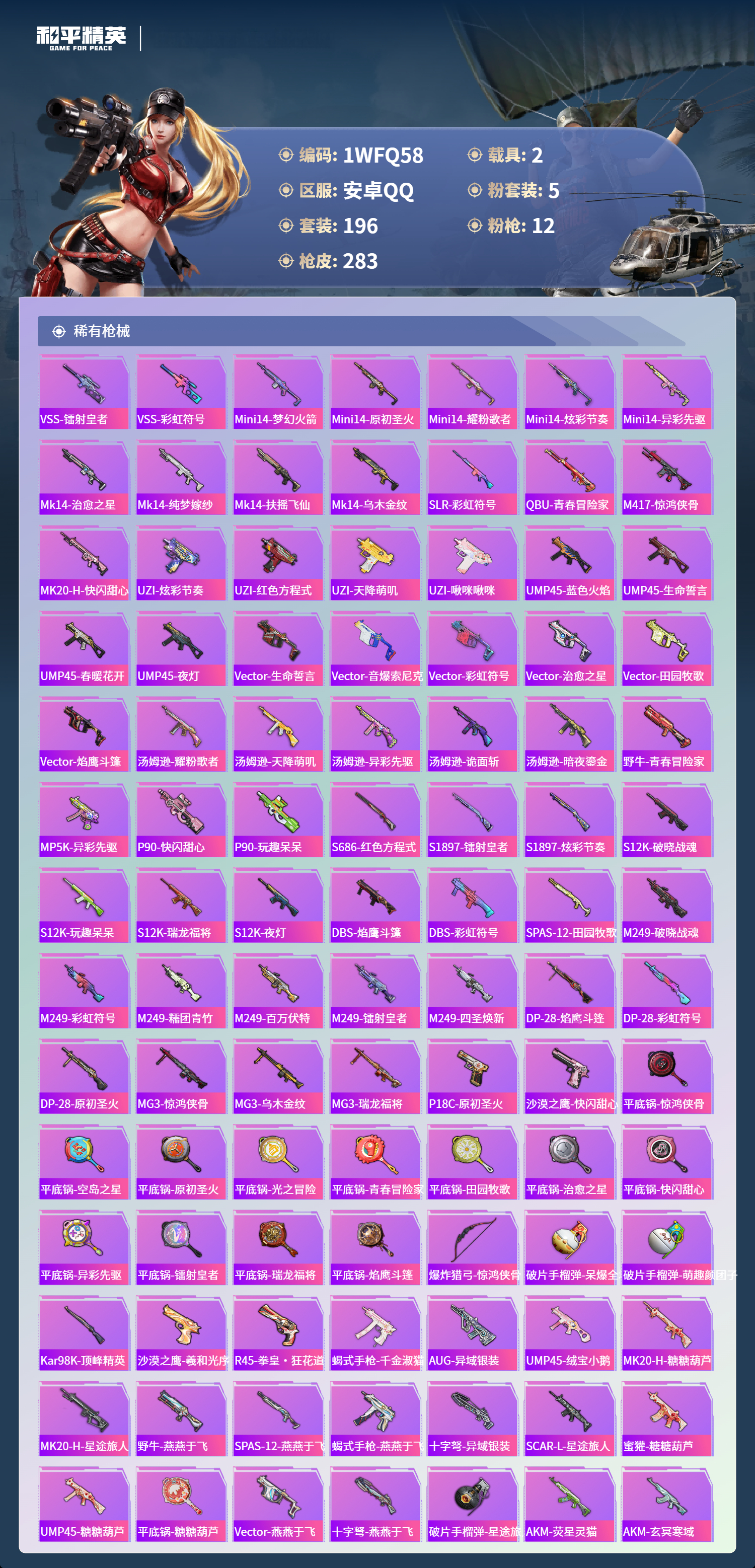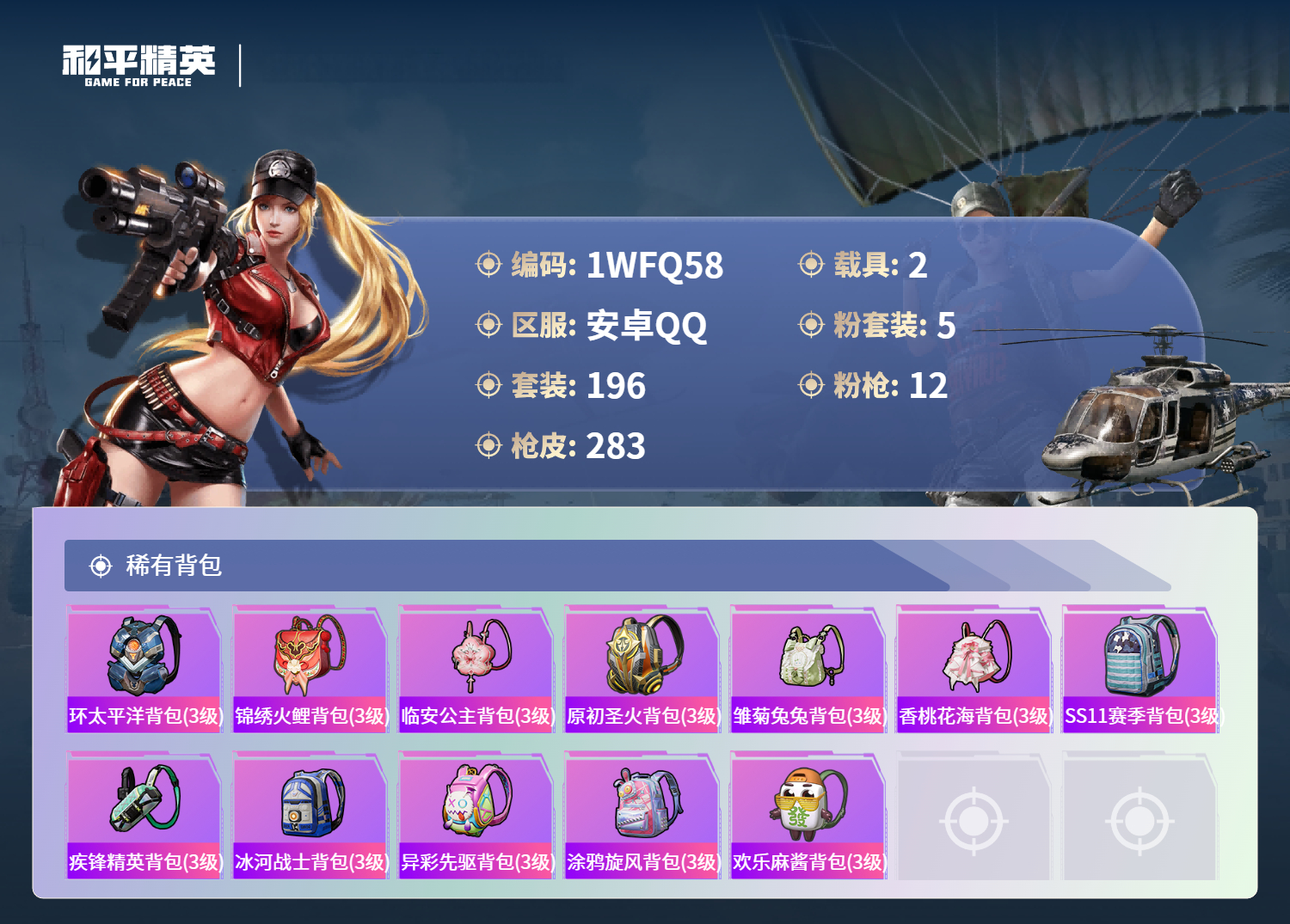 2载具-196套装-283呛皮-5级aug圣斗士-胖达头盔-粉熊背包-红眼罩-5粉12特2车-地铁满天赋