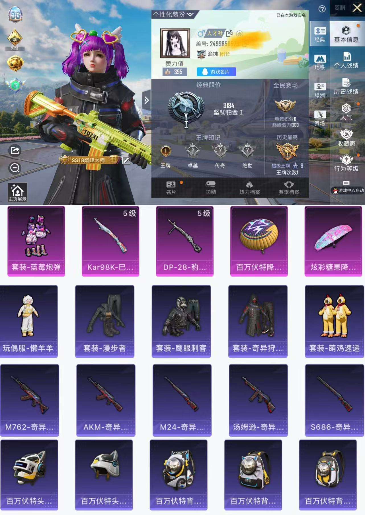 0载具-84套装-88呛皮-hx8037【2特效呛1粉装1稀有-百万福特背包全套-奇异狩猎者-m416动感兔斯基-奇异狩猎者-身法素材号】可二次苹果q-1稀有1粉装2特效呛9热门84套装88呛皮 24665热力值 1印记 历史超级王牌9星 【1稀有】 奇异狩猎者 【1粉装】 蓝莓炮弹 【2特效呛】 kar98k-巳巳如意 5级 dp-28-豹影疾电 5级 【9热门】 鹰眼刺客 团圆交子 瑞龙福