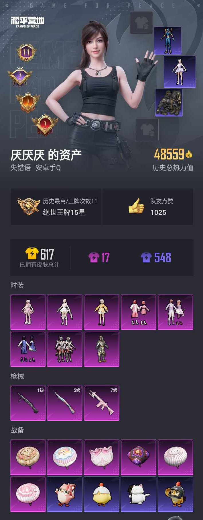 【和平精英】【lyhp19329】高印记 4w热力值 8粉装3特效呛 羊梦糖心 千金淑猫 呆萌星妳 都市丽猫 金羽特工 满级m417第五大道 8粉装,3特效呛,0载具,历史最高段位:绝世王牌15星 王牌印记11次 热力值:48559,165套装,160呛械,169装备,95战备;套装:套装-金曜白虎,套装-闪光银龙,角色-呆萌星弥,套装-瑰丽时代,套装-碧蓝澄空,套装-飒粉甜心,角色-千金淑猫,角色-羊梦糖心,套装-特训学院,套装-猎鹰,套装-青年教官,套装-红色运动,套装-黄色运动,套装-蓝色运动,套装-黄色伏地魔,套装-白色伏地魔,套装-黑色伏地魔,套装-骑行爱好者,套装-登山爱好者,套装-竞技名士,套装-深蓝色名流,套装-湖蓝色名流,套装-猛禽,套装-棕色飞行服,套装-长空猛禽,套装-竞技勇士朋克,套装-蓝色守护者,套装-时尚圣诞,套装-冷焰舞者,套装-灼焰舞者,套装-刚毅裁决者,套装-战地菁英,套装-战地督导,套装-黄色格斗者,套装-活力之心,套装-甜蜜告白,套装-战地名士,套装-滨海假日,套装-沙漠毒蛇,套装-苍穹猎鹰,套装-冰冻风暴,套装-完美偶像,套装-人气偶像,套装-幻影武者,套装-海滨突袭者,套装-特战英豪,套装-街头潮人,套装-蓝彩潮人,套装-决胜时刻,套装-魅力单车,套装-绮丽涂鸦,套装-耀眼新星,套装-雪山征服者,套装-坚韧舞者,套装-竞技达人朋克,套装-夜莺强袭者,套装-都市漫游者,套装-金羽特工,套装-破晓战魂,套装-ss1特训,套装-都市魅力,套装-s4赛事,套装-s5赛事,套装-沙漠兵团,套装-ss2特训,套装-雪山精英,套装-酷潮明星,套装-幻世战舞者,套装-青涩时光,套装-缤纷果语,套装-滨海厨神,套装-龙魂突击队,套装-极速红龙,套装-ss3特训,套装-东方飞龙,套装-ss4特训,套装-梦魇先生,套装-万圣娃娃,套装-黑夜传说,套装-破蛋小黄鸡,套装-疯狂小兔子,套装-阳光火鸡,套装-ss5特训,套装-圣诞大吉,套装-熔岩使者,套装-凛冬战士,套装-爱崽白熊,套装-北国孤狼,套装-ss6特训,套装-跃动心情,套装-ss7特训,套装-鹤鸣,套装-萌黄之夏,套装-夏日音浪,套装-牛气满满,套装-战术大师,套装-ss12特训,套装-ss18特训,套装-耀粉歌者,套装-ss13特训,套装-ss14特训,套装-ss15特训,套装-暗夜魅影,套装-ss17特训,套装-虎虎生威吉莉,套装-异彩先驱,套装-霓虹极客,套装-空投萌叽,套装-ss19特训,套装-飞驰魅影,套装-音速流光,套装-紫翼圣骑,套装-炫蓝之夏,套装-ss20特训,套装-粉团憨憨,套装-ss21特训,套装-ss23特训,套装-莱茵河畔,套装-香榭午后,套装-妙红点点,套装-幻彩翩翩,套装-王牌教练,套装-柠萌假日,套装-青玉碎影,套装-ss24特训,套装-荧惑魅影,套装-龟仙人,套装-涂山之恋,套装-香桃花海,套装-冰河战士,套装-恋语绒绒,角色-8号机,角色-mark.06,套装-街头风暴,套装-蝶变,角色-兔兔小魔女,套装-湖畔霞光,套装-小熊娃娃,套装-ss29特训,套装-雏菊兔兔,套装-萝兰蝴蝶,套装-异域银装,角色-都市丽猫,套装-星途旅人,套装-ss30特训,套装-ss31特训,套装-鱼渊荷华,套装-石蕴玉辉,套装-燕燕于飞,套装-ss33特训,套装-巳巳如意,套装-ss32特训,套装-大橘大利,角色-时希公主,套装-星影赞美诗,套装-元气之梦,套装-ss34特训,套装-擎苍青焰,套装-朱霞炽焰,套装-凌霄紫焰,套装-薄荷星砂,套装-ss35特训,套装-ss36特训,套装-雪国风尚,套装-萌鸡速递;呛皮:m762-生命誓言,m762-诡娃娃,m762-牛气冲天,m762-第五大道,m762-天降萌叽,m762-雏菊兔兔,m762-乌木金纹,groza-生命誓言,groza-异彩先驱,m16a4-红色方程式,m16a4-冰河战士,m16a4-千金淑猫,m16a4-乌木金纹,scar-l-生命誓言,scar-l-红色方程式,scar-l-黄金龙骨,scar-l-炫彩节奏,scar-l-星途旅人,scar-l-乌木金纹,mk47-乌木金纹,mk47-妙红点点,akm-灼热熔岩,akm-生命誓言,akm-破晓战魂,akm-涂鸦街区,akm-彩虹符号,akm-乌木金纹,aug-耀粉歌者,aug-天降萌叽,aug-兔兔小魔女,aug-异域银装,aug-乌木金纹,q-诡娃娃,q-飞驰魅影,m416-蓝色火焰,m416-红色方程式,m416-糯团青竹,m416-乌木金纹,ac-val-乌木金纹,ac-val-梦海之灵,ac-val-兔兔小魔女,arx-凌霄紫焰,g36c-荒野猎神,g36c-乌木金纹,蜜獾-乌木金纹,famas-乌木金纹,m24-冰封烈焰,m24-仲夏莫吉托,m24-乌木金纹,5级kar98k-巳巳如意,kar98k-红色方程式,kar98k-王子的夏天,kar98k-彩虹符号,kar98k-洛神天依,kar98k-飞驰魅影,kar98k-顶峰精英,amr-妙红点点,amr-白勺歌姬,amr-鬼刀,win94-畅跳缤纷,win94-乌木金纹,莫辛纳甘-乌木金纹,莫辛纳甘-兔兔小魔女,m200-乌木金纹,mk20-h-星途旅人,mk20-h-樱桃泡泡,mk20-h-乌木金纹,mk14-乌木金纹,mk14-冰河战士,sks-诡娃娃,sks-夜灯,sks-炫彩节奏,sks-乌木金纹,qbu-飒粉甜心,mini14-黄金龙骨,mini14-耀粉歌者,mini14-异彩先驱,mini14-香桃花海,mini14-雏菊兔兔,mini14-乌木金纹,vss-粉色回忆,vss-香桃花海,7级m417-第五大道,slr-金丰海韵,mk12-乌木金纹,ump45-蓝色火焰,ump45-生命誓言,ump45-诡娃娃,ump45-涂山之恋,ump45-海盐豹豹,ump45-乌木金纹,vect-生命誓言,vect-燕燕于飞,vect-乌木金纹,p90-飞驰魅影,p90-闪光银龙,p90-玩趣呆呆,js9-凌霄紫焰,aks-74u-乌木金纹,汤姆逊-耀粉歌者,汤姆逊-异彩先驱,汤姆逊-乌木金纹,野牛-雏菊兔兔,野牛-燕燕于飞,野牛-乌木金纹,uzi-生命誓言,uzi-冰河战士,mp5k-异彩先驱,s686-红色方程式,s686-未来战士,s686-生命誓言,s686-冰封烈焰,s686-白勺歌姬,s686-蜜语绒猫,s686-乌木金纹,s1897-飞驰魅影,dbs-暗星紫秘,dbs-第五大道,dbs-幻彩电音,s12k-破晓战魂,s12k-音爆索尼克,s12k-霓彩脉冲,spas-12-燕燕于飞,spas-12-狂鲨锋刃,spas-12-乌木金纹,m249-破晓战魂,m249-四圣焕新,m249-妙红点点,m249-金丰海