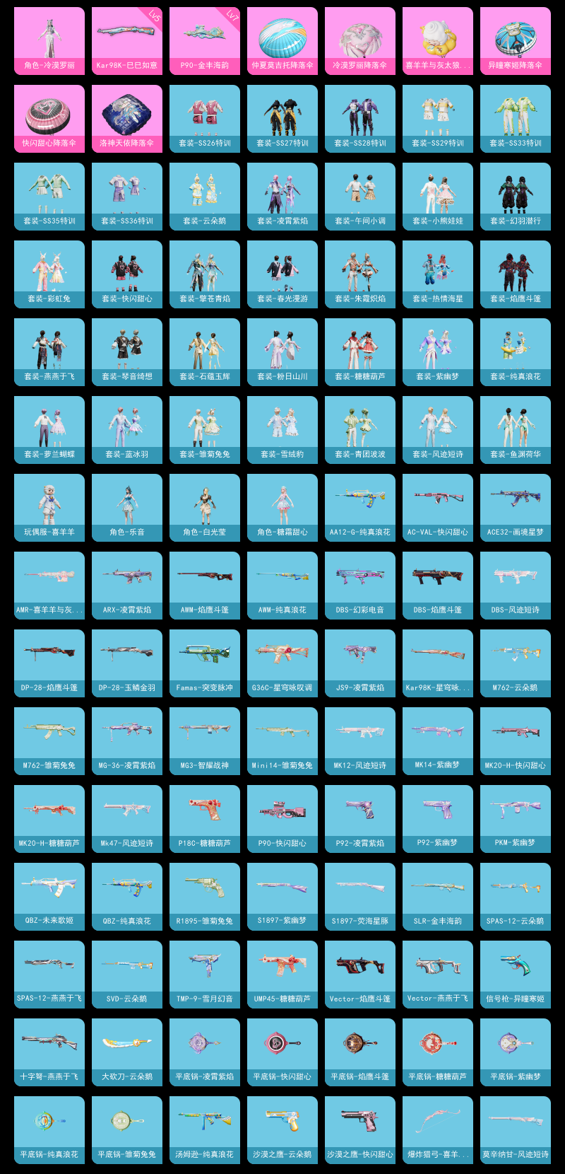 【和平精英】【lyhp19317】1粉装3特效呛 冷漠罗丽 满级p90金丰海韵 1粉装,3特效呛,0载具,历史最高段位:超级王牌9星 王牌印记8次 热力值:32050,65套装,120呛械,150装备,68战备;套装:角色-冷漠罗丽,套装-竞技名士,套装-长空猛禽,套装-魅力单车,套装-青涩时光,套装-缤纷果语,套装-滨海厨神,套装-龙魂突击队,套装-破蛋小黄鸡,套装-战术大师,套装-热情海星,套装-纯真浪花,套装-绯格组合,套装-柠萌假日,套装-青玉碎影,套装-龟仙人,套装-冰河战士,套装-ss26特训,套装-快闪甜心,套装-春光漫游,套装-焰鹰斗篷,套装-幻羽潜行,套装-ss27特训,套装-恋语绒绒,套装-ss28特训,角色-白光莹,套装-海盐绵绵冰,套装-蝶变,套装-粉日山川,套装-小熊娃娃,套装-ss29特训,套装-雏菊兔兔,套装-萝兰蝴蝶,套装-星途旅人,角色-糖霜甜心,角色-怀庆长公主,套装-ss30特训,套装-青团波波,套装-糖糖葫芦,套装-ss31特训,套装-鱼渊荷华,套装-石蕴玉辉,套装-燕燕于飞,套装-紫幽梦,套装-ss33特训,套装-云朵鹅,套装-巳巳如意,套装-ss32特训,套装-彩虹兔,套装-蓝冰羽,套装-顶瓜瓜,套装-雪绒豹,套装-大橘大利,角色-乐音,玩偶服-喜羊羊,套装-元气之梦,套装-ss34特训,套装-擎苍青焰,套装-朱霞炽焰,套装-凌霄紫焰,套装-ss35特训,套装-午间小调,套装-风迹短诗,套装-琴音绮想,套装-ss36特训;呛皮:scar-l-炫彩节奏,scar-l-星途旅人,scar-l-海盐豹豹,m762-天降萌叽,m762-雏菊兔兔,m762-云朵鹅,famas-突变脉冲,famas-霓彩脉冲,famas-乌木金纹,m16a4-幻世战舞者,m16a4-冰河战士,蜜獾-精灵梦叶罗丽,蜜獾-糖糖葫芦,蜜獾-风迹短诗,蜜獾-乌木金纹,q-未来歌姬,q-纯真浪花,arx-凌霄紫焰,ace32-画境星梦,m416-蓝色火焰,mk47-风迹短诗,akm-龙的传人,akm-霓彩脉冲,g36c-星穹咏叹调,aug-天降萌叽,aug-异域银装,ac-val-快闪甜心,groza-海盐豹豹,win94-乌木金纹,awm-焰鹰斗篷,awm-纯真浪花,svd-云朵鹅,amr-喜羊羊与灰太狼,amr-乌木金纹,5级kar98k-巳巳如意,kar98k-星穹咏叹调,m200-乌木金纹,莫辛纳甘-风迹短诗,mk20-h-快闪甜心,mk20-h-星途旅人,mk20-h-糖糖葫芦,mk20-h-乌木金纹,mini14-炫彩节奏,mini14-香桃花海,mini14-雏菊兔兔,mk14-冰河战士,mk14-紫幽梦,vss-香桃花海,mk12-风迹短诗,slr-金丰海韵,7级p90-金丰海韵,p90-快闪甜心,p90-巳巳如意,p90-乌木金纹,uzi-天降萌叽,uzi-冰河战士,uzi-啾咪啾咪,uzi-炫彩糖果,野牛-雏菊兔兔,野牛-燕燕于飞,汤姆逊-天降萌叽,汤姆逊-纯真浪花,mp5k-乌木金纹,js9-凌霄紫焰,vect-焰鹰斗篷,vect-燕燕于飞,aks-74u-乌木金纹,ump45-糖糖葫芦,dbs-彩虹符号,dbs-焰鹰斗篷,dbs-幻彩电音,dbs-风迹短诗,dbs-乌木金纹,spas-12-燕燕于飞,spas-12-狂鲨锋刃,spas-12-云朵鹅,spas-12-乌木金纹,s1897-紫幽梦,s1897-荧海星豚,s12k-玩趣呆呆,aa12-g-纯真浪花,s686-巳巳如意,mg-36-凌霄紫焰,pkm-啾咪啾咪,pkm-紫幽梦,mg3-幻世战舞者,mg3-智耀战神,mg3-霓彩脉冲,5级dp-28-豹影疾电,dp-28-彩虹符号,dp-28-玉鳞金羽,dp-28-焰鹰斗篷,p18c-糖糖葫芦,p92-紫幽梦,p92-凌霄紫焰,蝎式手呛-金丰海韵,蝎式手呛-千金淑猫,蝎式手呛-燕燕于飞,r1895-雏菊兔兔,沙墨之鹦-快闪甜心,沙墨之鹦-云朵鹅,tmp-9-雪月幻音,信号呛-异瞳寒姬,大砍刀-黑金刀,大砍刀-云朵鹅,平底锅-快闪甜心,平底锅-焰鹰斗篷,平底锅-纯真浪花,平底锅-雏菊兔兔,平底锅-糖糖葫芦,平底锅-紫幽梦,平底锅-凌霄紫焰,破片手留单-呆爆全场,破片手留单-星途旅人,破片手留单-拽到爆炸,破片手留单-巳巳如意,爆炸猎弓-喜羊羊与灰太狼,十子怒-燕燕于飞,十子怒-异域银装,盐雾蛋-冰氧夏日;降落伞:炫彩糖果飞行器,异域银装飞行器,顶峰精英尾迹; 详情看图