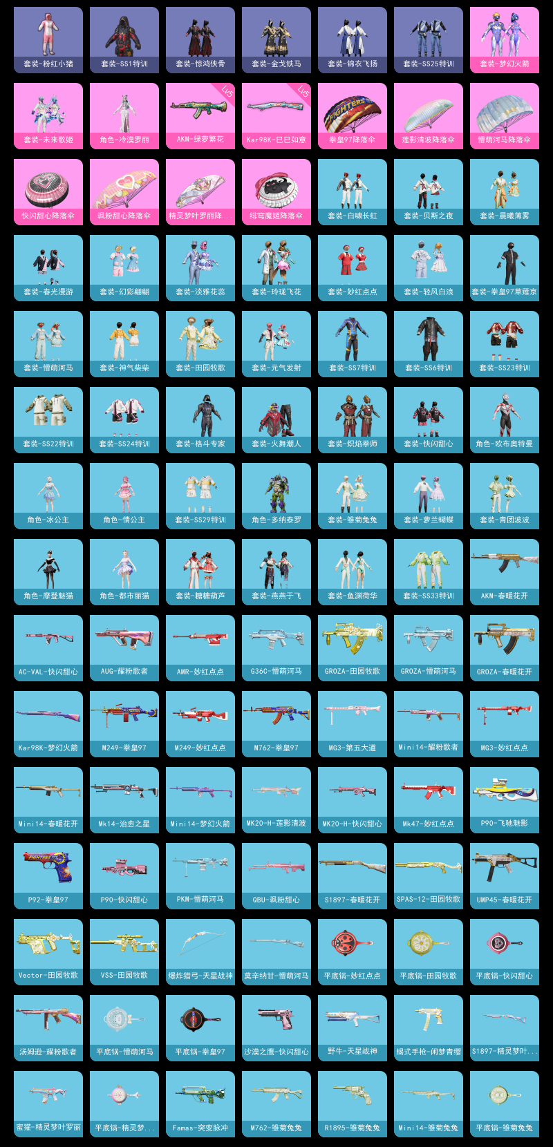 【和平精英】【txhp5567】3粉装,3特效呛,0载具,历史最高段位:卓越王牌12星 王牌印记10次 热力值:40889,101套装,140呛械,154装备,78战备;套装:套装-梦幻火箭,套装-未来歌姬,角色-冷漠罗丽,套装-特训学院,套装-猎鹰,套装-白色伏地魔,套装-登山爱好者,套装-竞技名士,套装-酒红色名流,套装-湖蓝色名流,套装-长空猛禽,套装-竞技勇士朋克,套装-冷焰舞者,套装-灼焰舞者,套装-刚毅裁决者,套装-战地菁英,套装-战地督导,套装-青春校园,套装-灰色格斗者,套装-甜蜜告白,套装-迎春赐吉,套装-幻影武者,套装-海滨突袭者,套装-街头潮人,套装-魅力单车,套装-雪山征服者,套装-坚韧舞者,套装-ss1特训,套装-沙漠兵团,套装-ss2特训,套装-火舞潮人,套装-雪山精英,套装-传奇侦探,套装-缤纷果语,套装-滨海厨神,套装-风暴特警,套装-冰川特警,套装-ss3特训,套装-粉红小猪,套装-破蛋小黄鸡,套装-疯狂小兔子,套装-ss5特训,套装-圣诞大吉,套装-熔岩使者,套装-凛冬战士,套装-北国孤狼,套装-ss6特训,套装-拳皇97草薙京,套装-炽焰拳师,套装-格斗专家,套装-淡雅花蕊,套装-玲珑飞花,套装-跃动心情,套装-ss7特训,套装-鹤鸣,套装-战术大师,角色-欧布奥特曼,套装-ss22特训,套装-田园牧歌,套装-轻风白浪,套装-白啸长虹,套装-光之冒险,套装-绯格组合,套装-ss23特训,套装-神气柴柴,套装-懵萌河马,套装-妙红点点,套装-幻彩翩翩,套装-ss24特训,套装-龟仙人,套装-涂山之恋,套装-ss25特训,套装-金戈铁马,套装-惊鸿侠骨,套装-锦衣飞扬,套装-晨曦薄雾,套装-元气发射,套装-龙的传人,套装-快闪甜心,套装-春光漫游,套装-云魄琉璃,套装-贝斯之夜,角色-多纳泰罗,角色-情公主,角色-冰公主,套装-ss29特训,套装-雏菊兔兔,套装-萝兰蝴蝶,角色-无面战甲,角色-摩登魅猫,角色-都市丽猫,套装-星途旅人,套装-青团波波,套装-糖糖葫芦,套装-ss31特训,套装-鱼渊荷华,套装-燕燕于飞,套装-ss33特训,套装-ss32特训,套装-ss34特训,套装-薄荷星砂;呛皮:aug-耀粉歌者,aug-天降萌叽,aug-乌木金纹,scar-l-生命誓言,scar-l-红色方程式,scar-l-炫彩节奏,scar-l-净心行者,scar-l-乌木金纹,groza-生命誓言,groza-春暖花开,groza-田园牧歌,groza-懵萌河马,groza-无面战甲,5级akm-绿萝繁花,akm-生命誓言,akm-春暖花开,akm-龙的传人,akm-乌木金纹,g36c-懵萌河马,m416-蓝色火焰,m416-糯团青竹,m416-乌木金纹,ac-val-乌木金纹,ac-val-天降萌叽,ac-val-快闪甜心,蜜獾-天降萌叽,蜜獾-精灵梦叶罗丽,蜜獾-糖糖葫芦,蜜獾-乌木金纹,famas-突变脉冲,famas-乌木金纹,m762-拳皇97,m762-天降萌叽,m762-雏菊兔兔,m762-乌木金纹,m16a4-蓝色火焰,m16a4-幻世战舞者,m16a4-千金淑猫,mk47-妙红点点,mk47-极冰使者,q-咆哮狼行,amr-妙红点点,amr-乌木金纹,m200-惊鸿侠骨,m200-乌木金纹,svd-冷漠罗丽,莫辛纳甘-乌木金纹,莫辛纳甘-懵萌河马,m24-冰封烈焰,5级kar98k-巳巳如意,kar98k-梦幻火箭,mini14-生命誓言,mini14-春暖花开,mini14-梦幻火箭,mini14-耀粉歌者,mini14-雏菊兔兔,qbu-飒粉甜心,mk14-治愈之星,sks-心之恋语,sks-乌木金纹,vss-田园牧歌,mk20-h-莲影清波,mk20-h-快闪甜心,mk20-h-糖糖葫芦,mk20-h-乌木金纹,m417-惊鸿侠骨,野牛-天星战神,野牛-雏菊兔兔,野牛-燕燕于飞,uzi-红色方程式,ump45-夜灯,ump45-蓝色火焰,ump45-生命誓言,ump45-春暖花开,ump45-涂山之恋,ump45-糖糖葫芦,vect-生命誓言,vect-田园牧歌,vect-燕燕于飞,vect-乌木金纹,p90-飞驰魅影,p90-倾城蜜语,p90-快闪甜心,p90-乌木金纹,aks-74u-尼罗河传说,aks-74u-鸡智如我,aks-74u-乌木金纹,汤姆逊-耀粉歌者,汤姆逊-幽焰骑士,spas-12-田园牧歌,spas-12-燕燕于飞,spas-12-乌木金纹,s12k-破晓战魂,s12k-玩趣呆呆,dbs-彩虹符号,dbs-幽焰骑士,s1897-春暖花开,s1897-精灵梦叶罗丽,s686-冰封烈焰,m249-拳皇97,m249-彩虹符号,m249-妙红点点,m249-无面战甲,5级dp-28-豹影疾电,dp-28-彩虹符号,pkm-懵萌河马,pkm-啾咪啾咪,mg3-乌木金纹,mg3-妙红点点,mg3-第五大道,mg3-惊鸿侠骨,蝎式手呛-闲梦青缨,蝎式手呛-燕燕于飞,p1911-冰封烈焰,p1911-无面战甲,p18c-糖糖葫芦,沙墨之鹦-快闪甜心,p92-拳皇97,r1895-雏菊兔兔,平底锅-冰封烈焰,平底锅-拳皇97,平底锅-仓鼠灰灰,平底锅-田园牧歌,平底锅-光之冒险,平底锅-妙红点点,平底锅-懵萌河马,平底锅-惊鸿侠骨,平底锅-快闪甜心,平底锅-精灵梦叶罗丽,平底锅-涂鸦旋风,平底锅-雏菊兔兔,平底锅-糖糖葫芦,撬棍-传奇侦探,撬棍-突变脉冲,撬棍-冷漠罗丽,爆炸猎弓-天星战神,爆炸猎弓-惊鸿侠骨,十子怒-燕燕于飞,十子怒-异域银装,盐雾蛋-冰氧夏日;降落伞:粉色滑翔尾迹,公主华盖飞行器,异域银装飞行器; 详情看图10王牌印记 4w热力值 3粉(新101)3特