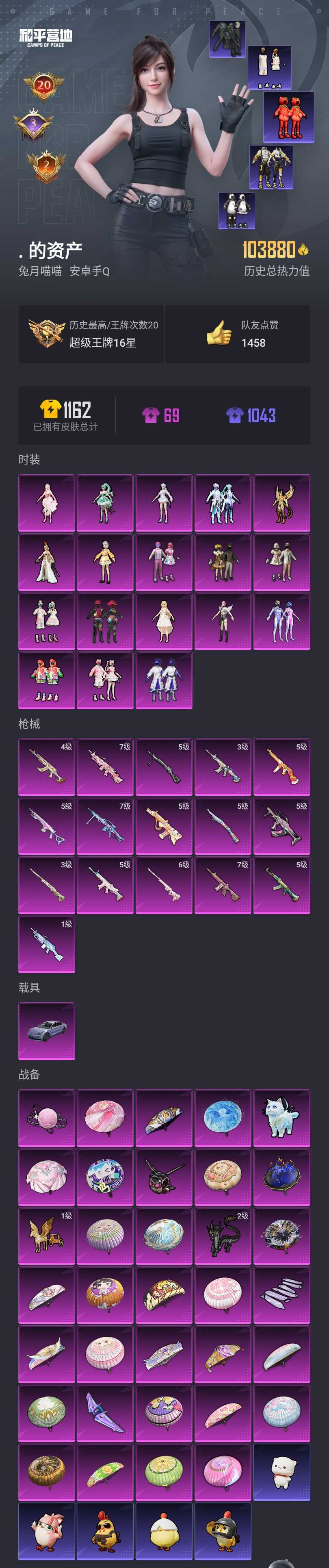 【和平精英】【lyhp19323】高印记 18粉装16特效呛1载具 甜心巧克力 梦幻火箭 放客神游 呆萌星弥 绝对恒星 荧海星豚 红熊番茄 软软马卡龙 小黄鸭 胖达圆圆 都市猎人 浪漫天命 追光服 满级m4心之恋语 满级大菠萝 满级mg36 仰望 18粉装,16特效呛,1载具,历史最高段位:超级王牌16星 王牌印记20次 热力值:103880,242套装,284呛械,406装备,194战备;套装:套装-甜心巧克力,套装-宝贝奶油派,套装-天使彩虹糖,套装-梦幻火箭,套装-放客神游,套装-新星烈龙,套装-彩虹甜喵,角色-呆萌星弥,角色-茉莉星,套装-炫光之旅,角色-小叽联名款,套装-蜜语绒猫,角色-萨利娅,角色-凤凰座 一辉,套装-幻彩电音,角色-荧海星豚,角色-奇迹舞步 贝贝,角色-绝对恒星,套装-特训学院,套装-猎鹰,套装-青年教官,套装-橘黑制服,套装-红色运动,套装-黄色运动,套装-蓝色运动,套装-黄色伏地魔,套装-白色伏地魔,套装-黑色伏地魔,套装-登山爱好者,套装-竞技名士,套装-深蓝色名流,套装-酒红色名流,套装-湖蓝色名流,套装-黄色名流,套装-猛禽,套装-长空猛禽,套装-漫步者,套装-黎明保卫者,套装-海岛探路者,套装-旭日情侣,套装-六六大吉,套装-冷焰舞者,套装-灼焰舞者,套装-都市猎人,套装-浪漫天命,套装-特战装甲,套装-浪漫假日,套装-特殊使命,套装-活力之心,套装-春日漫步,套装-龙腾端午,套装-滨海假日,套装-鹰眼刺客,套装-冰冻风暴,套装-完美偶像,套装-人气偶像,套装-幻影武者,套装-街头潮人,套装-蓝彩潮人,套装-魅力单车,套装-绮丽涂鸦,套装-狂战萌兔,套装-坚韧舞者,套装-竞技达人朋克,套装-狂沙舞者,套装-破晓战魂,套装-都市魅力,套装-热血青春,套装-沙漠兵团,套装-酷潮明星,套装-极地朋克,套装-幻世战舞者,套装-血色贵族,套装-呆萌铁蟹,套装-甜蜜熊情侣,套装-青涩时光,套装-缤纷果语,套装-滨海厨神,套装-龙魂突击队,套装-冰川特警,套装-青涩年华,套装-元素星魂,套装-胖达圆圆,套装-极速红龙,套装-格斗先锋,套装-麻辣教官,套装-破蛋小黄鸡,套装-疯狂小兔子,套装-霓虹街区,套装-潮萌小黄鸭,套装-白熊同盟,套装-萌黄之夏,套装-夏日音浪,套装-探宝勇士,套装-本愿之火,套装-牛气满满,套装-白糯汤圆,套装-战术大师,套装-牛气冲天,套装-ss18特训,套装-耀粉歌者,套装-飞行日记,套装-热情海星,套装-纯真浪花,套装-ss17特训,套装-冰川谧蓝,套装-炫光向阳,套装-缤纷焰火,套装-异彩先驱,套装-霓虹极客,套装-空投萌叽,套装-vs追光队服,套装-ss19特训,套装-极速竞梦,套装-飞驰魅影,套装-音速流光,套装-炫蓝之夏,套装-ss20特训,套装-粉团憨憨,套装-猎梦纪元,套装-甜心亚梦,套装-虚音幻奏,套装-ss21特训,套装-萌趣咩咩,套装-娇憨猪猪,套装-红熊茄茄,套装-俏皮奶喵,套装-暖心橘喵,套装-玉兔迎春,套装-ss22特训,套装-和煦暖阳,套装-田园牧歌,套装-轻风白浪,套装-熠彩粉晶,套装-萌酷罗小黑,套装-光之冒险,套装-绯格组合,套装-ss23特训,套装-莱茵河畔,套装-龙舌兰冰茶,套装-甜梦熊熊,套装-神气柴柴,套装-懵萌河马,套装-王牌教练,套装-柠萌假日,套装-青玉碎影,套装-ss24特训,套装-绚紫流光,套装-华灯初上,套装-霓虹闪烁,套装-软软马卡龙,套装-龟仙人,套装-涂山之恋,套装-ss25特训,套装-惊鸿侠骨,套装-锦衣飞扬,套装-云霞荷露,套装-元气发射,套装-香桃花海,套装-龙的传人,套装-冰河战士,套装-ss26特训,套装-快闪甜心,套装-春光漫游,套装-空岛之星,套装-无暇誓言,角色-星际旅行,角色-舰行太空,套装-傲娇队长,套装-贝斯之夜,套装-焰鹰斗篷,套装-幽夜迷踪,套装-幻羽潜行,套装-ss27特训,套装-恋语绒绒,套装-老实芭蕉,套装-ss28特训,套装-奶油梦幻熊,角色-白光莹,角色-情公主,角色-冰公主,角色-银尘,角色-mark.06,套装-街头风暴,套装-海盐绵绵冰,套装-蝶变,套装-粉日山川,套装-小熊娃娃,套装-ss29特训,套装-雏菊兔兔,套装-萝兰蝴蝶,角色-绯色魅影,角色-无面战甲,套装-异域银装,角色-都市丽猫,套装-星途旅人,套装-ss30特训,套装-青团波波,套装-棉花软糖,套装-糖糖葫芦,套装-ss31特训,套装-鱼渊荷华,套装-石蕴玉辉,套装-燕燕于飞,套装-智谋强哥,角色-风玲,角色-海琴烟,套装-荒漠狂战,套装-紫幽梦,套装-粉恋花,套装-ss33特训,套装-云朵鹅,套装-巳巳如意,套装-ss32特训,套装-彩虹兔,套装-蓝冰羽,套装-顶瓜瓜,套装-雪绒豹,套装-大橘大利,套装-极速光影,角色-时希公主,角色-灵公主,套装-霓虹热舞,套装-星影赞美诗,角色-乐音,玩偶服-懒羊羊,套装-元气之梦,套装-ss34特训,套装-擎苍青焰,套装-朱霞炽焰,套装-游乐,套装-凌霄紫焰,套装-薄荷星砂,套装-ss35特训,套装-琴音绮想,角色-超感刻度,套装-画境星梦,套装-书海巡游,角色-甜心蒙太奇,套装-ss36特训,套装-雪国风尚,套装-萌鸡速递;呛皮:蜜獾-娇憨猪猪,蜜獾-垂柳戏鸭,蜜獾-天降萌叽,蜜獾-精灵梦叶罗丽,蜜獾-糖糖葫芦,蜜獾-绯穹魔姬,蜜獾-乌木金纹,mk47-林间仙鹿,mk47-天之羽翼,mk47-洛神天依,mk47-乌木金纹,mk47-幻海仙踪,g36c-花间之火,g36c-懵萌河马,g36c-镜域双华,g36c-乌木金纹,5级scar-l-锦绣绵绵,scar-l-红色方程式,scar-l-夜灯,scar-l-炫彩节奏,scar-l-玉兔迎春,scar-l-星途旅人,scar-l-海盐豹豹,scar-l-冷漠罗丽,ac-val-甜心亚梦,ac-val-乌木金纹,ac-val-彩虹甜喵,ac-val-天降萌叽,ac-val-快闪甜心,4级m762-鬼刀,m762-甜心宝贝,m762-彩虹符号,m762-彩虹甜喵,m762-第五大道,m762-天降萌叽,m762-雏菊兔兔,m762-云朵鹅,famas-镜域双华,famas-霓彩脉冲,fam