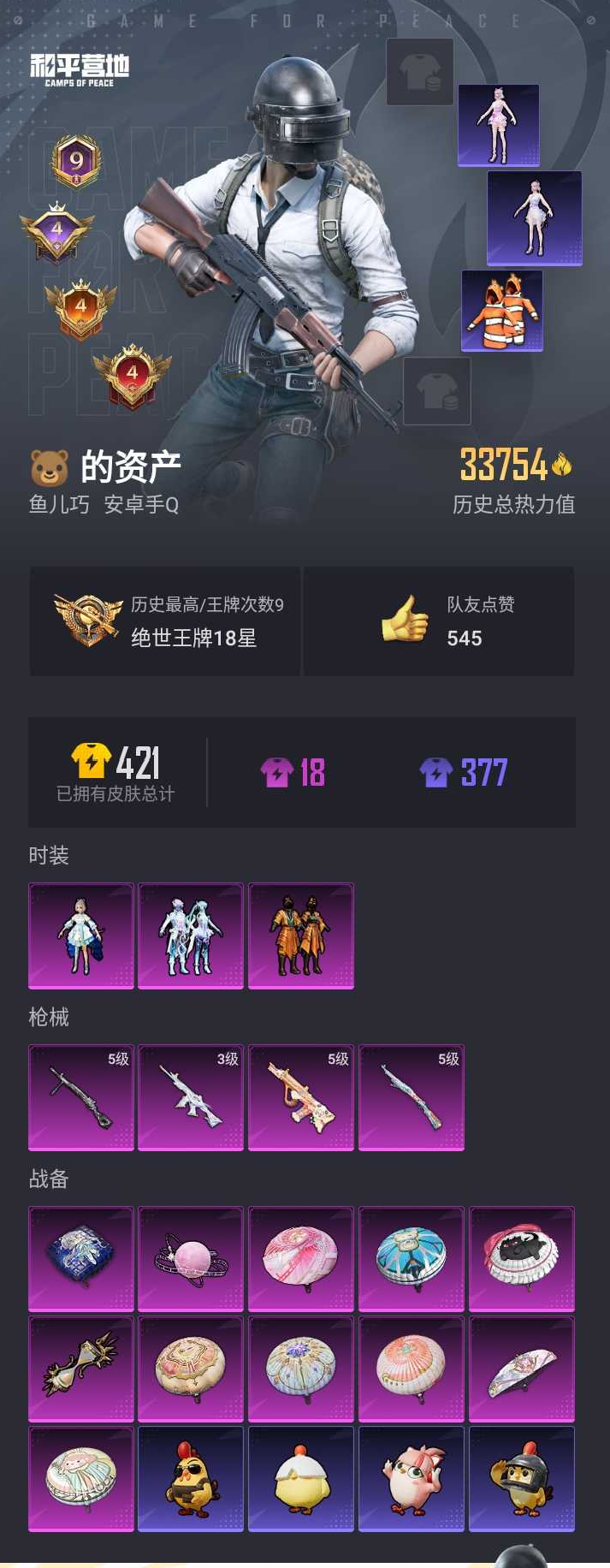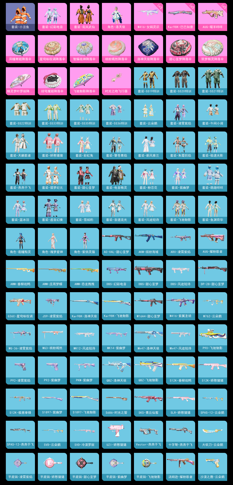 【和平精英】【lyhp19391】高印记 3粉装4特效呛 洛天依 幻彩电音 3级m4女娲灵识 满级aug 3粉装,4特效呛,0载具,历史最高段位:绝世王牌18星 王牌印记9次 热力值:33754,67套装,124呛械,144装备,68战备;套装:角色-洛天依,套装-鸾凤武仙,套装-幻彩电音,套装-竞技名士,套装-深蓝色名流,套装-长空猛禽,套装-特殊使命,套装-幻世战舞者,套装-青涩时光,套装-缤纷果语,套装-滨海厨神,套装-麻辣教官,套装-小丑鱼,套装-破蛋小黄鸡,套装-鹤鸣,套装-探宝勇士,套装-牛气满满,套装-战术大师,套装-天籁歌者,套装-电音精灵,套装-ss19特训,套装-飞驰魅影,套装-音速流光,套装-炫蓝之夏,套装-ss20特训,套装-猎梦纪元,套装-甜心亚梦,套装-虚音幻奏,套装-ss21特训,套装-萌趣咩咩,套装-娇憨猪猪,套装-玉兔迎春,套装-ss22特训,套装-王牌教练,套装-恋语绒绒,套装-新风雅兰,角色-紫俏灵猫,套装-异域银装,角色-夜瞳黯灵,套装-ss31特训,套装-鱼渊荷华,套装-燕燕于飞,角色-瑰梦爱神,套装-紫幽梦,套装-粉恋花,套装-ss33特训,套装-云朵鹅,套装-ss32特训,套装-彩虹兔,套装-蓝冰羽,套装-顶瓜瓜,套装-雪绒豹,套装-大橘大利,套装-极速光影,套装-元气之梦,套装-ss34特训,套装-擎苍青焰,套装-朱霞炽焰,套装-凌霄紫焰,套装-ss35特训,套装-午间小调,套装-风迹短诗,角色-超感刻度,角色-甜心蒙太奇,套装-ss36特训,套装-雪国风尚,套装-萌鸡速递;呛皮:m762-彩虹符号,m762-云朵鹅,m762-登顶巅峰,m16a4-甜心亚梦,m16a4-幻世战舞者,ac-val-甜心亚梦,akm-缤纷海域,akm-破晓战魂,akm-涂鸦街区,akm-彩虹符号,akm-霓彩脉冲,mk47-洛神天依,mk47-乌木金纹,mk47-风迹短诗,5级aug-暖羊咩咩,aug-耀粉歌者,aug-异域银装,aug-绝对恒星,3级m416-女娲灵识,m416-红色方程式,m416-紫翼圣骑,scar-l-红色方程式,scar-l-炫彩节奏,scar-l-玉兔迎春,famas-霓彩脉冲,famas-乌木金纹,q-彩虹符号,q-洛神天依,q-飞驰魅影,g36c-星穹咏叹调,蜜獾-娇憨猪猪,蜜獾-天降萌叽,蜜獾-风迹短诗,蜜獾-乌木金纹,groza-彩虹符号,arx-凌霄紫焰,m24-炫彩节奏,m24-天降萌叽,m24-乌木金纹,5级kar98k-巳巳如意,kar98k-炫彩节奏,kar98k-洛神天依,kar98k-飞驰魅影,svd-冷漠罗丽,svd-云朵鹅,awm-庄周梦蝶,awm-恐龙拽拽,awm-垂柳戏鸭,莫辛纳甘-风迹短诗,win94-乌木金纹,m200-乌木金纹,mk20-h-狂鲨锋刃,mk14-乌木金纹,mk14-紫幽梦,mk14-薄荷星砂,slr-娇憨猪猪,mk12-风迹短诗,mk12-乌木金纹,sks-青丘仙客,m417-玩趣呆呆,p90-飞驰魅影,p90-玩趣呆呆,ump45-夜灯,ump45-蓝色火焰,ump45-生命誓言,ump45-海盐豹豹,vect-生命誓言,vect-燕燕于飞,aks-74u-乌木金纹,uzi-娇憨猪猪,uzi-天降萌叽,uzi-啾咪啾咪,js9-凌霄紫焰,汤姆逊-耀粉歌者,野牛-燕燕于飞,spas-12-燕燕于飞,spas-12-狂鲨锋刃,spas-12-云朵鹅,spas-12-乌木金纹,s1897-炫彩节奏,s1897-飞驰魅影,s1897-紫幽梦,dbs-甜心亚梦,dbs-幻彩电音,dbs-风迹短诗,s12k-娇憨猪猪,s12k-垂柳戏鸭,s12k-幻世战舞者,s12k-极意拳锋,s12k-霓彩脉冲,s686-生命誓言,s686-时光之誓,mg3-幻世战舞者,mg3-乌木金纹,mg3-桃粉嫣然,mg3-霓彩脉冲,5级dp-28-豹影疾电,dp-28-彩虹符号,dp-28-甜心亚梦,m249-破晓战魂,m249-糯团青竹,m249-羲和光序,pkm-啾咪啾咪,pkm-紫幽梦,mg-36-凌霄紫焰,沙墨之鹦-云朵鹅,p92-紫幽梦,p92-凌霄紫焰,蝎式手呛-燕燕于飞,大砍刀-云朵鹅,平底锅-飞驰魅影,平底锅-甜心亚梦,平底锅-娇憨猪猪,平底锅-紫幽梦,平底锅-属我最6,平底锅-凌霄紫焰,撬棍-幻世战舞者,盐雾蛋-冰氧夏日,破片手留单-海盐豹豹,破片手留单-拽到爆炸,破片手留单-爆破雪人,突击盾牌-绝对恒星,十子怒-燕燕于飞,十子怒-异域银装;降落伞:时光之吻飞行器,绝对恒星飞行器,异域银装飞行器,破刃行动尾迹,鸡智如我飞行器,登顶巅峰飞行器; 详情看图